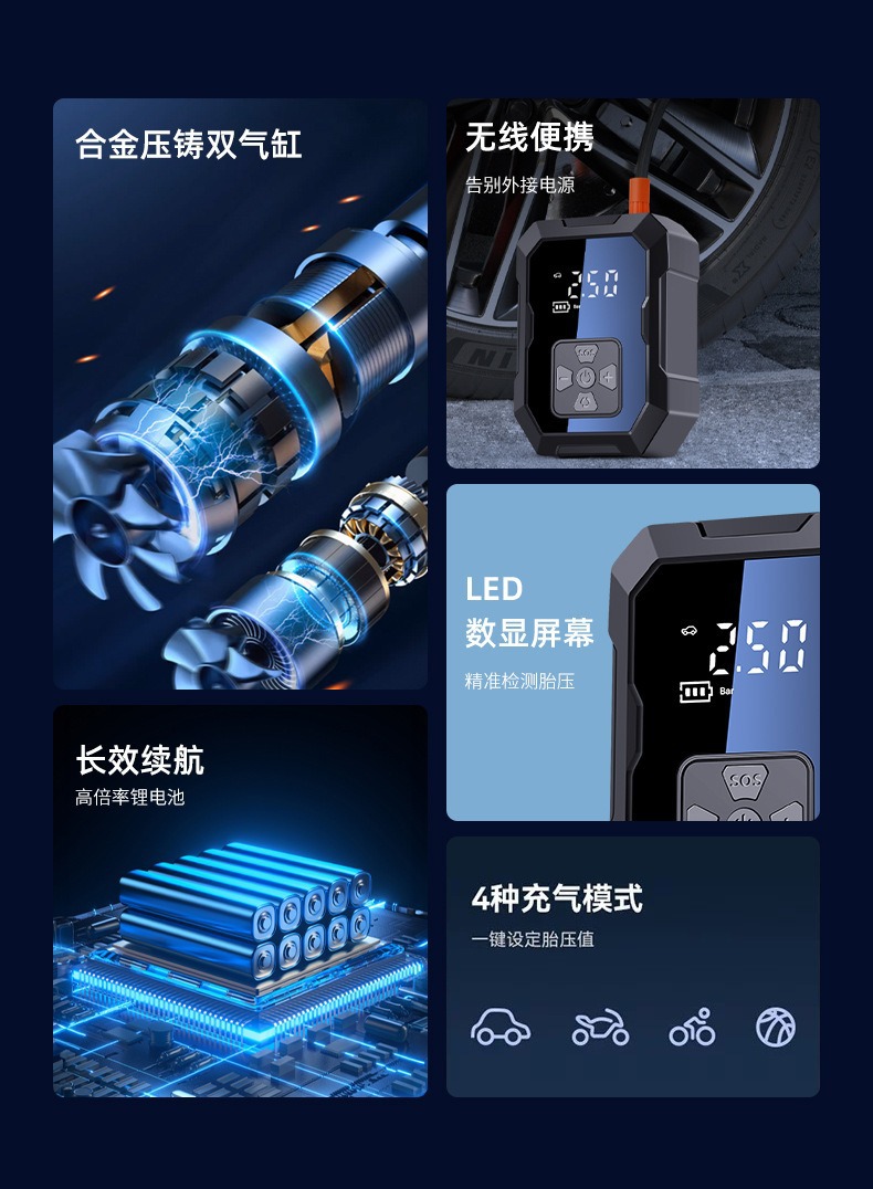 자동차 팽창기 휴대용 자동차 무선 팽창기 다기능 비상 휴대 전화 충전 보물 타이어 팽창기 펌프