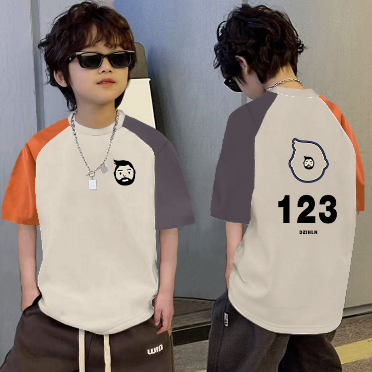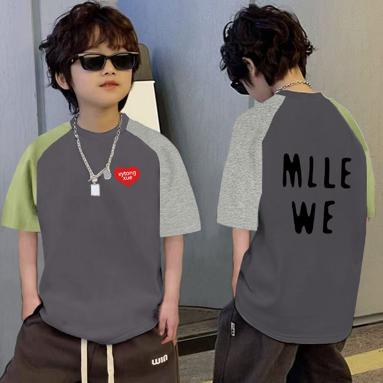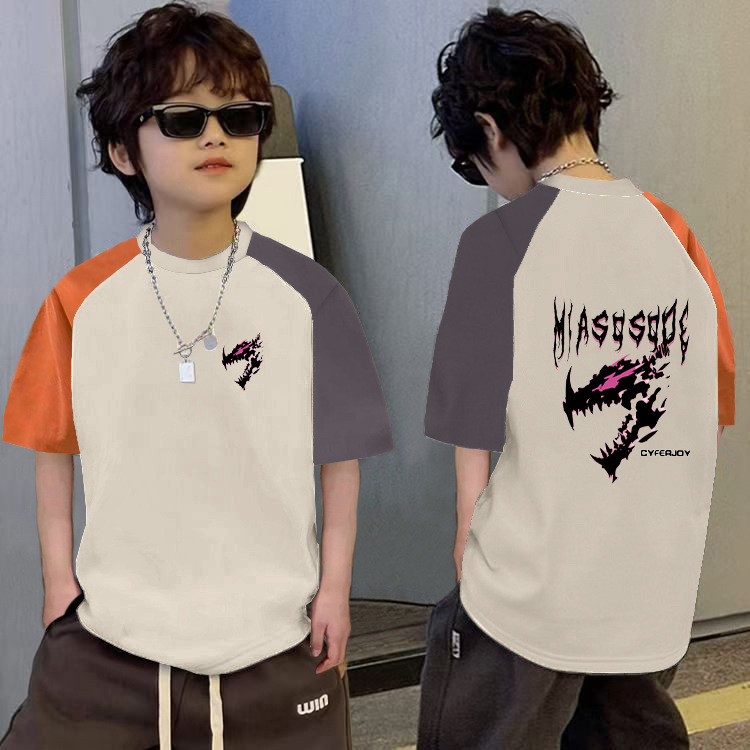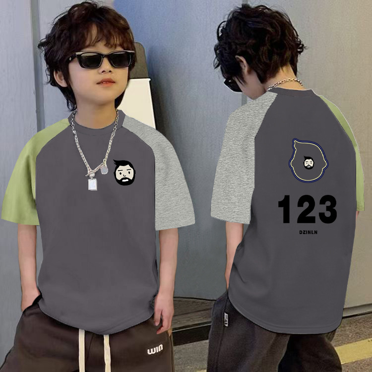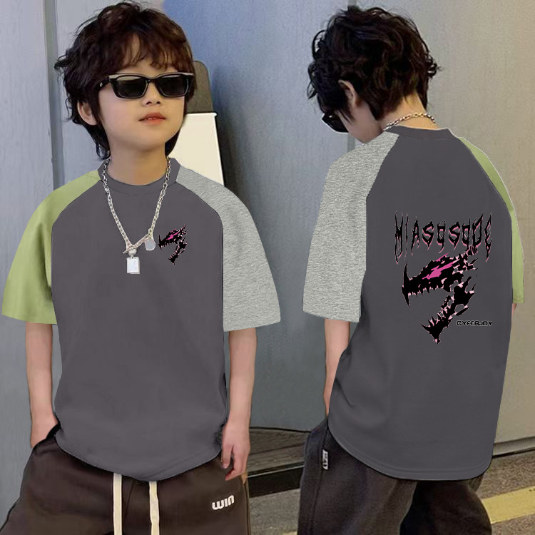 남학생의 느슨한 바느질 반팔 티셔츠 여름 중대형 아동복 6-12 세 잘 생긴 소년 대조적 만화베이스 셔츠
