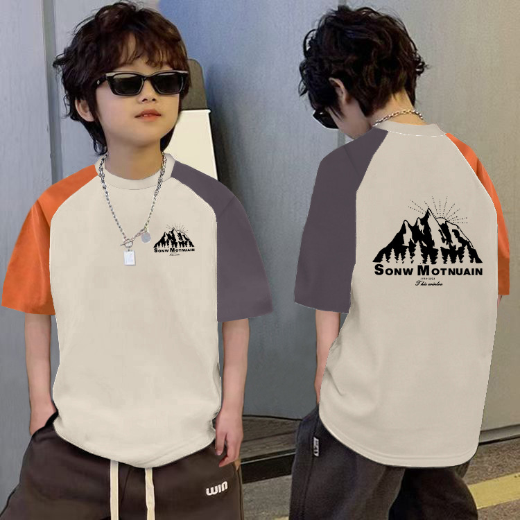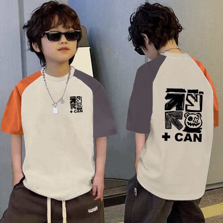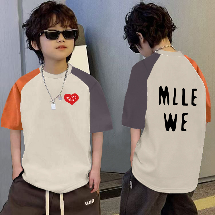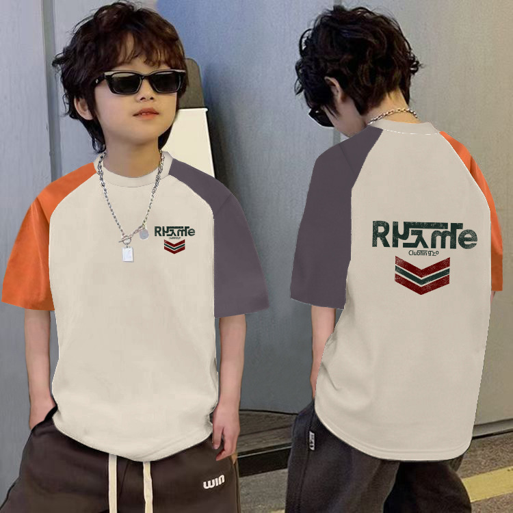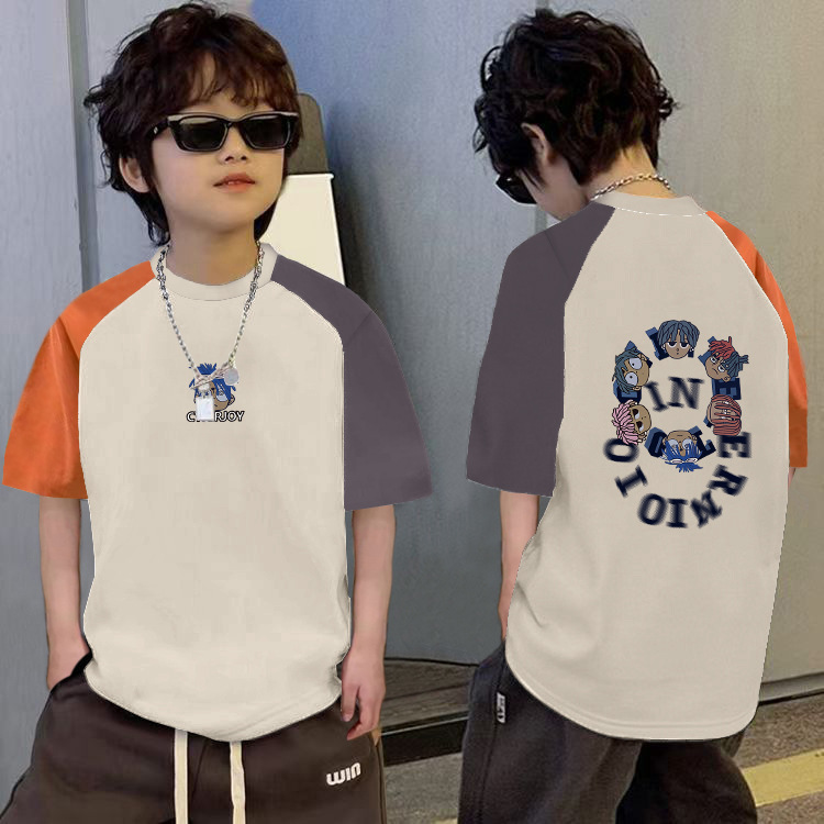 남학생의 느슨한 바느질 반팔 티셔츠 여름 중대형 아동복 6-12 세 잘 생긴 소년 대조적 만화베이스 셔츠스토어 가기