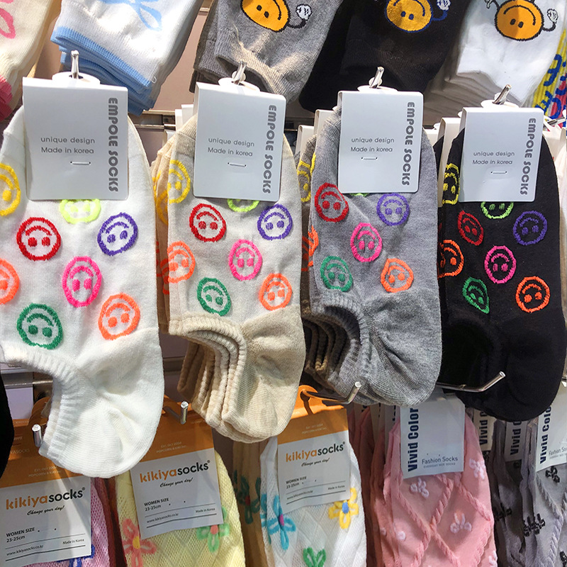 [재고] 동대문 보트 양말 여성 도파민 구호 웃는 보이지 않는 양말 한국 봄과 여름 새로운 미끄럼 방지 면화 양말스토어 가기