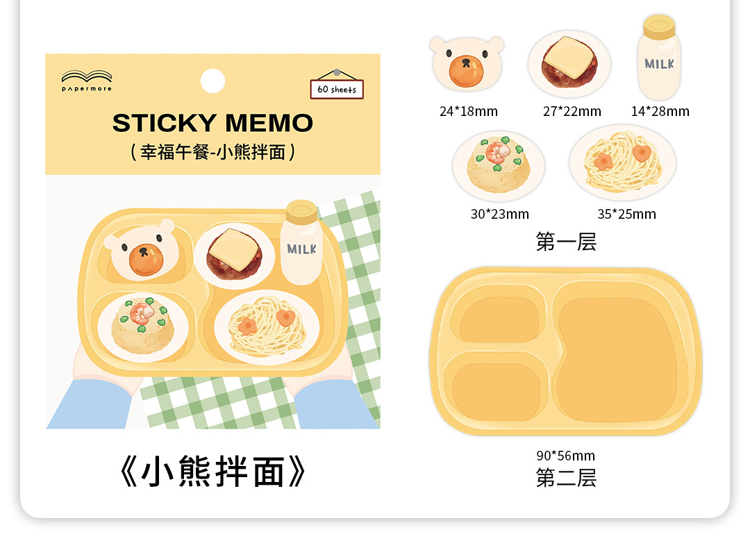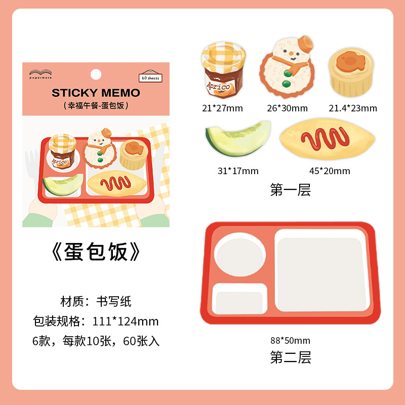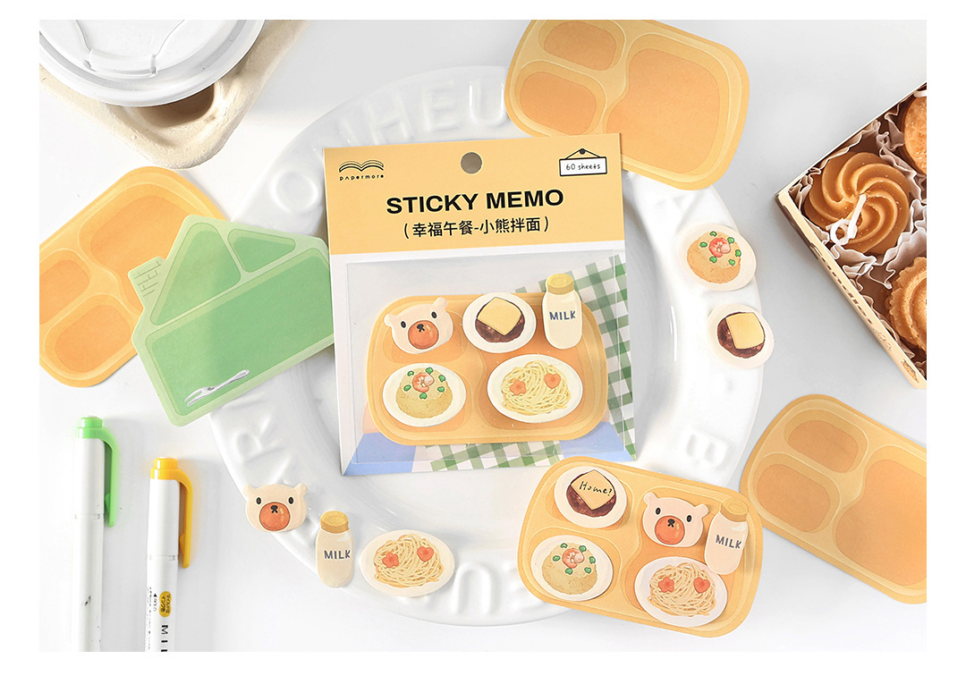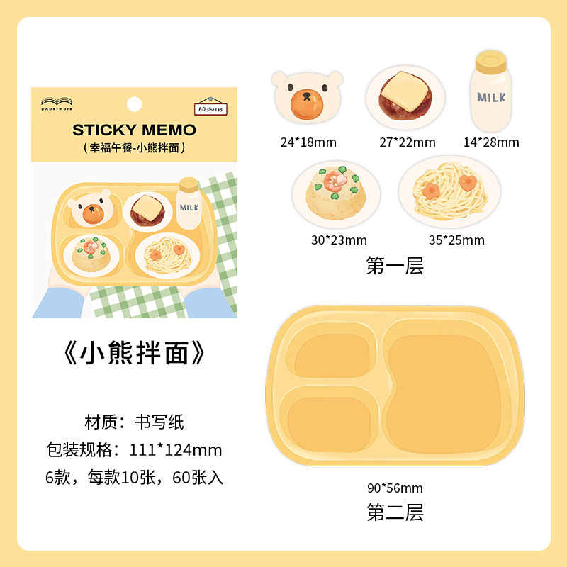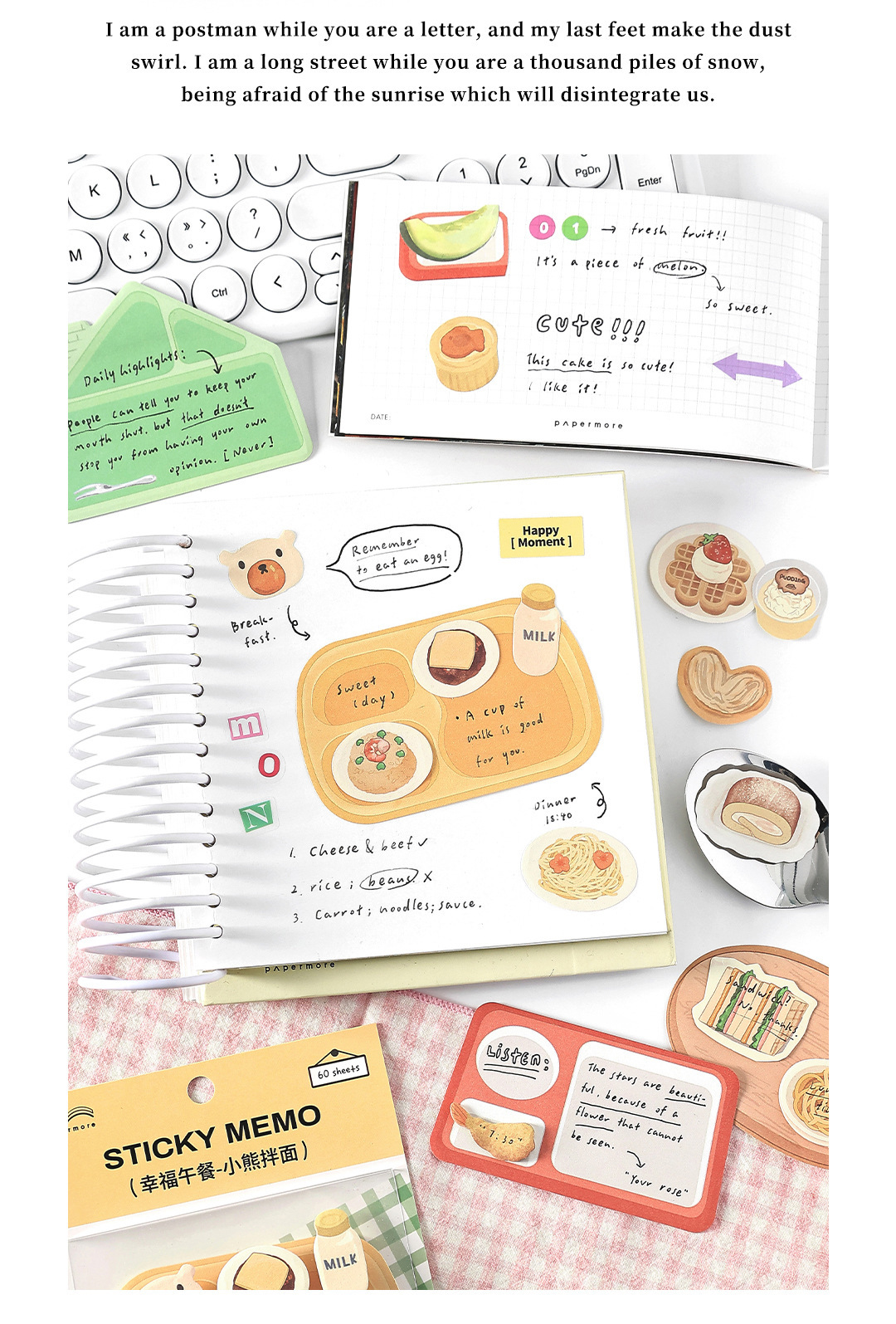 PaperMore 특별한 모양의 스티커 메모 행복한 점심 시리즈 음식 테마 핸드북 기본 냉장고 메시지 메모