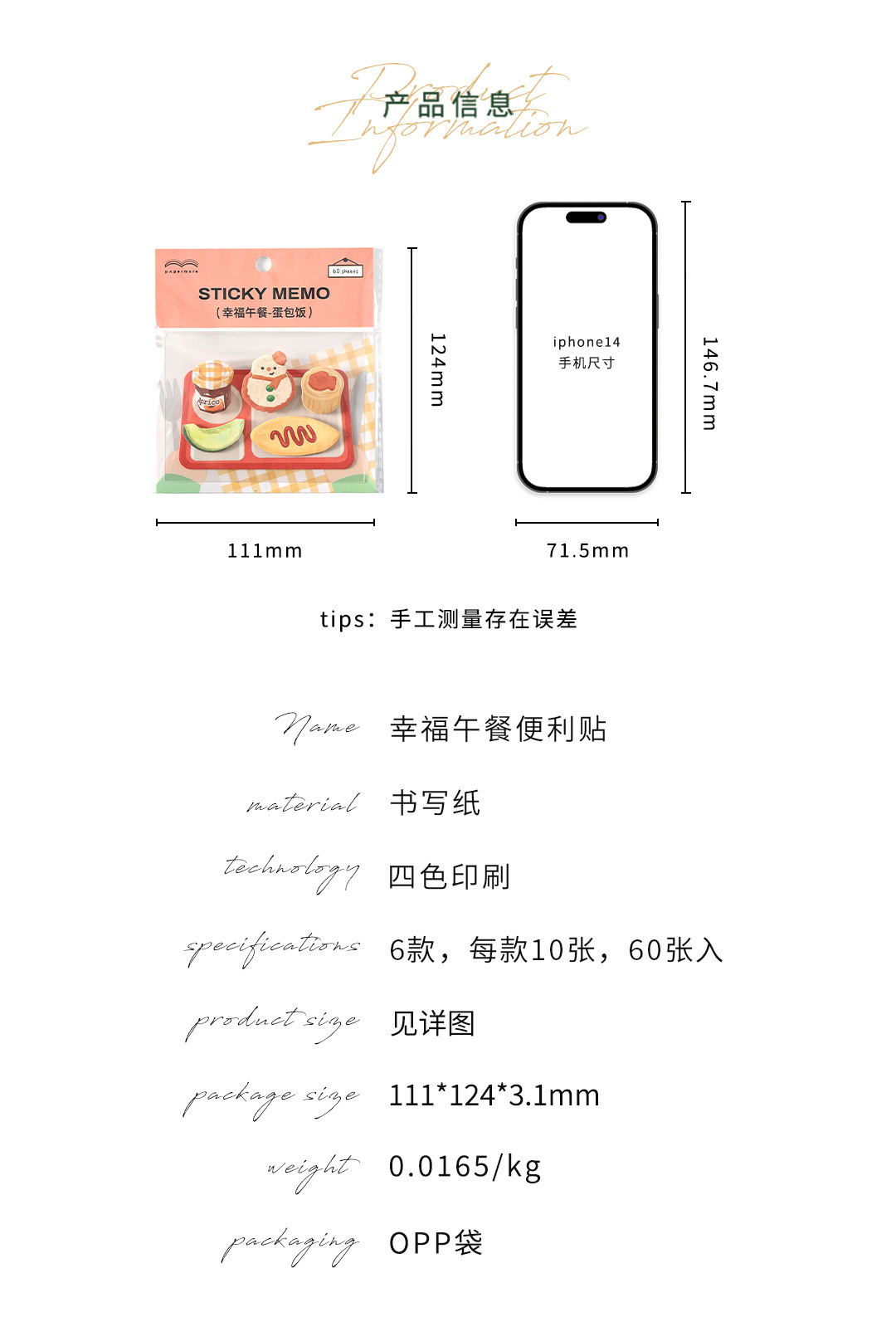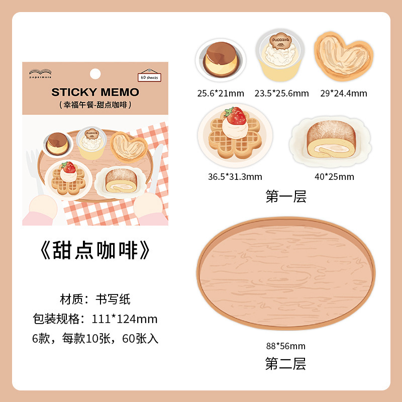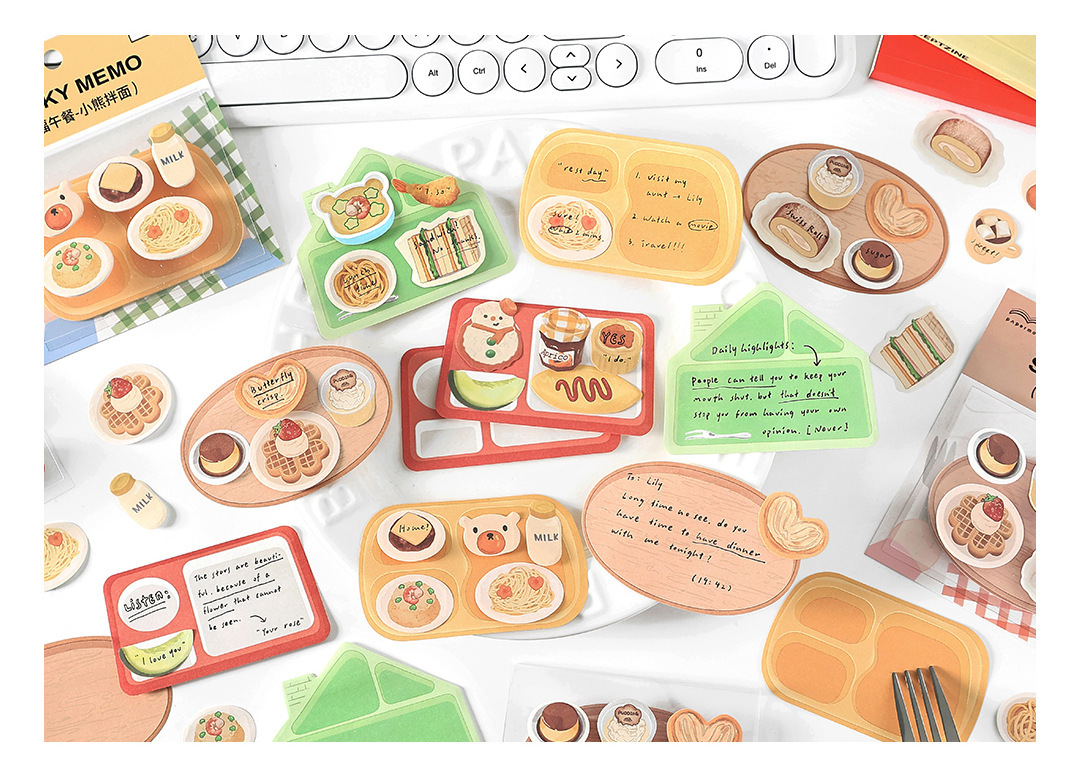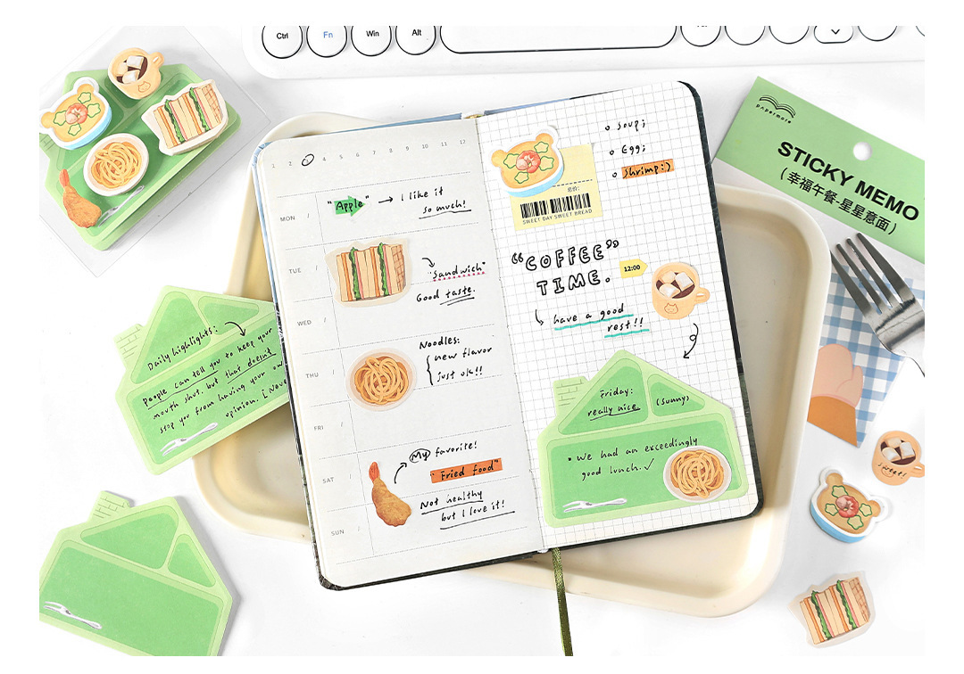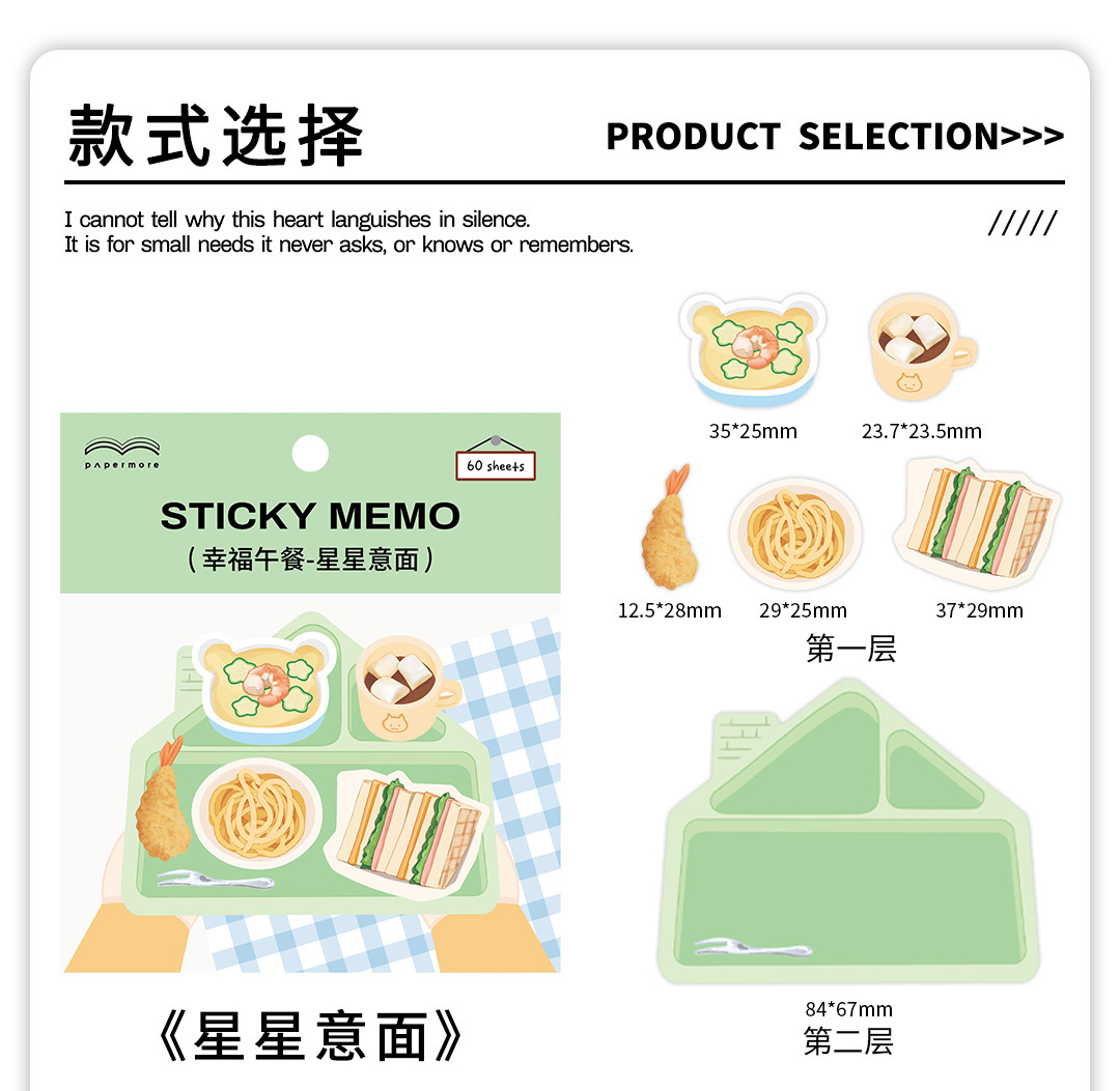 PaperMore 특별한 모양의 스티커 메모 행복한 점심 시리즈 음식 테마 핸드북 기본 냉장고 메시지 메모