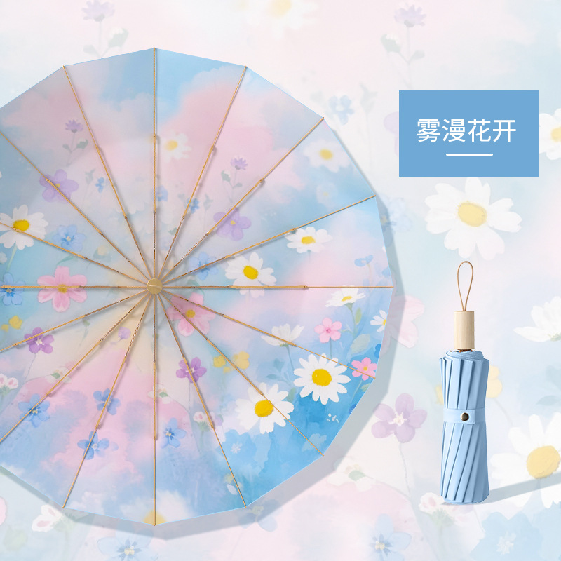 16본 70% off 파라솔 컬러풀한 자외선 차단 우산 자외선 차단 수동 비 또는 빛 우산 로고