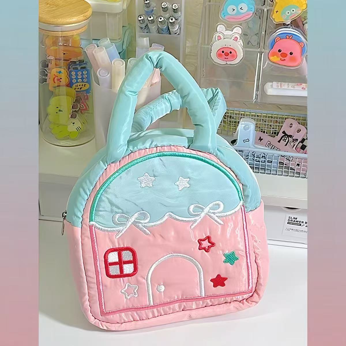 새로운 마시멜로 작은 집 작은 가방 귀여운 바느질 핸드백 대용량 화장품 가방 여행 세탁 가방스토어 가기