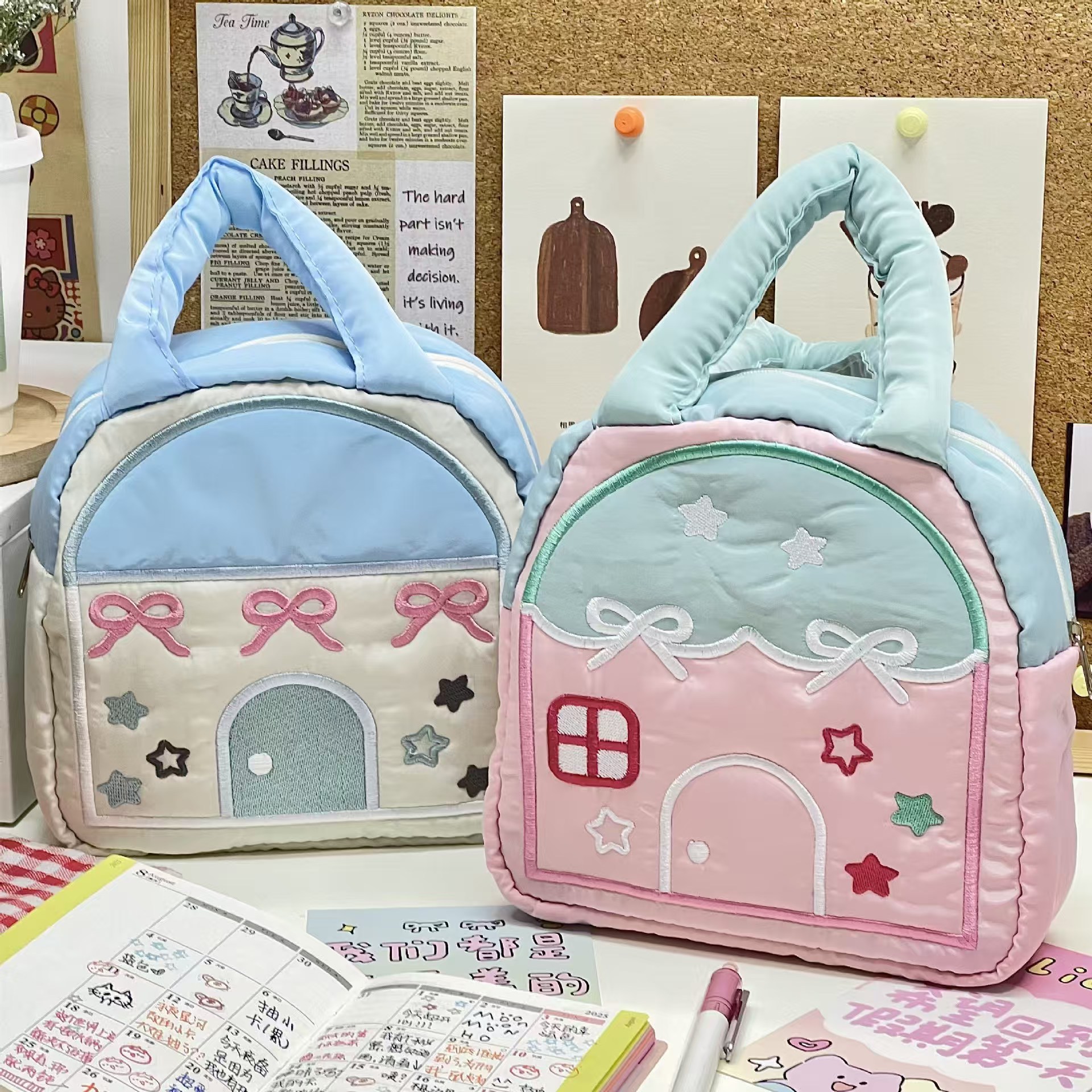 새로운 마시멜로 작은 집 작은 가방 귀여운 바느질 핸드백 대용량 화장품 가방 여행 세탁 가방