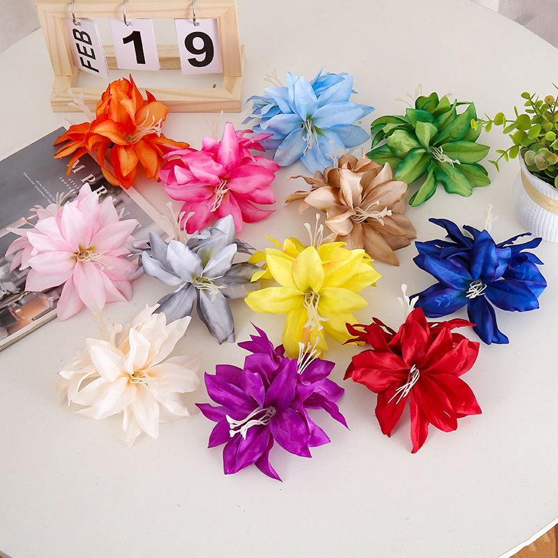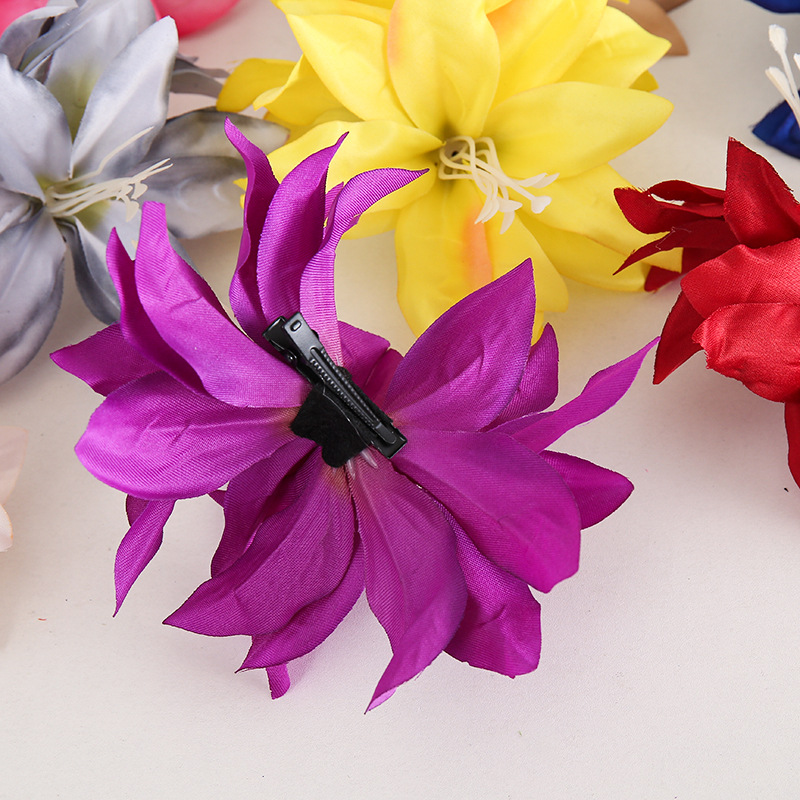 국경 봄과 여름 새로운 더블 릴리 플라워 엣지 클립 인공 꽃 헤어 클립 사진 휴가 패브릭 헤드웨어 여성스토어 가기