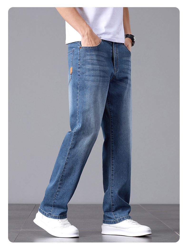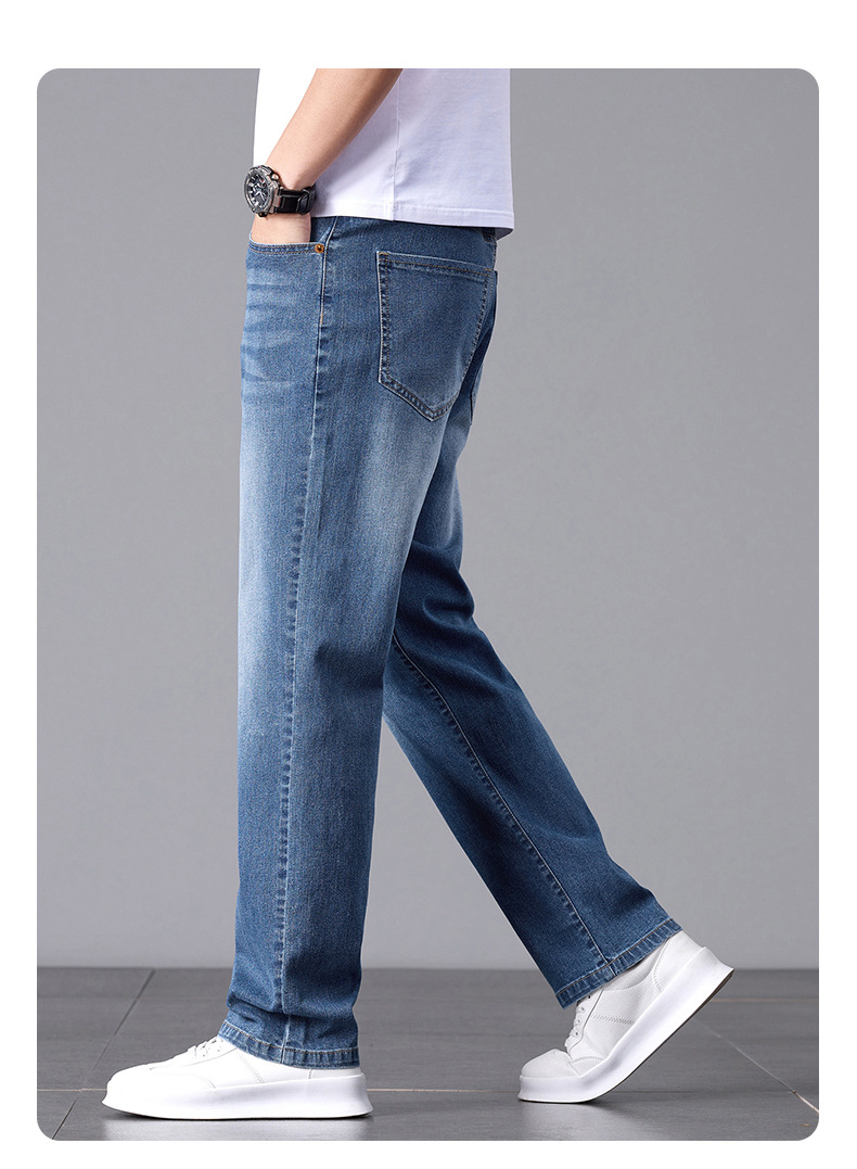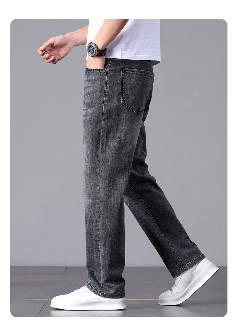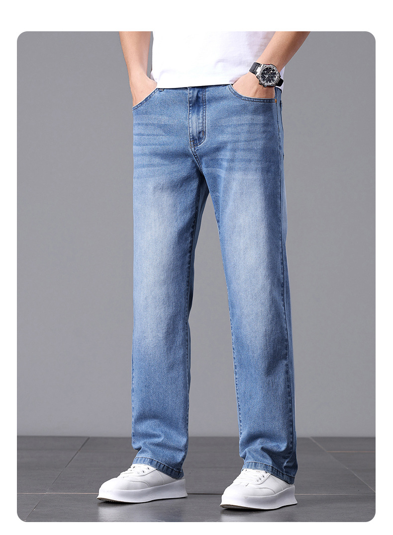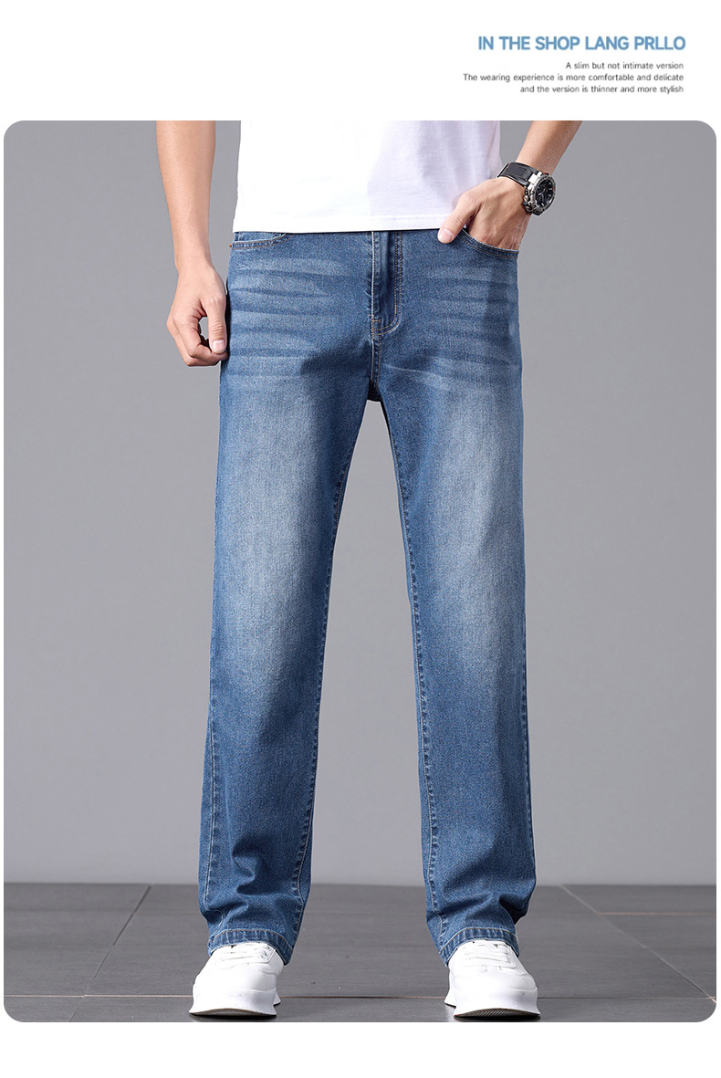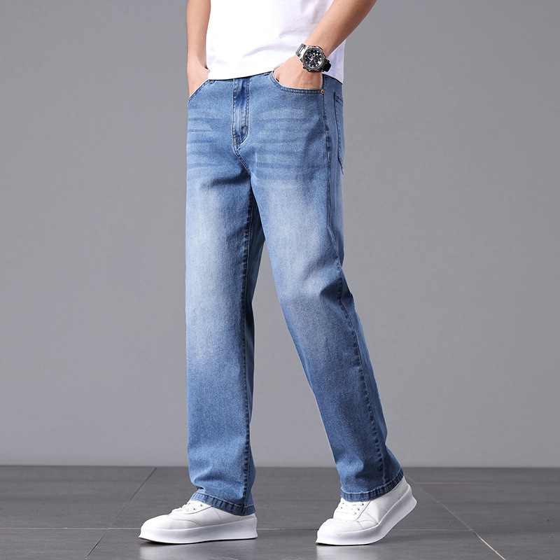 여름 얇은 청바지 남성 느슨한 하이 엔드 비즈니스 청소년 스트레이트 탄성 패션 트렌드 캐주얼 바지 남성 의류스토어 가기