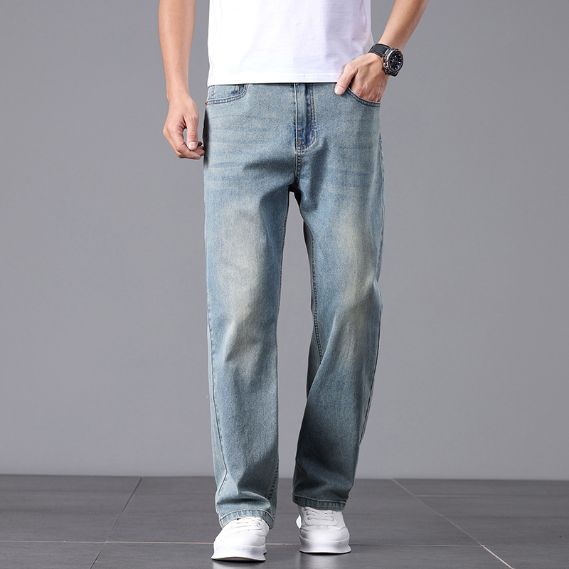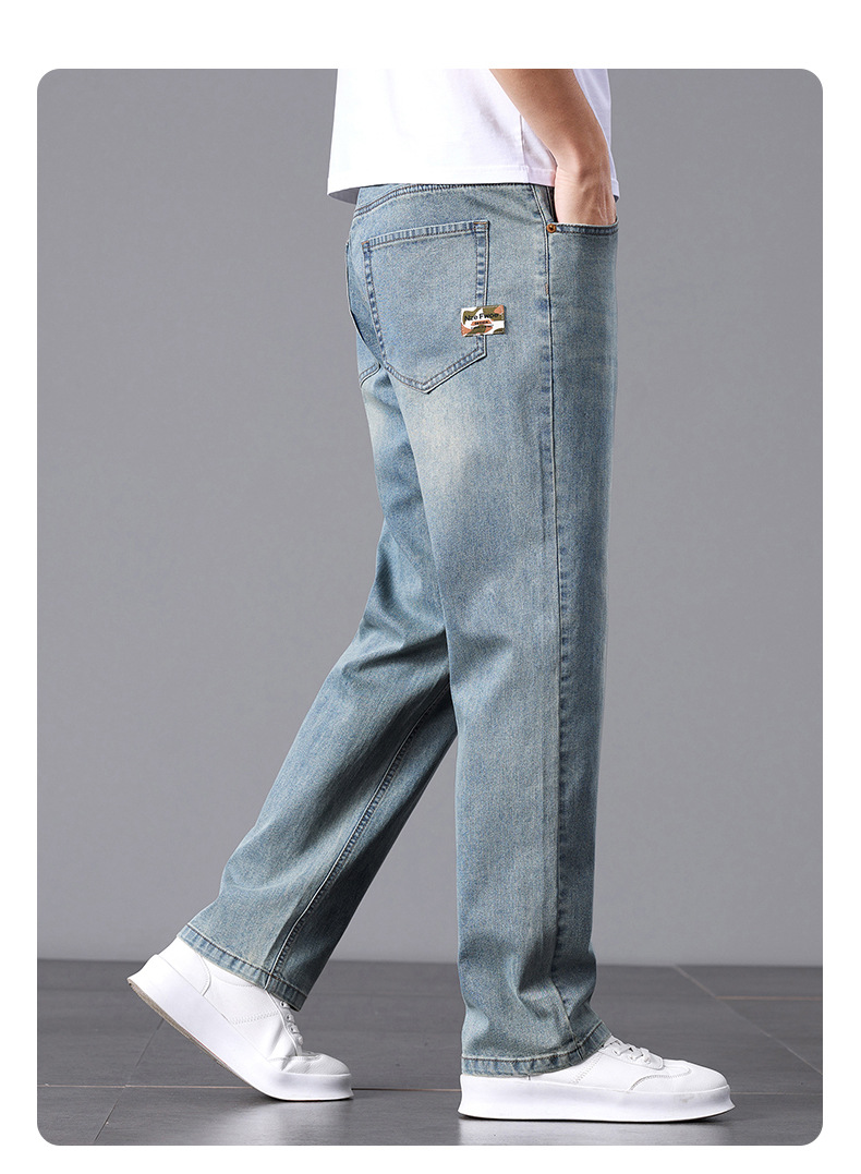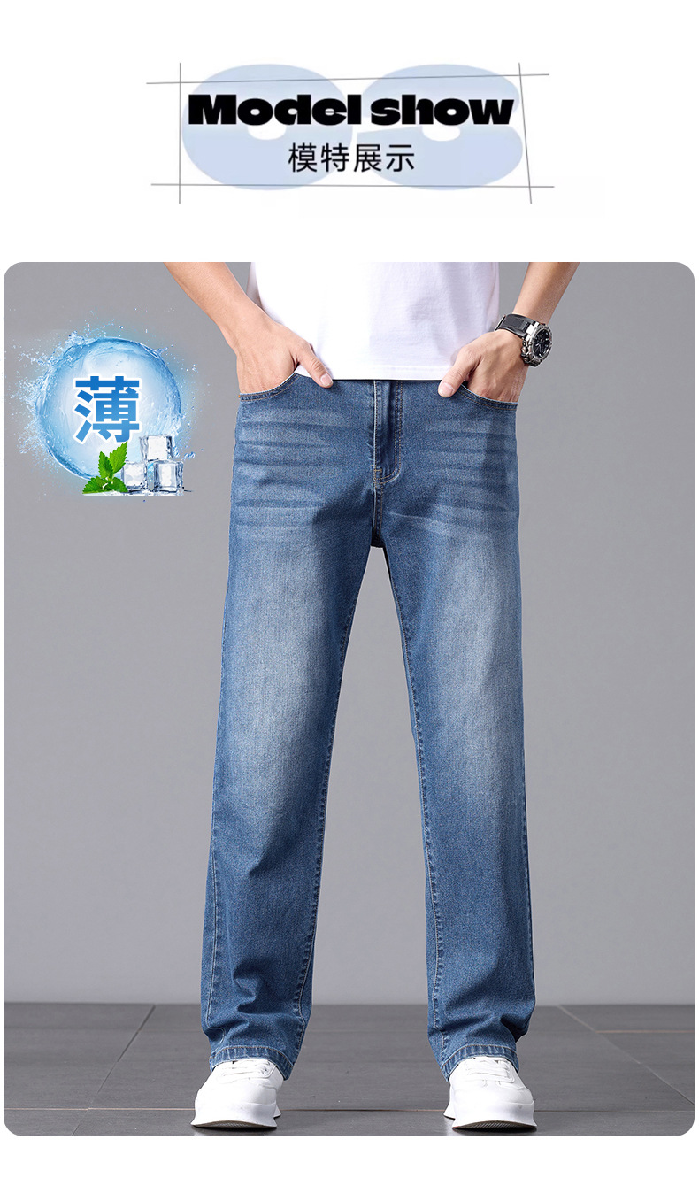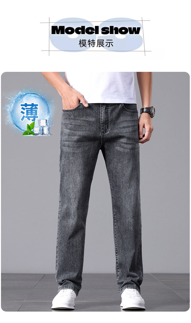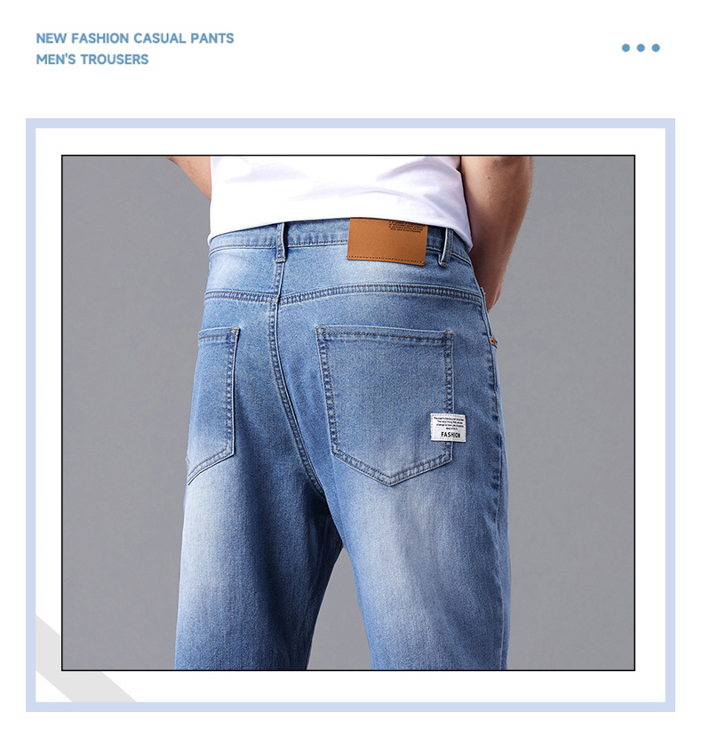 여름 얇은 청바지 남성 느슨한 하이 엔드 비즈니스 청소년 스트레이트 탄성 패션 트렌드 캐주얼 바지 남성 의류스토어 가기