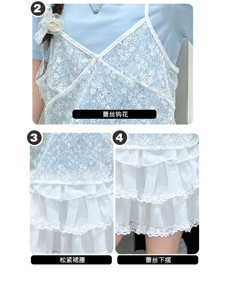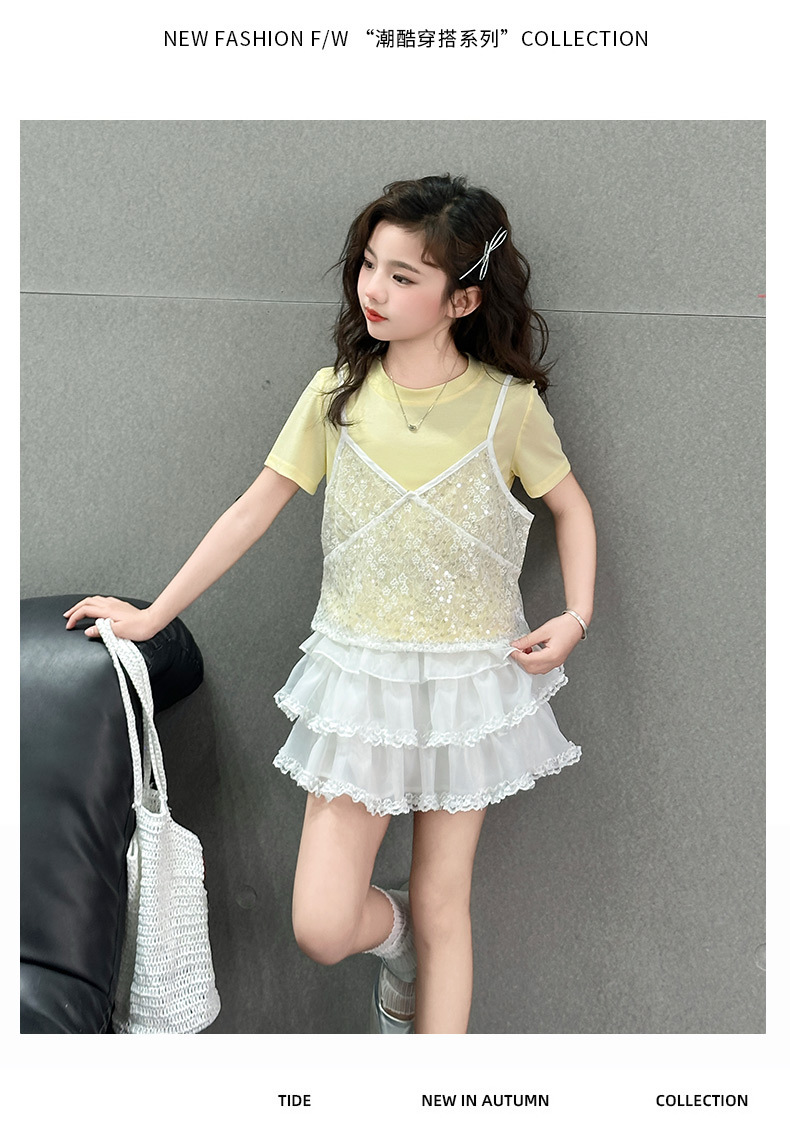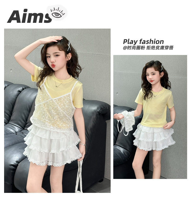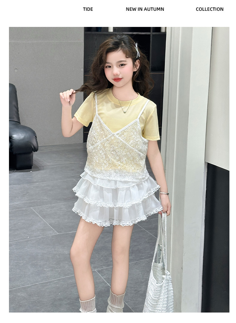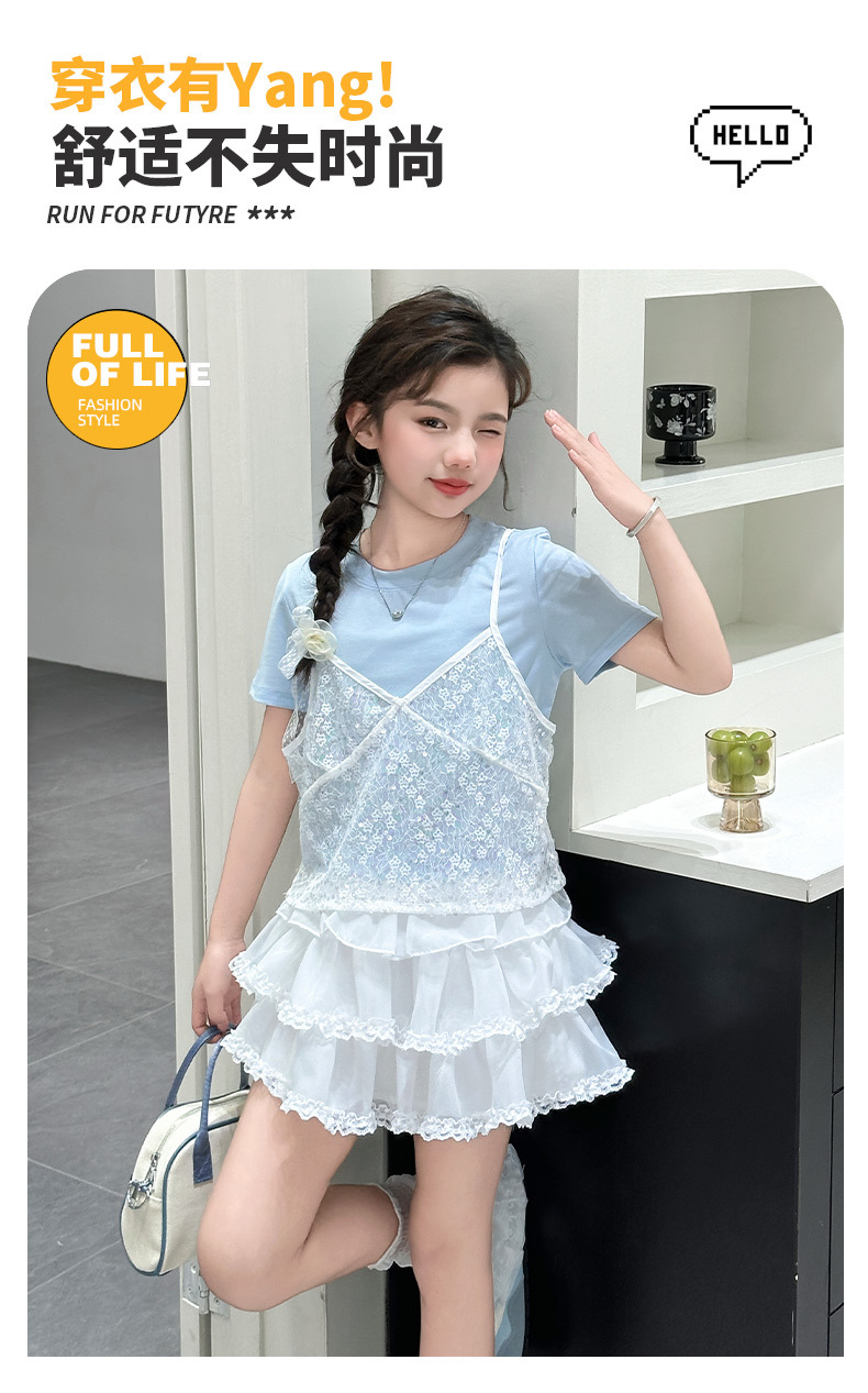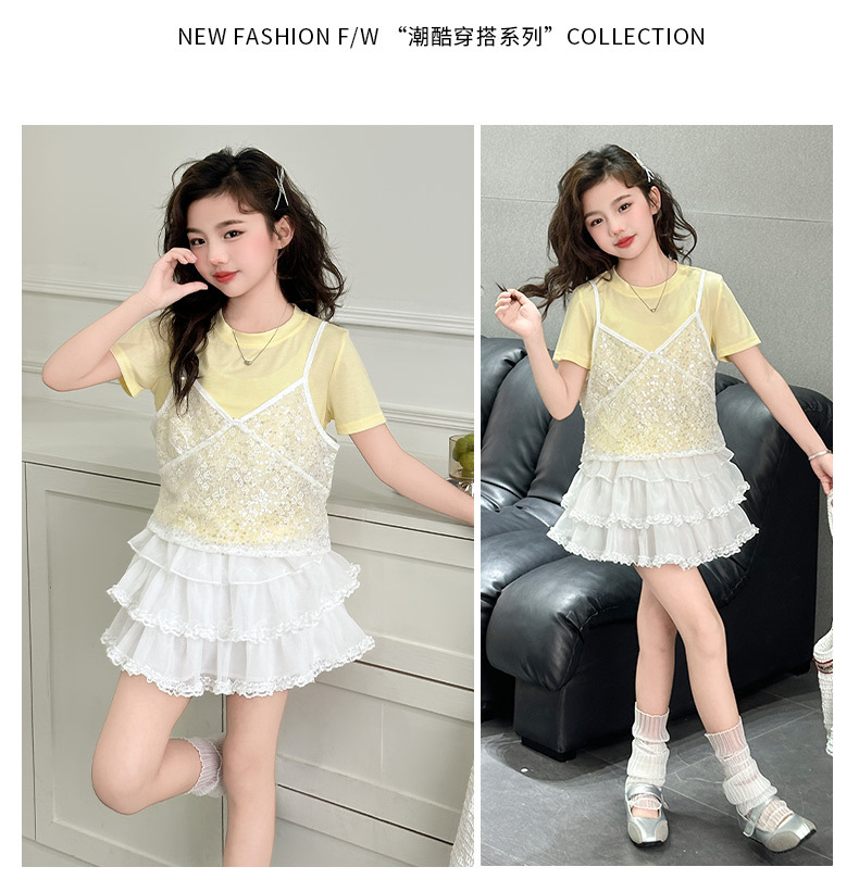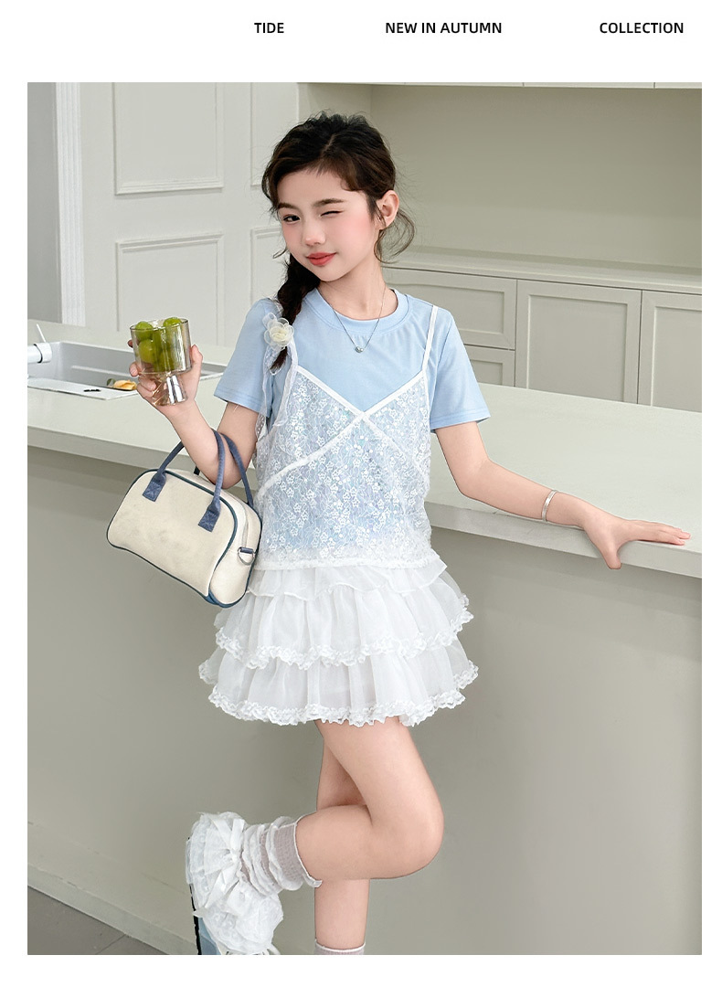 여자 세트 2025 여름 새로운 패션 서양 스타일 아기 소녀 달콤한 레이스 반팔 치마스토어 가기