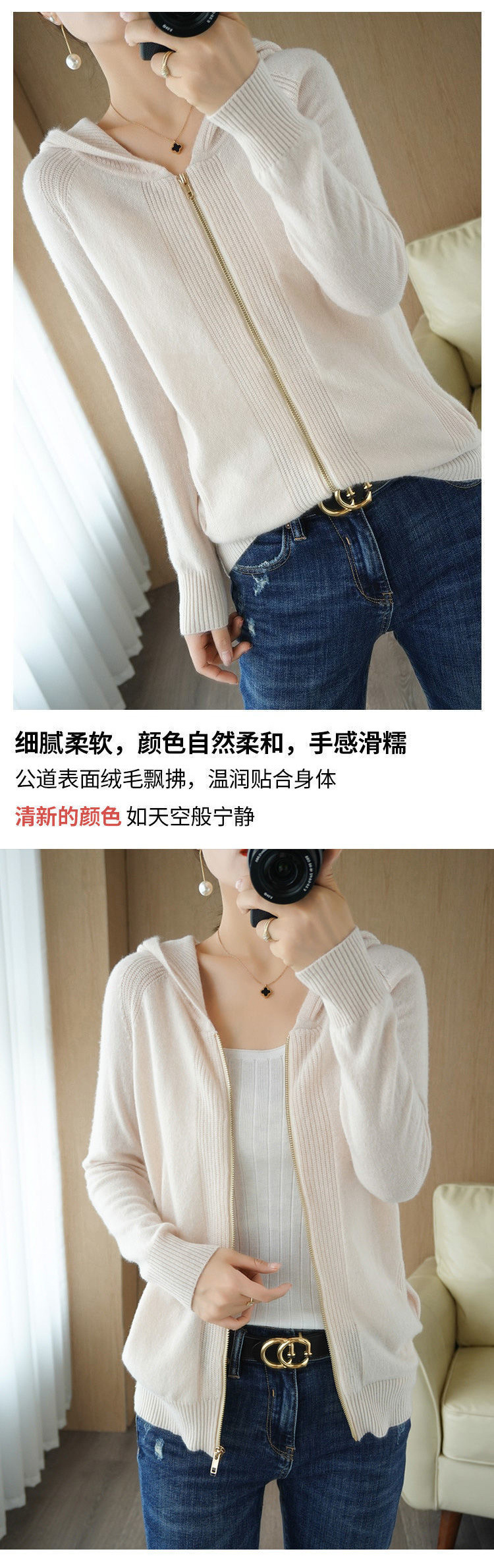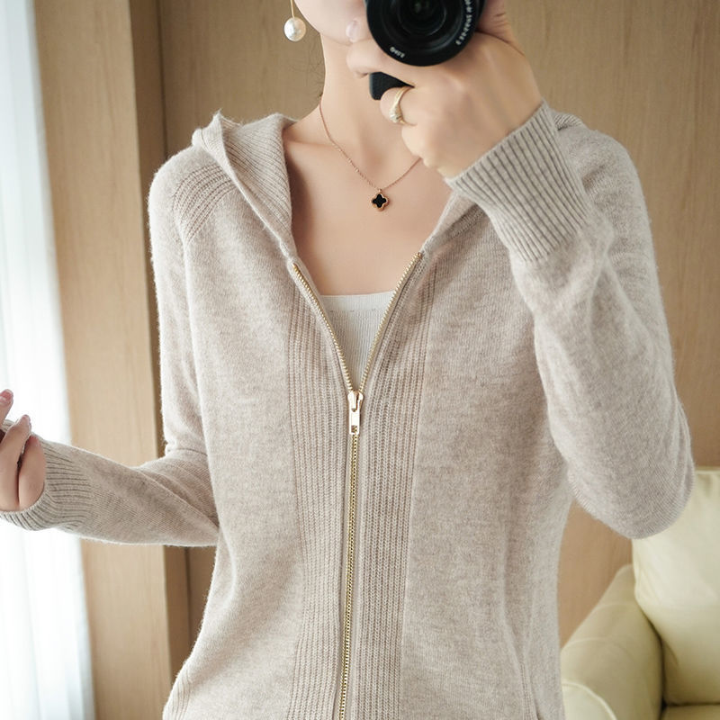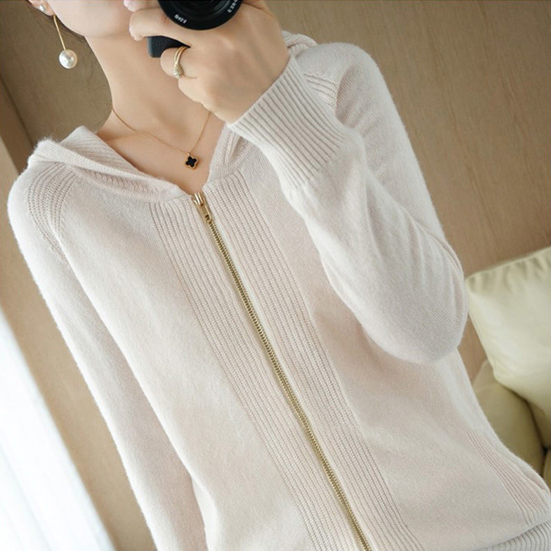후디 코트 여자 2025 년 봄과 가을 새로운 슬림 핏 슬리밍 올 매치 스웨터 핏 스트라이프 니트 지퍼 카디건스토어 가기