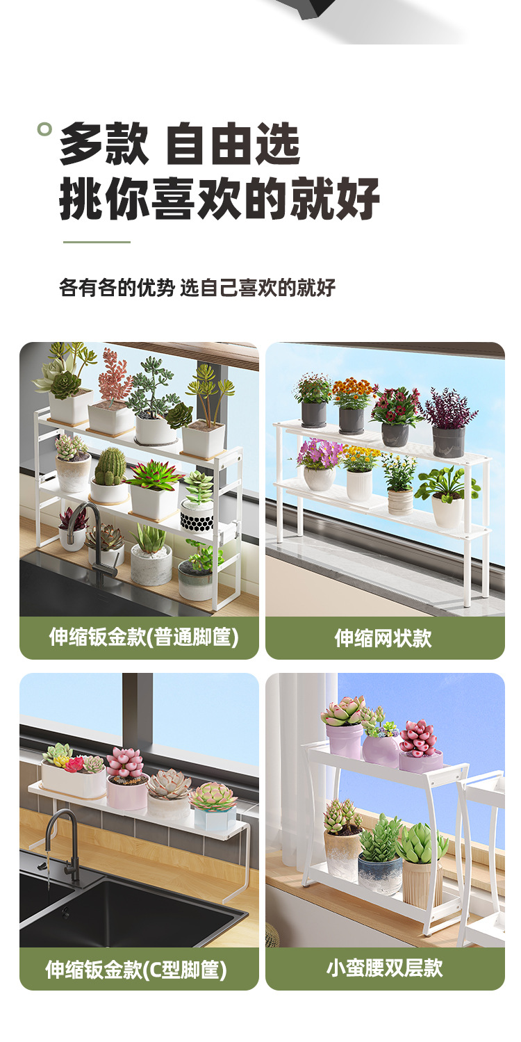창턱 꽃 랙 좁은 주방 확장 랙 꽃 냄비 브래킷 베이 창 더블 레이어 다육 저장 랙 철 식물 선반스토어 가기
