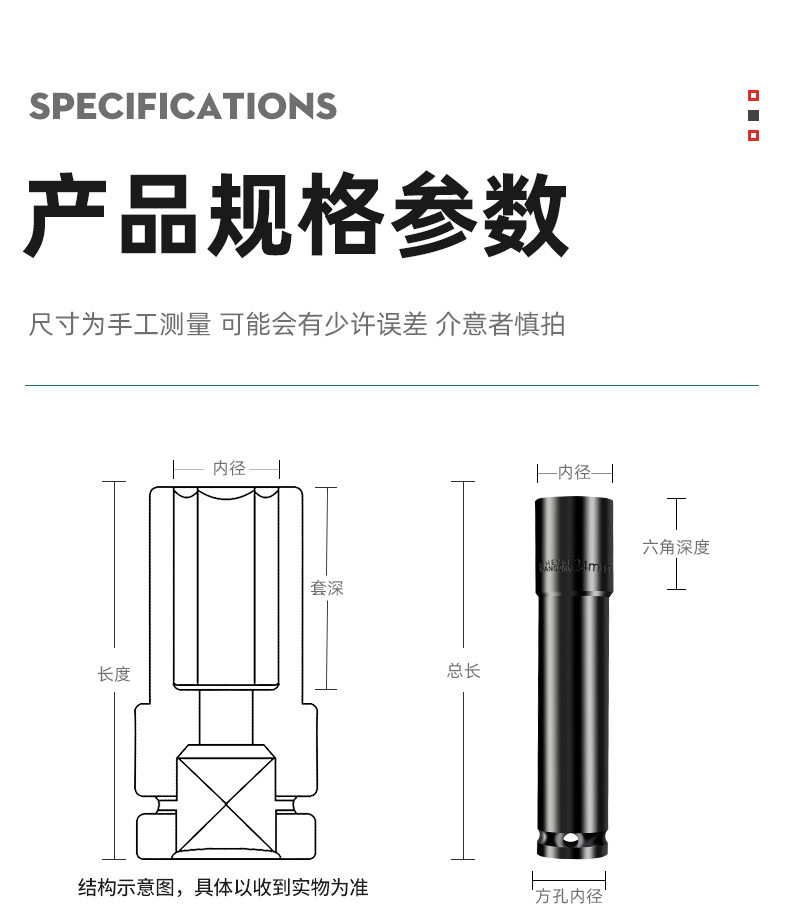 양조 소켓 중공 전기 렌치 14 소켓 헤드 세트 육각형 소켓 대형, 중형 및 소형 비행 22 타이어 공기 대포 소켓스토어 가기