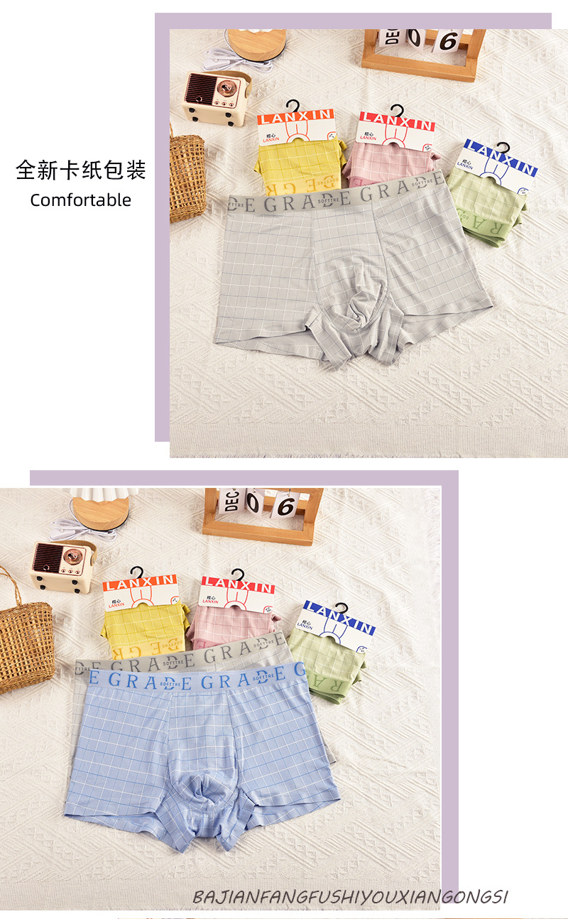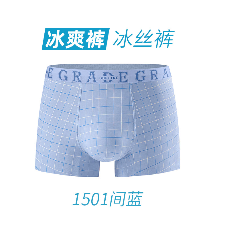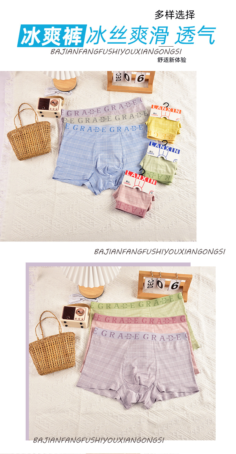 클래식 격자 무늬 남성 속옷 남성용 아이스 실크 통기성 빠른 건조 권투 선수 맞춤형 트렌디 미드 웨이스트 복서 반바지스토어 가기