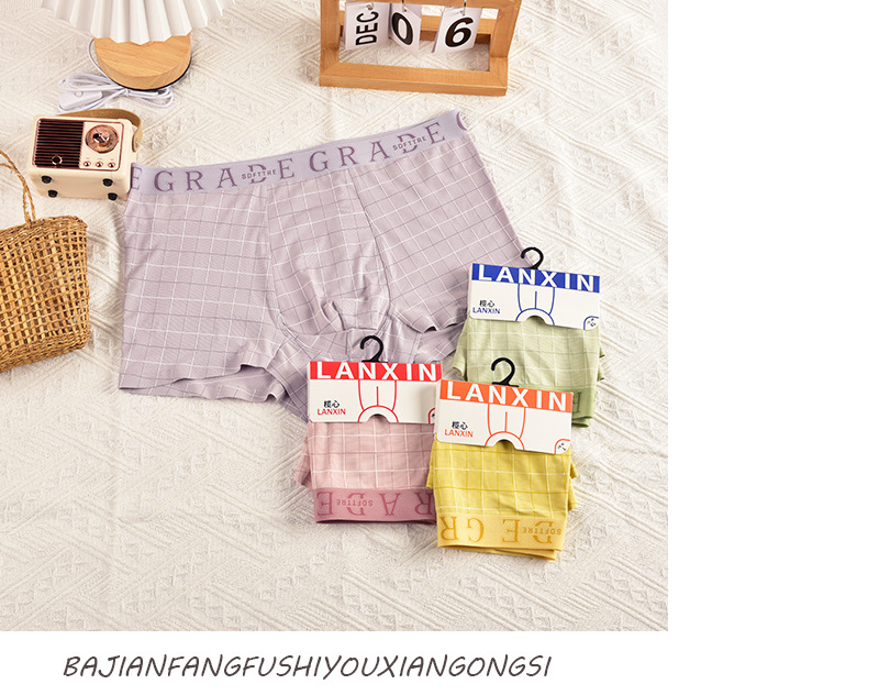 클래식 격자 무늬 남성 속옷 남성용 아이스 실크 통기성 빠른 건조 권투 선수 맞춤형 트렌디 미드 웨이스트 복서 반바지