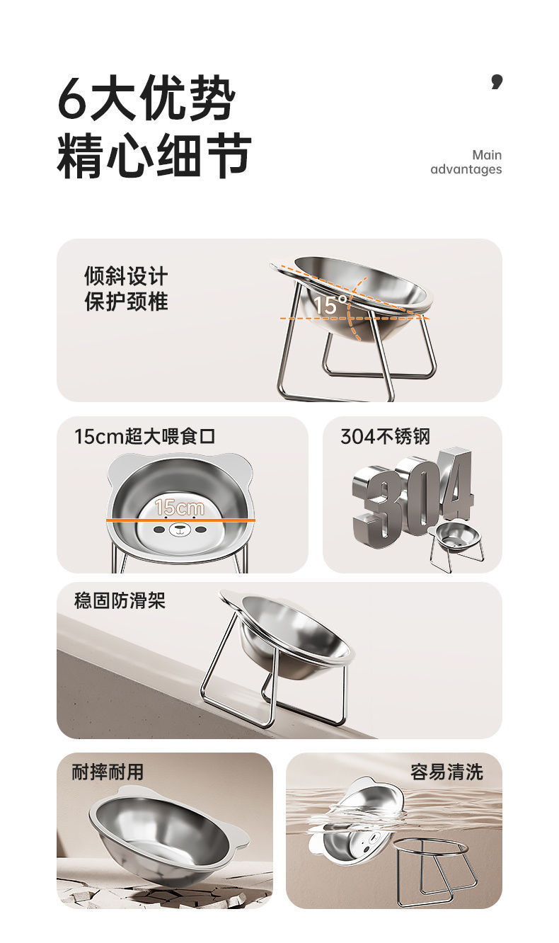 스테인레스 스틸 고양이 그릇 애완 동물 랙 높은 목 보호 애완 동물 그릇 반대로 뒤집는 개 그릇 고양이 그릇 음식 밥 그릇 마시는 그릇