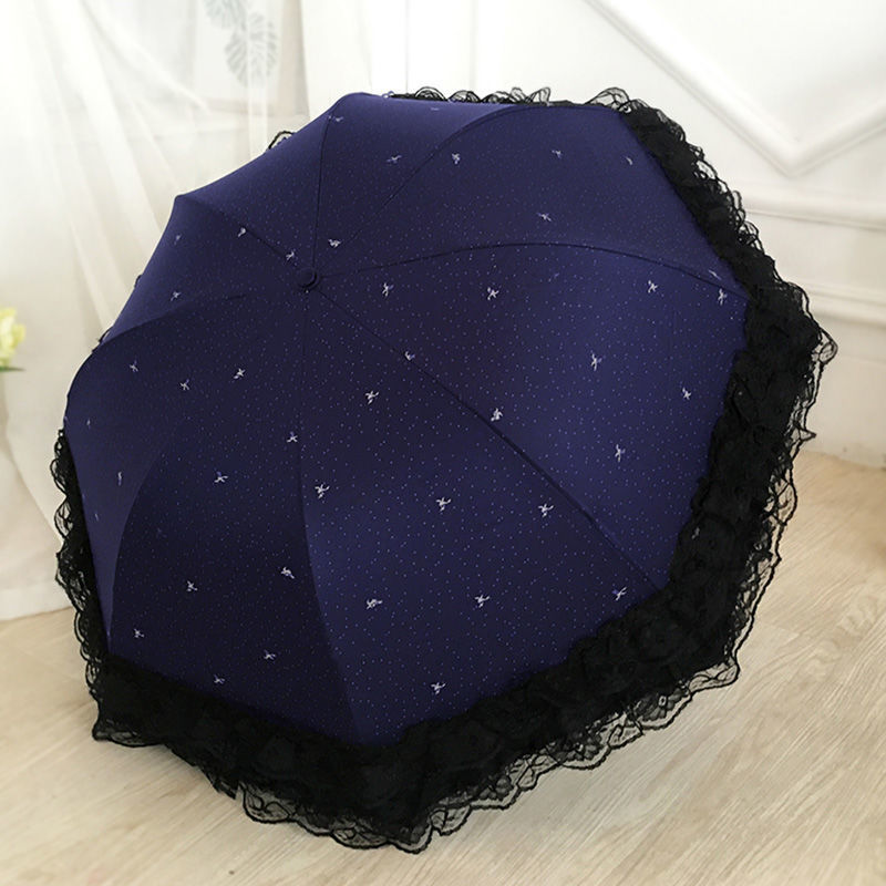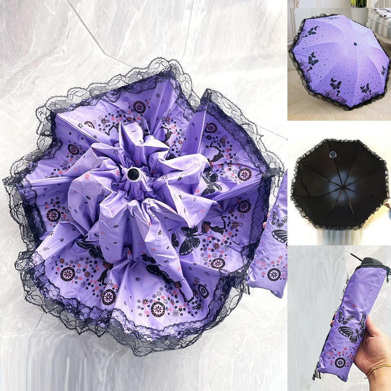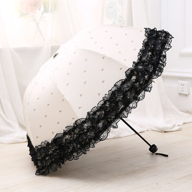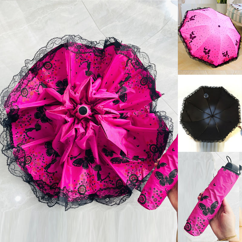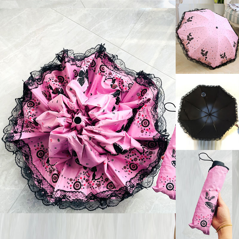 태양 우산 안티-UV 우산 여성의 맑고 비오는 우산 선 스크린 우산 접히는 귀여운 레이스 블랙 접착제스토어 가기