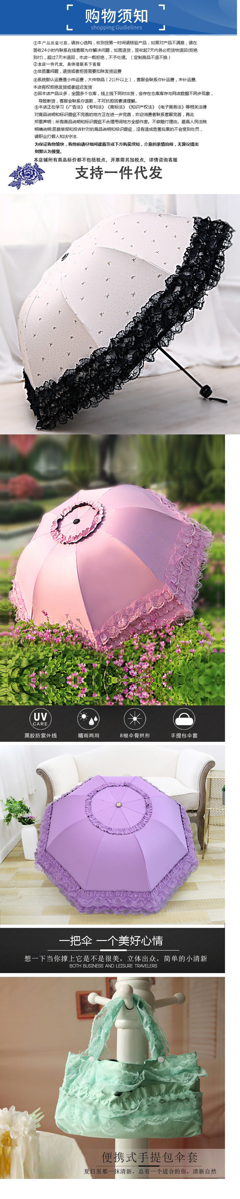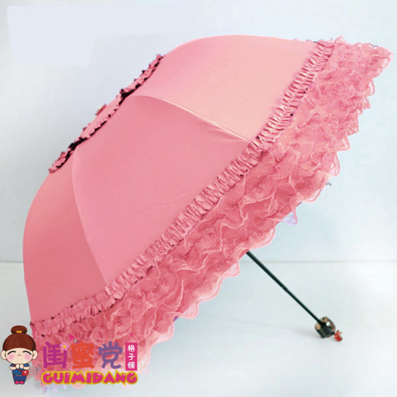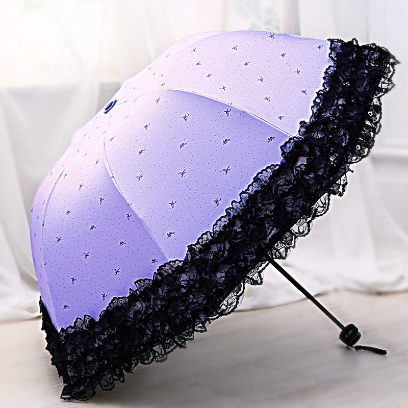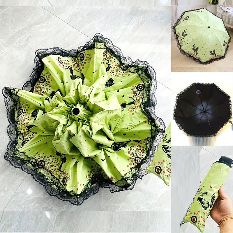 태양 우산 안티-UV 우산 여성의 맑고 비오는 우산 선 스크린 우산 접히는 귀여운 레이스 블랙 접착제스토어 가기