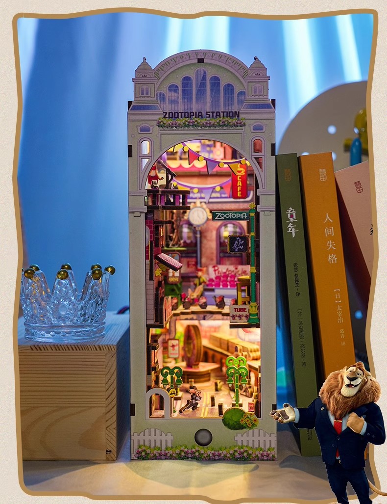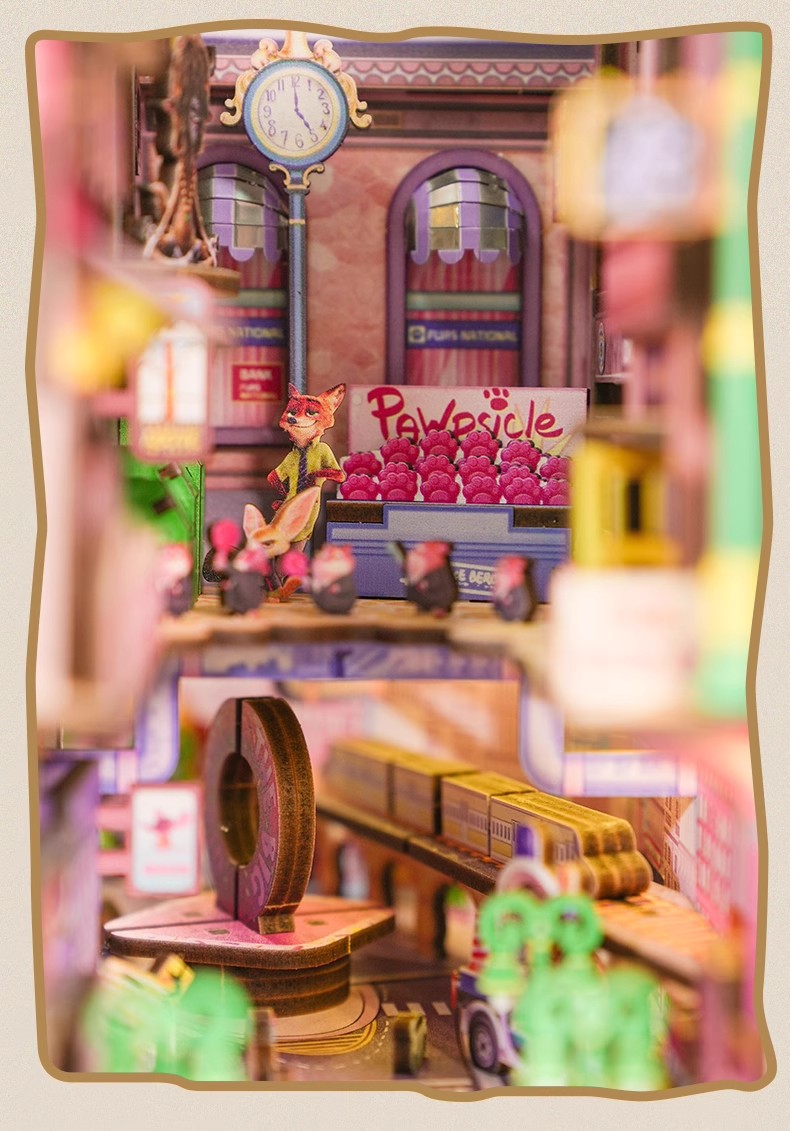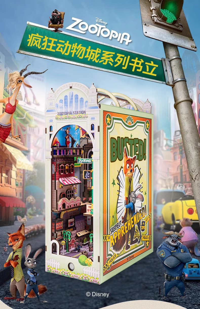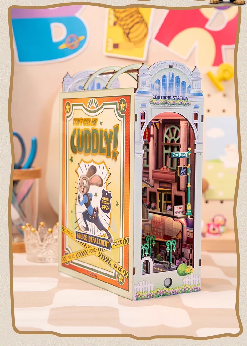 디즈니 미친 동물 도시 책 스탠드 조립 장난감 수제 팝업 책 오두막 모델 마이크로 장식품 선물스토어 가기