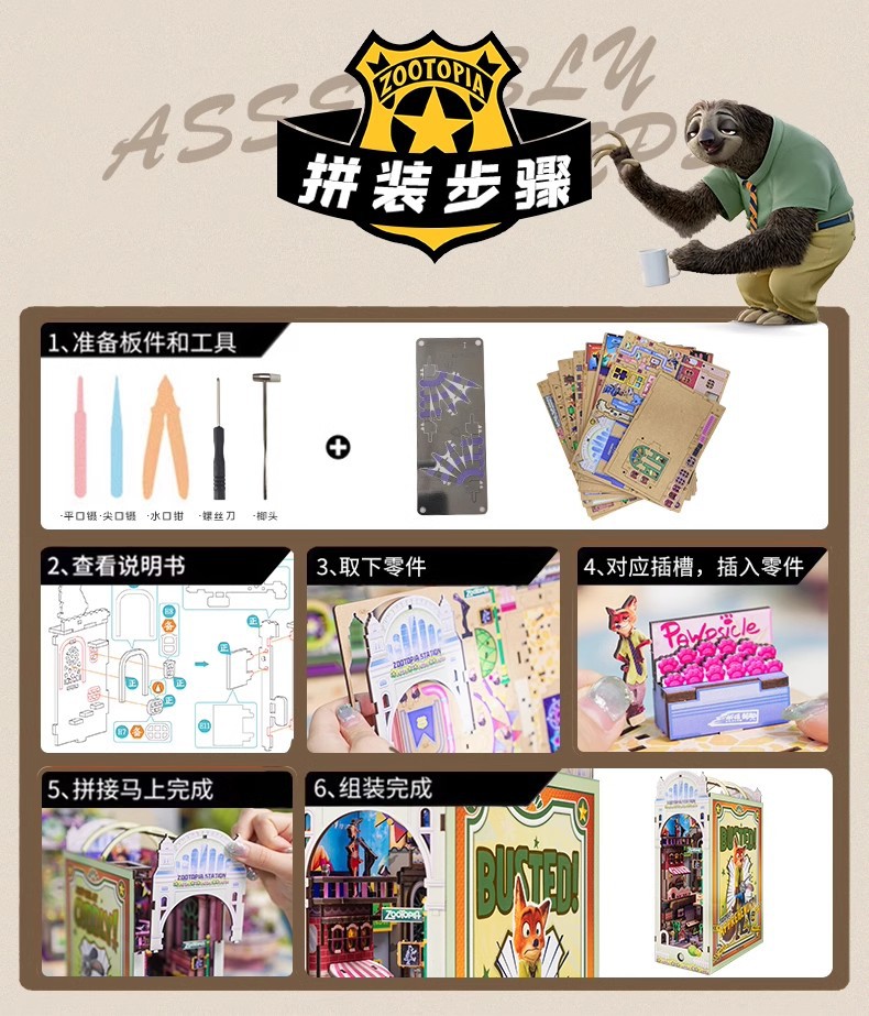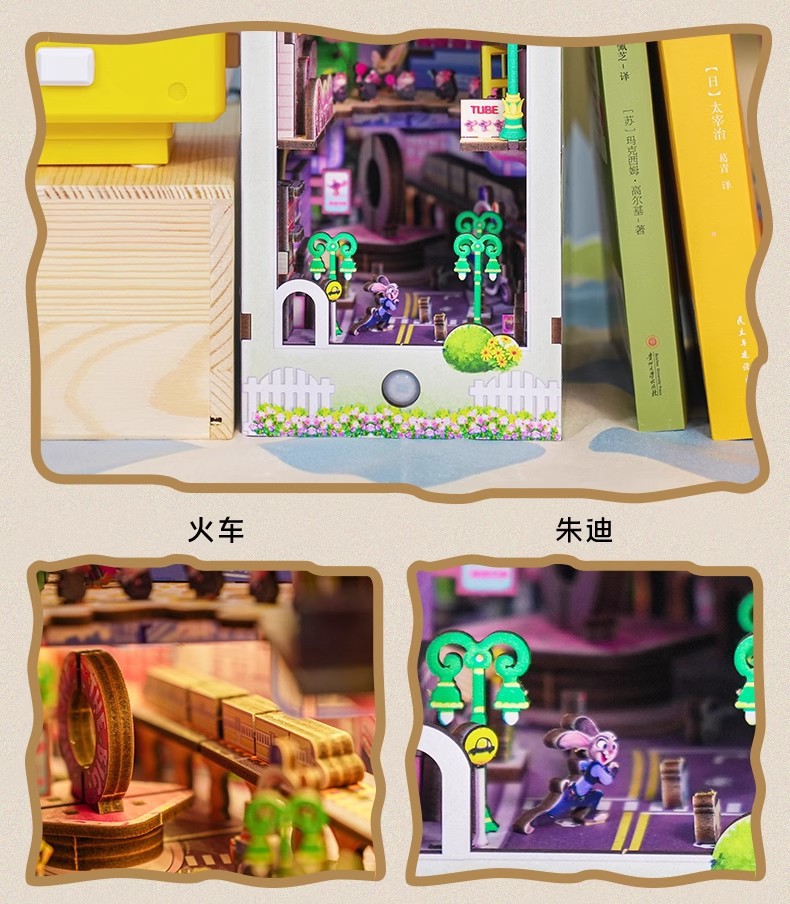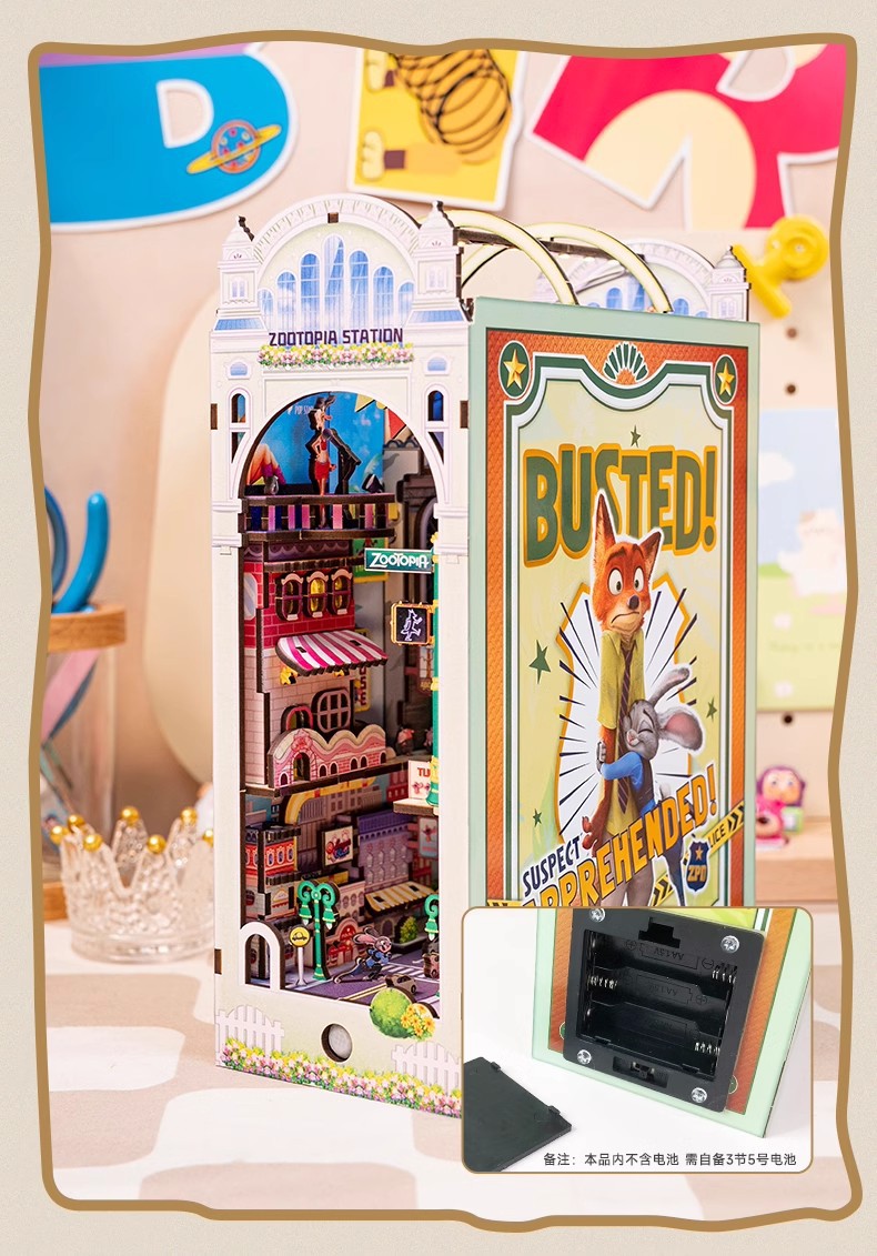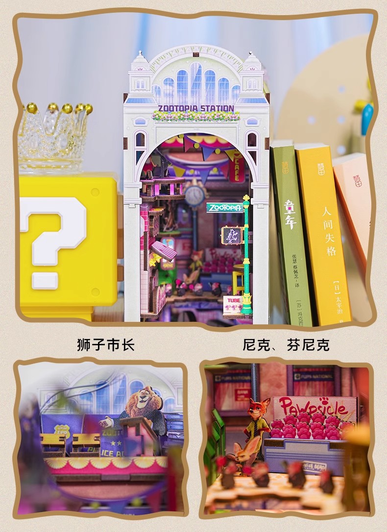 디즈니 미친 동물 도시 책 스탠드 조립 장난감 수제 팝업 책 오두막 모델 마이크로 장식품 선물스토어 가기