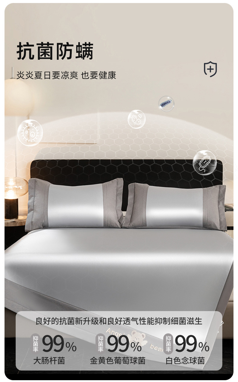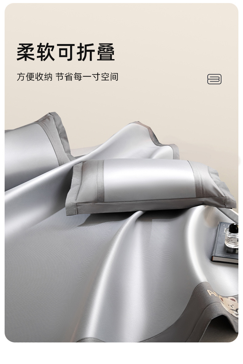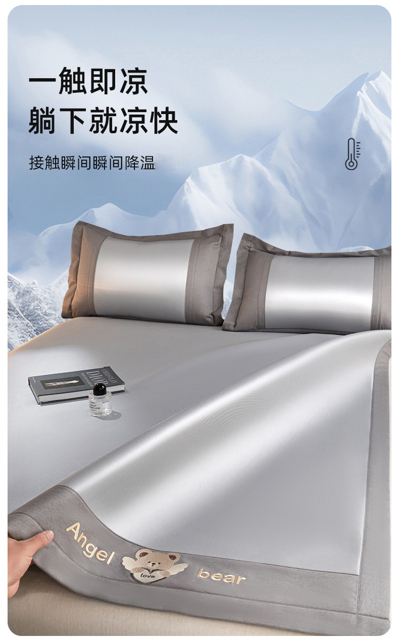 • Happy Bear-아이스 실크 블루 [베개 커버가 포함된 침대 매트 모델]