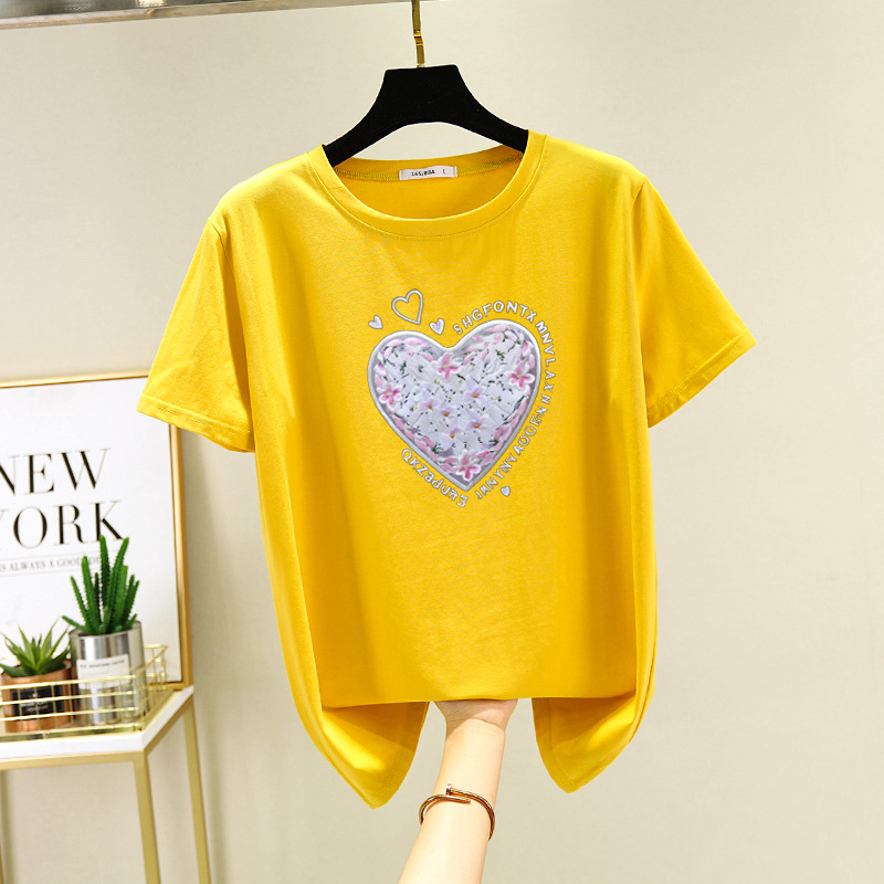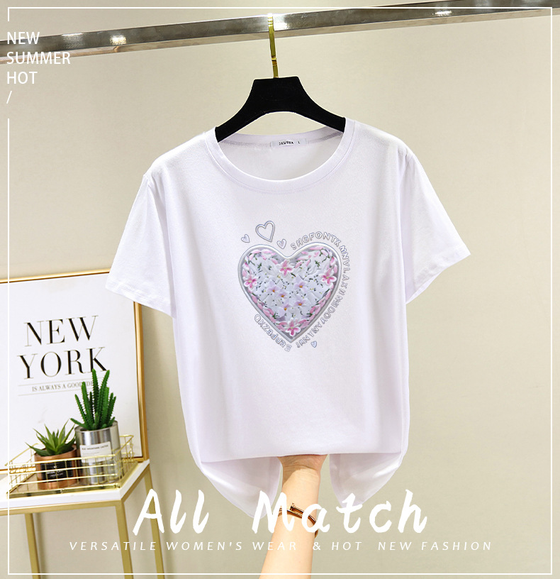 2025 년 여름 새로운 반팔 티셔츠 면 느슨한 3 차원 인쇄 올 매치 반소매 탑 넥