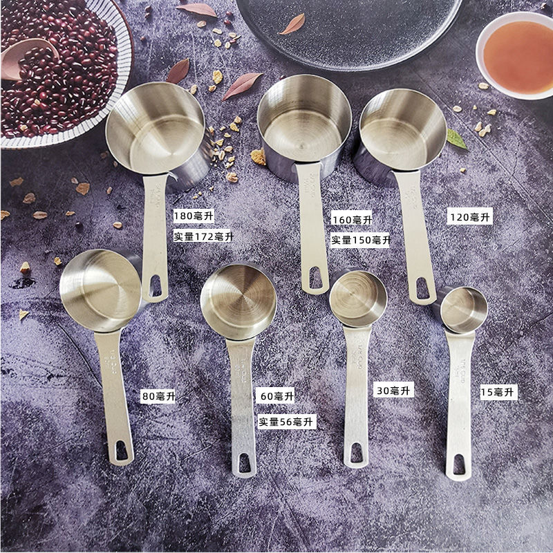 304 스테인레스 스틸 측정 스푼 세트 15/30506080100160180240ml 가열 가능한 측정 컵