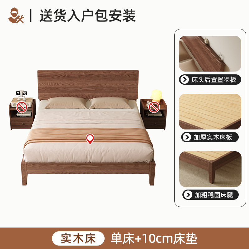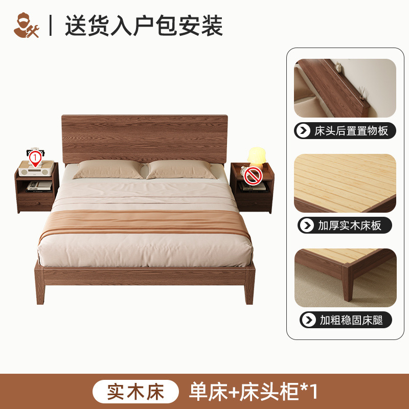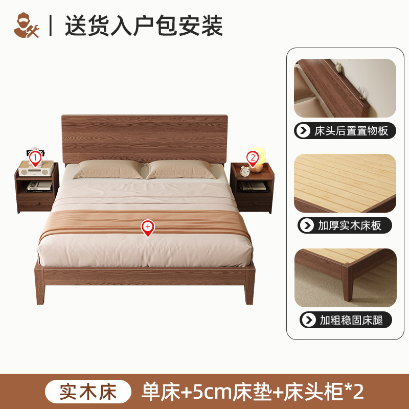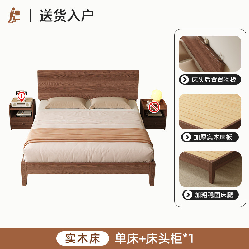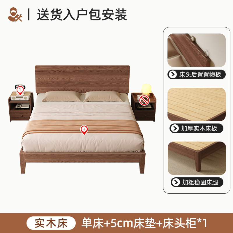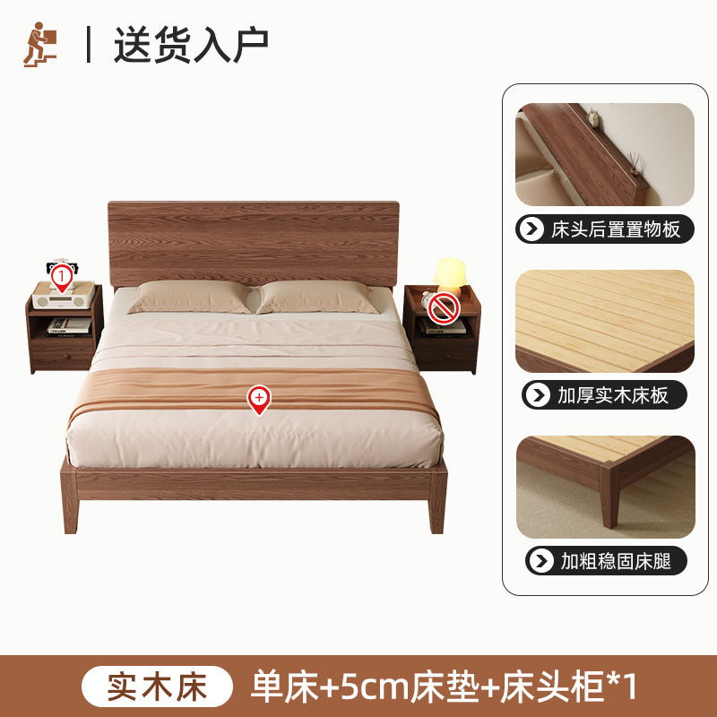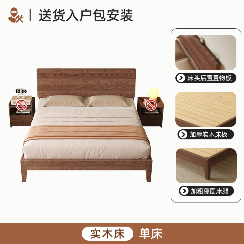MZ 호두 컬러 솔리드 우드 침대 두껍게 1.2 m 싱글 침대 1.5 m 더블 침대 1.8m 침실 홈 스토리지 침대스토어 가기