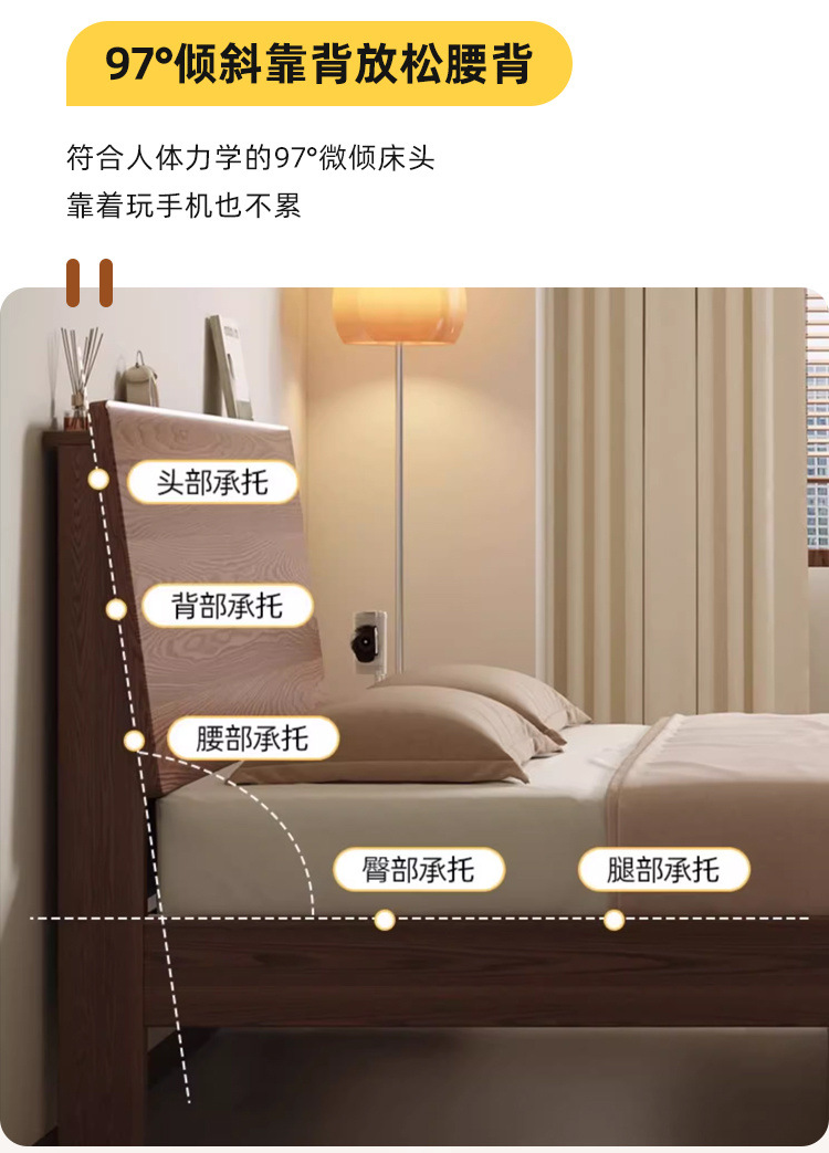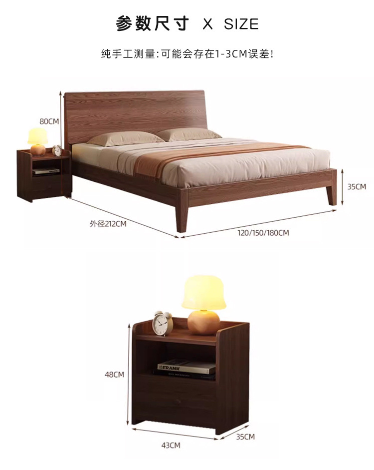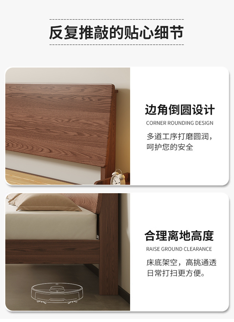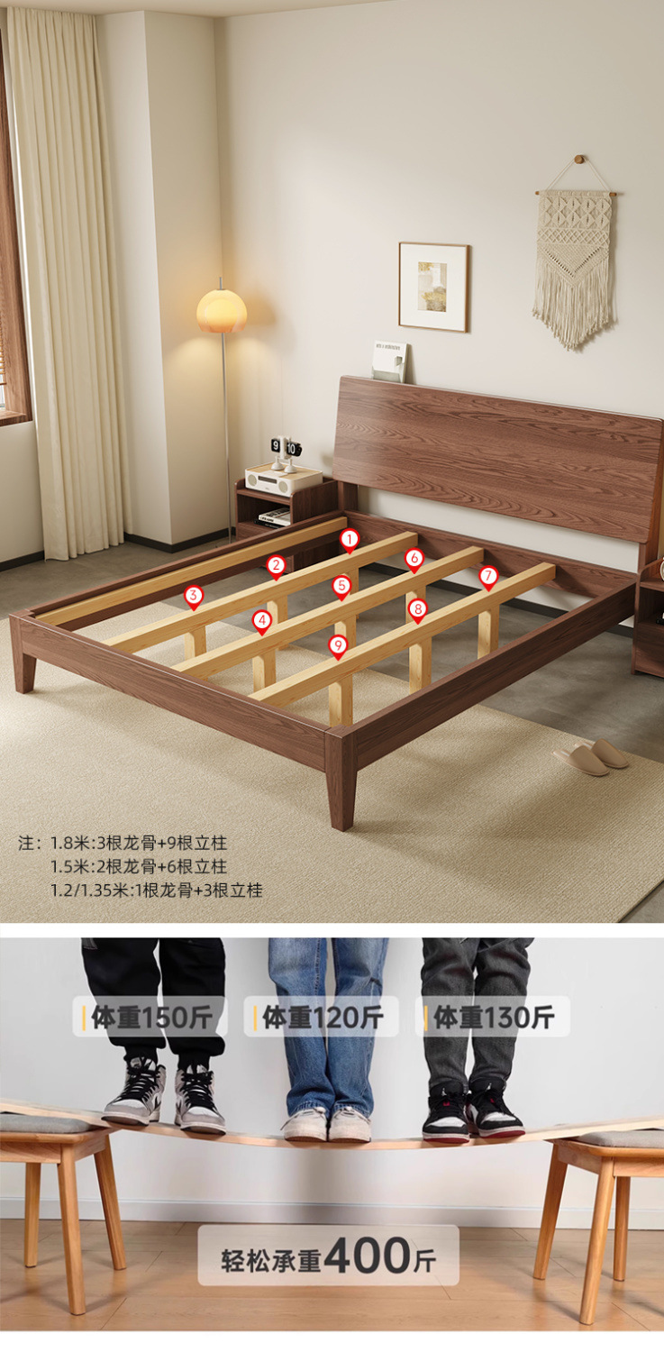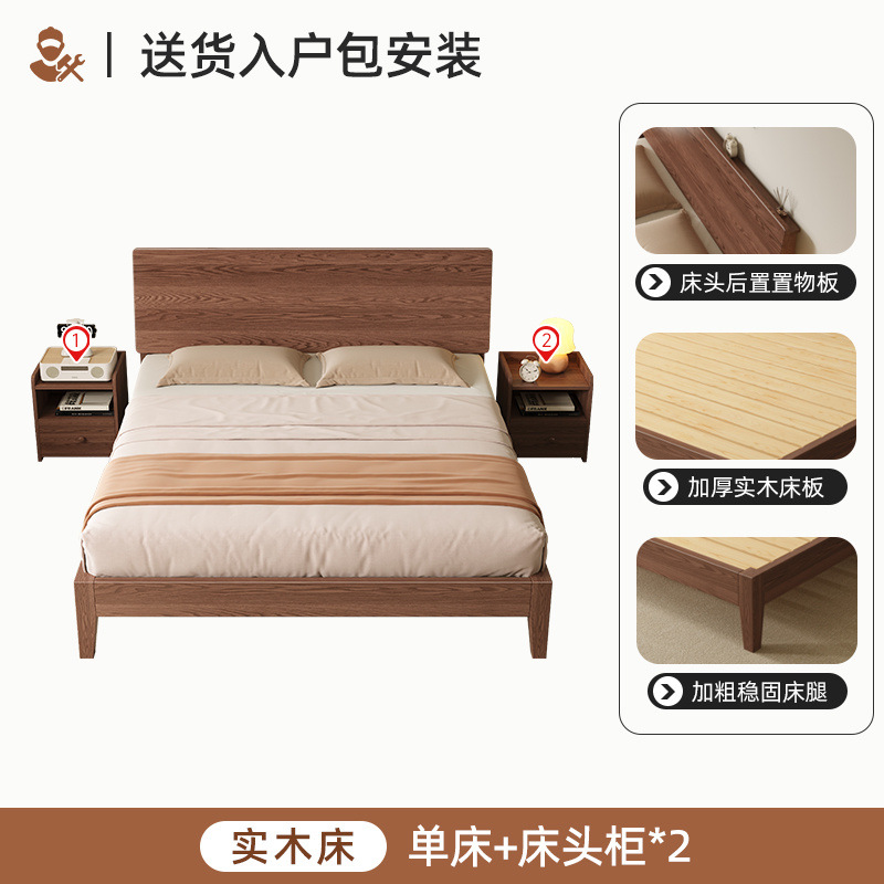 MZ 호두 컬러 솔리드 우드 침대 두껍게 1.2 m 싱글 침대 1.5 m 더블 침대 1.8m 침실 홈 스토리지 침대스토어 가기