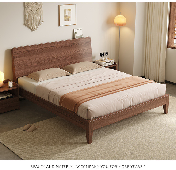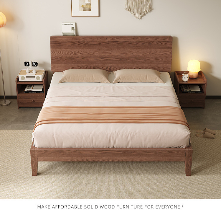 MZ 호두 컬러 솔리드 우드 침대 두껍게 1.2 m 싱글 침대 1.5 m 더블 침대 1.8m 침실 홈 스토리지 침대