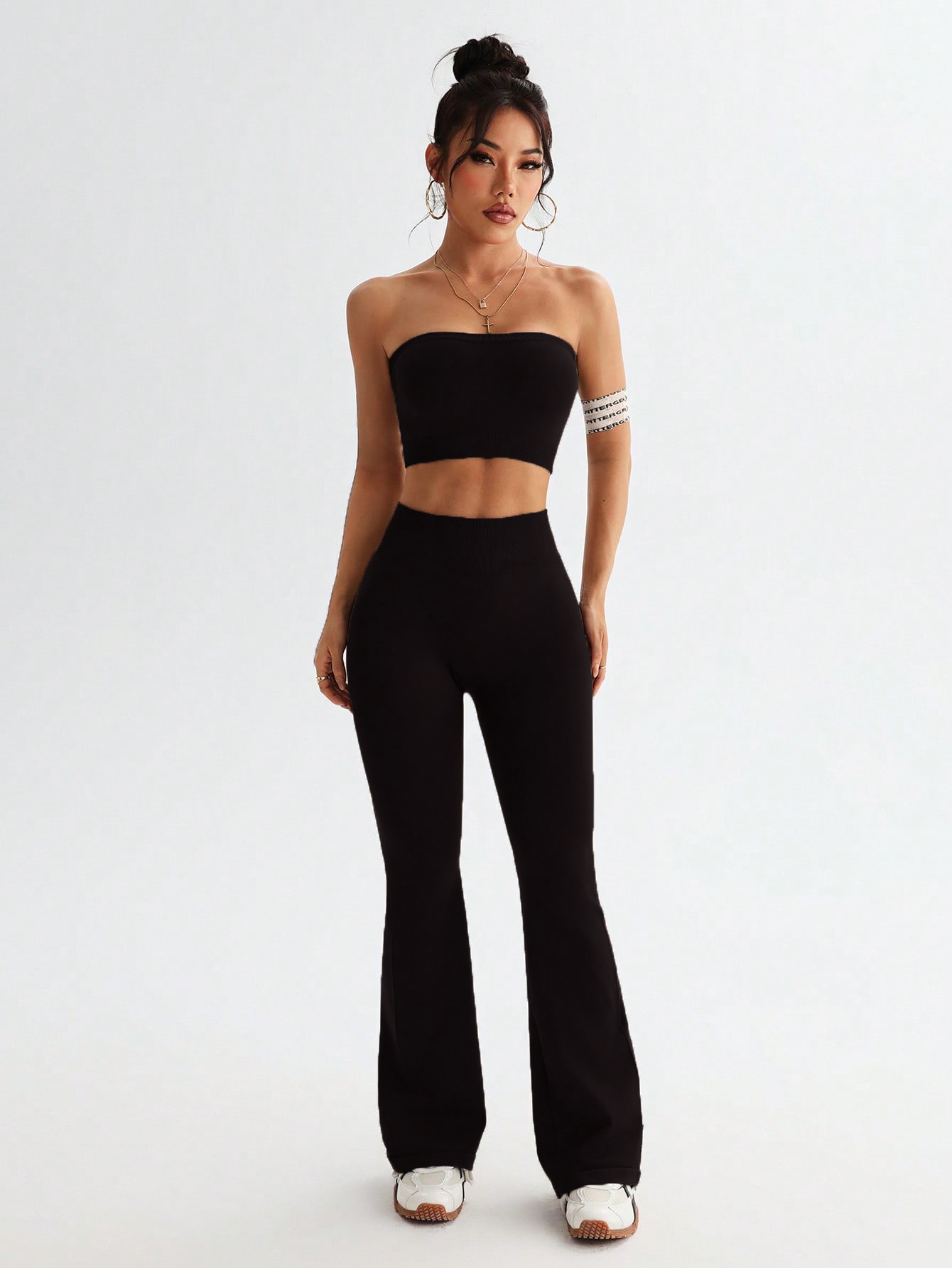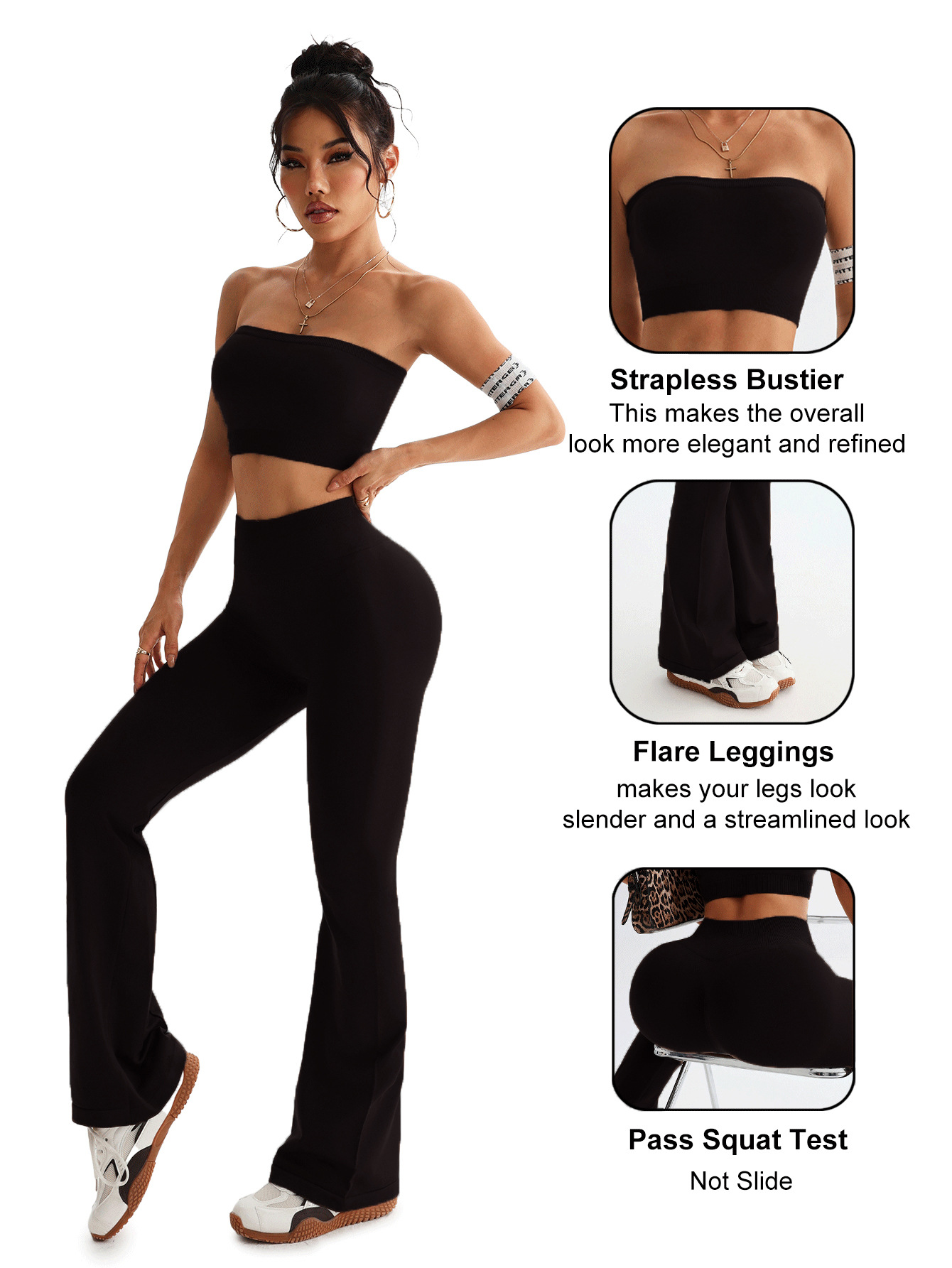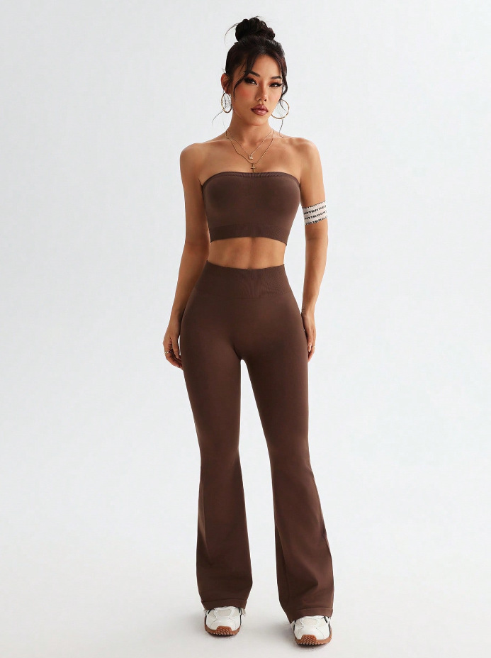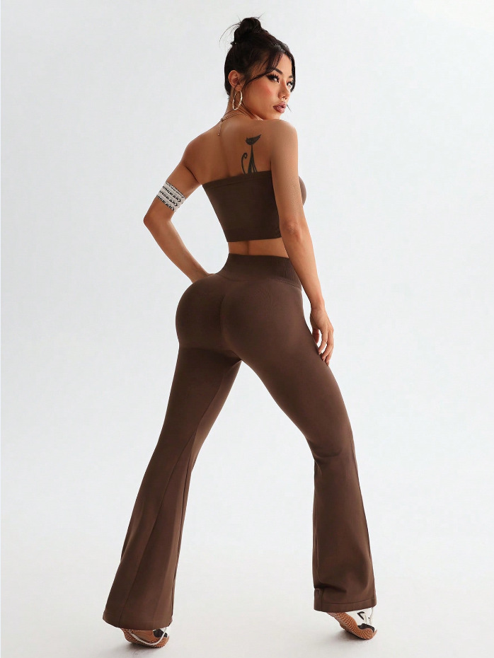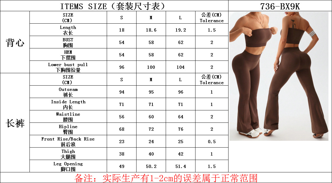 크로스보더 신상 튜브탑 나팔바지 하이웨이스트 뱃살보정 와이드 팬츠 여성 스포츠웨어 요가 세트스토어 가기