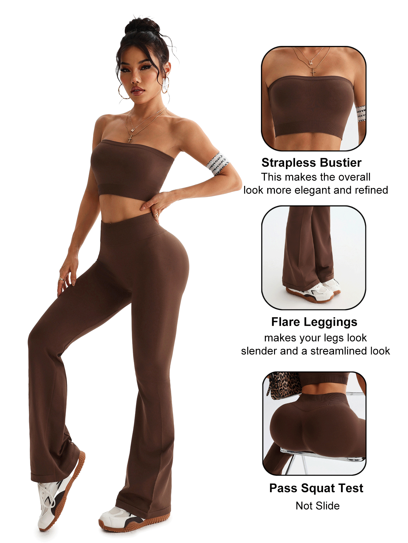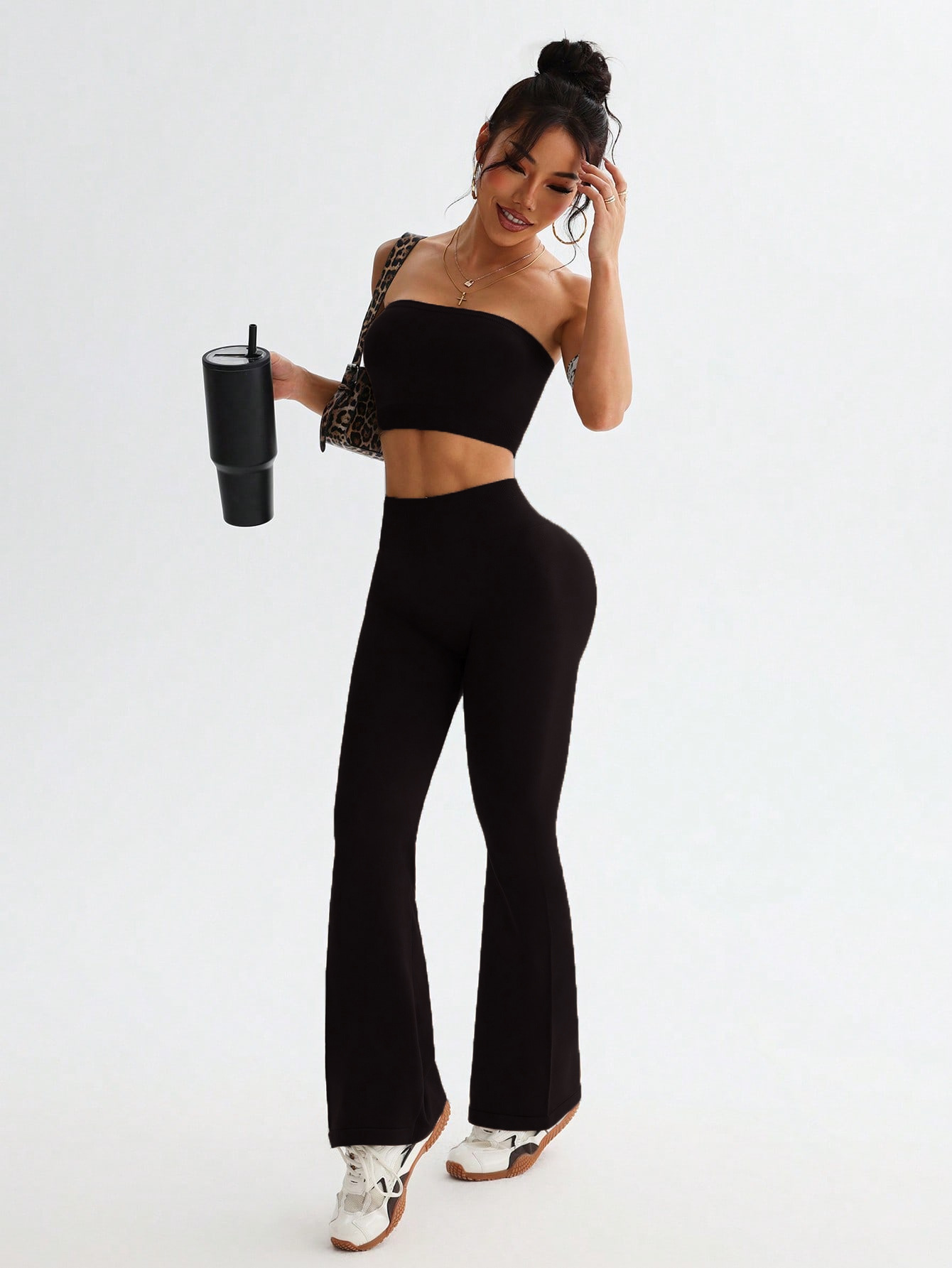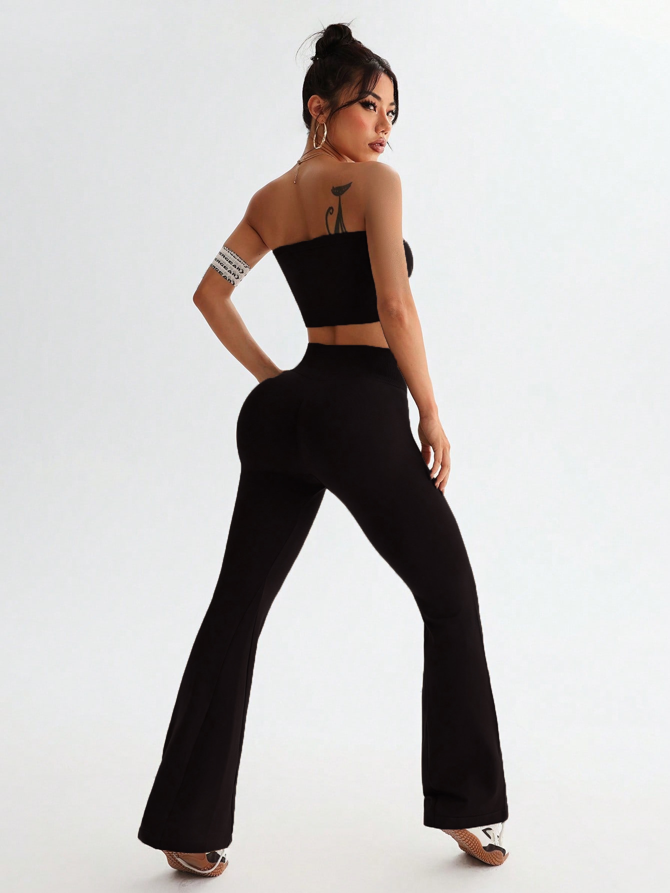 크로스보더 신상 튜브탑 나팔바지 하이웨이스트 뱃살보정 와이드 팬츠 여성 스포츠웨어 요가 세트스토어 가기