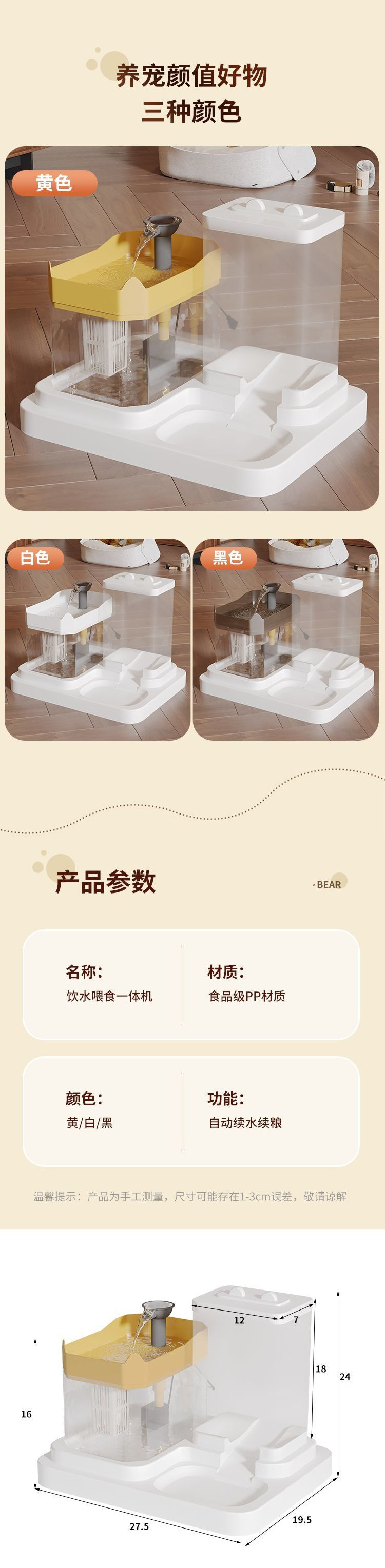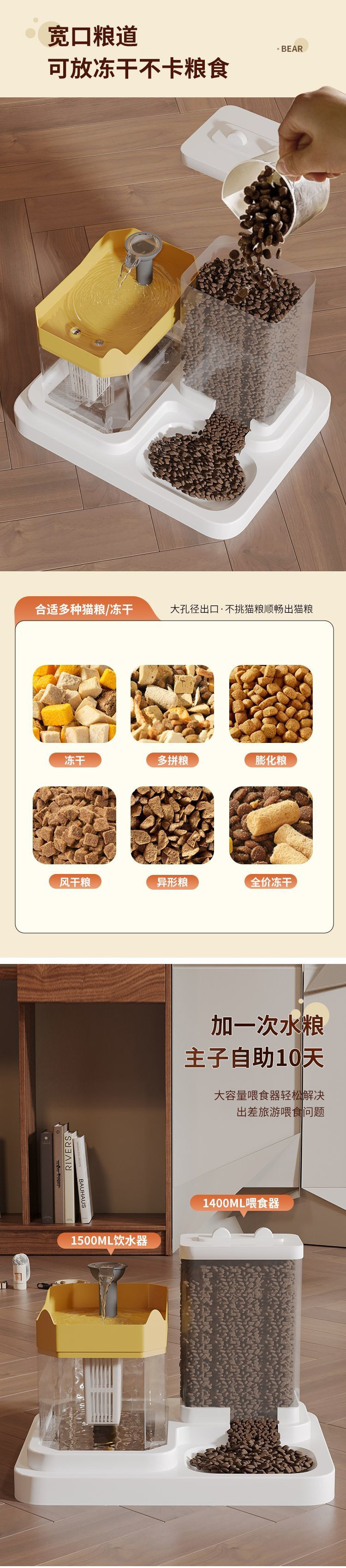 • 투명 다기능 고양이 밥그릇-노란색 뚜껑/식수/먹이/면필터 3개