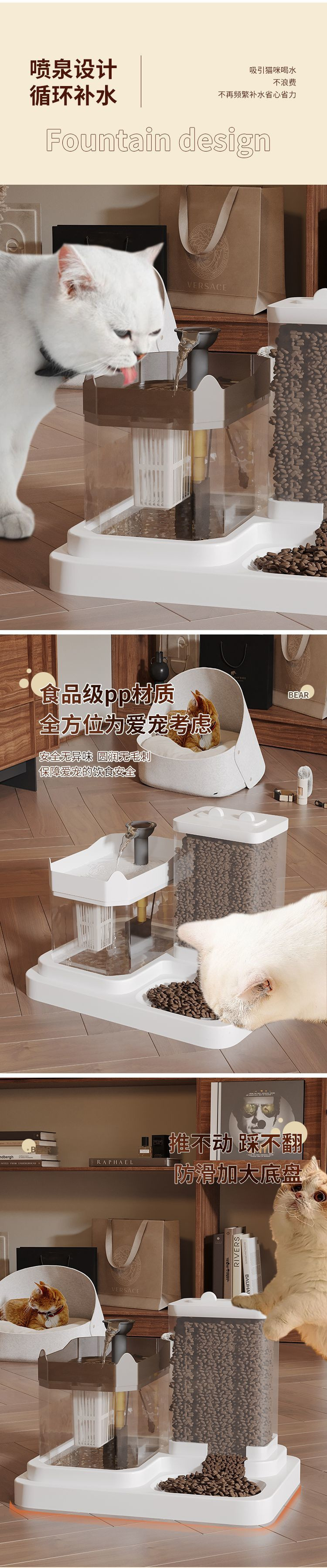 • 투명 다기능 고양이 밥그릇 - 흰색 뚜껑/식수/먹이/면필터 3개
