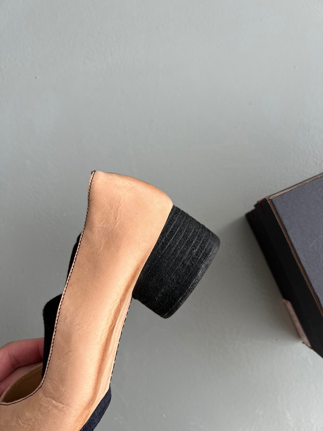 디아블로 니슈 마 미드 힐 발레 여성 신발 수제 컬러 광택 및 중고 크로스 스트랩 메리 제인 작은 가죽 신발