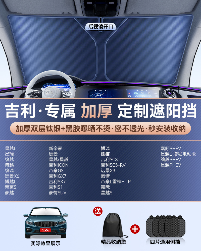 • 고급 맞춤형 [Geely Galaxy Exclusive] 진정한 이중층 얼음 공기 냉각 자외선 차단제 전면 가드