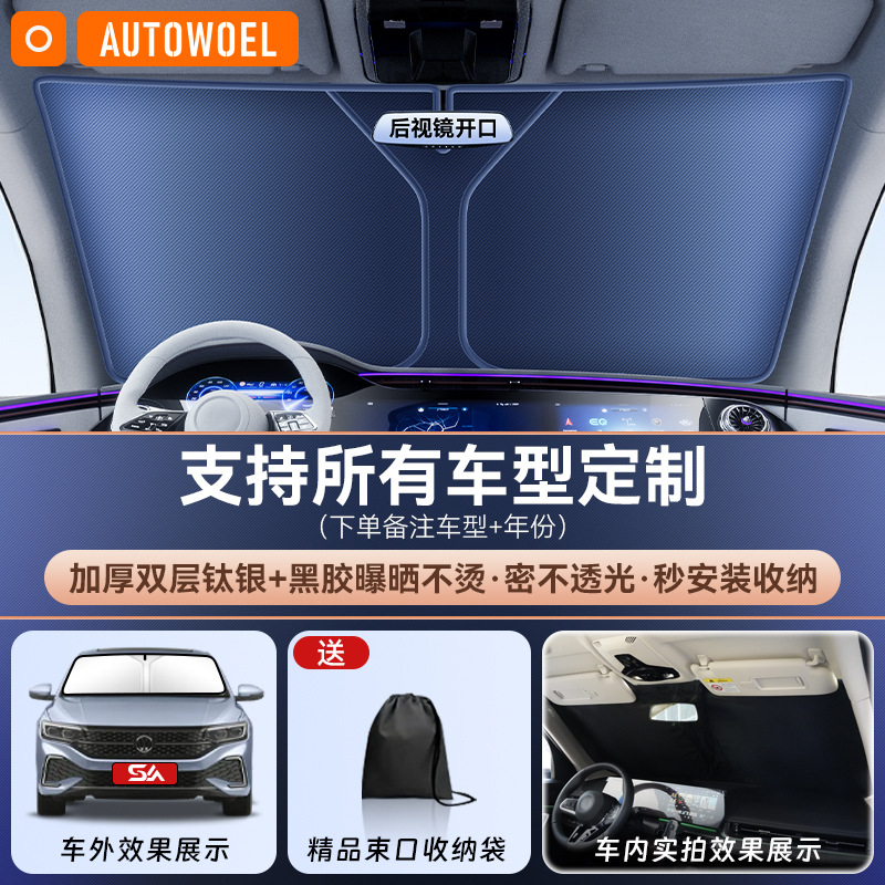 [트루 더블 레이어] 자동차 차양 전면 방패 차양 커튼 단열 선 스크린 앞 유리 UV 보호