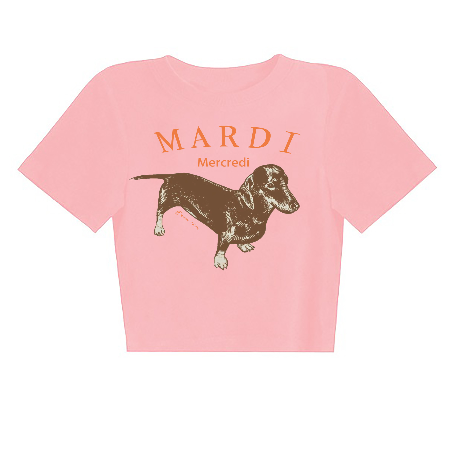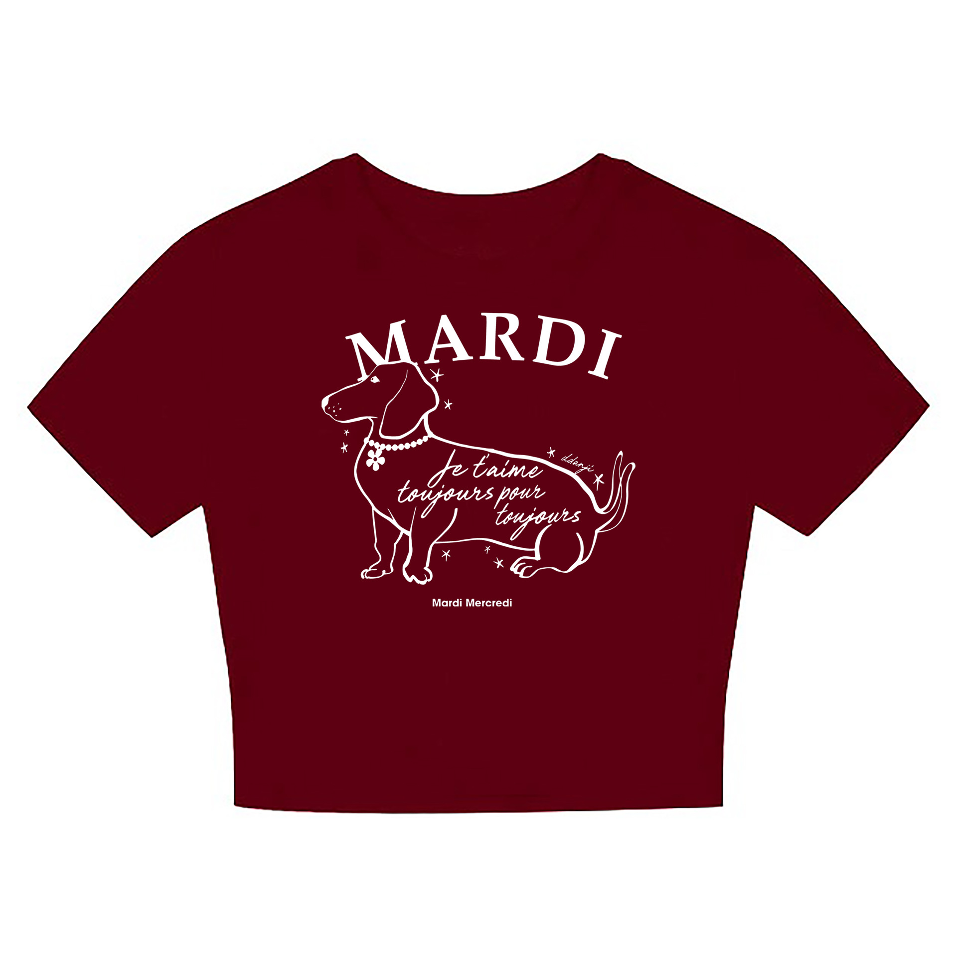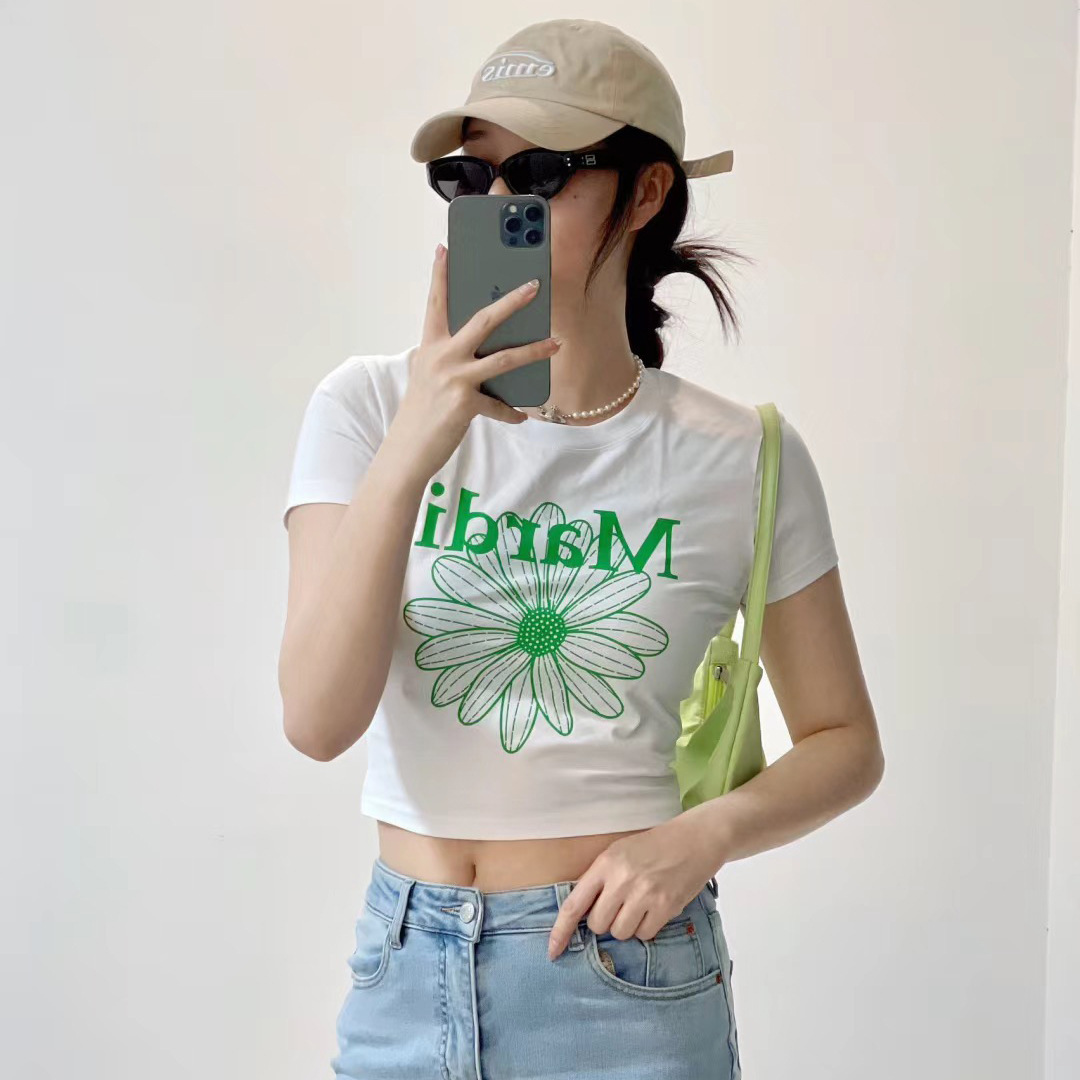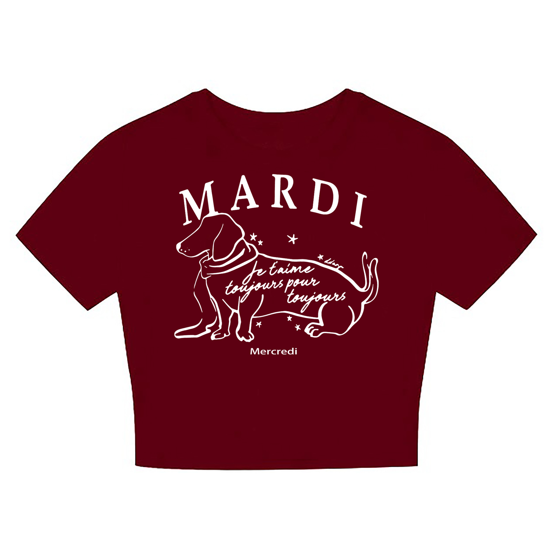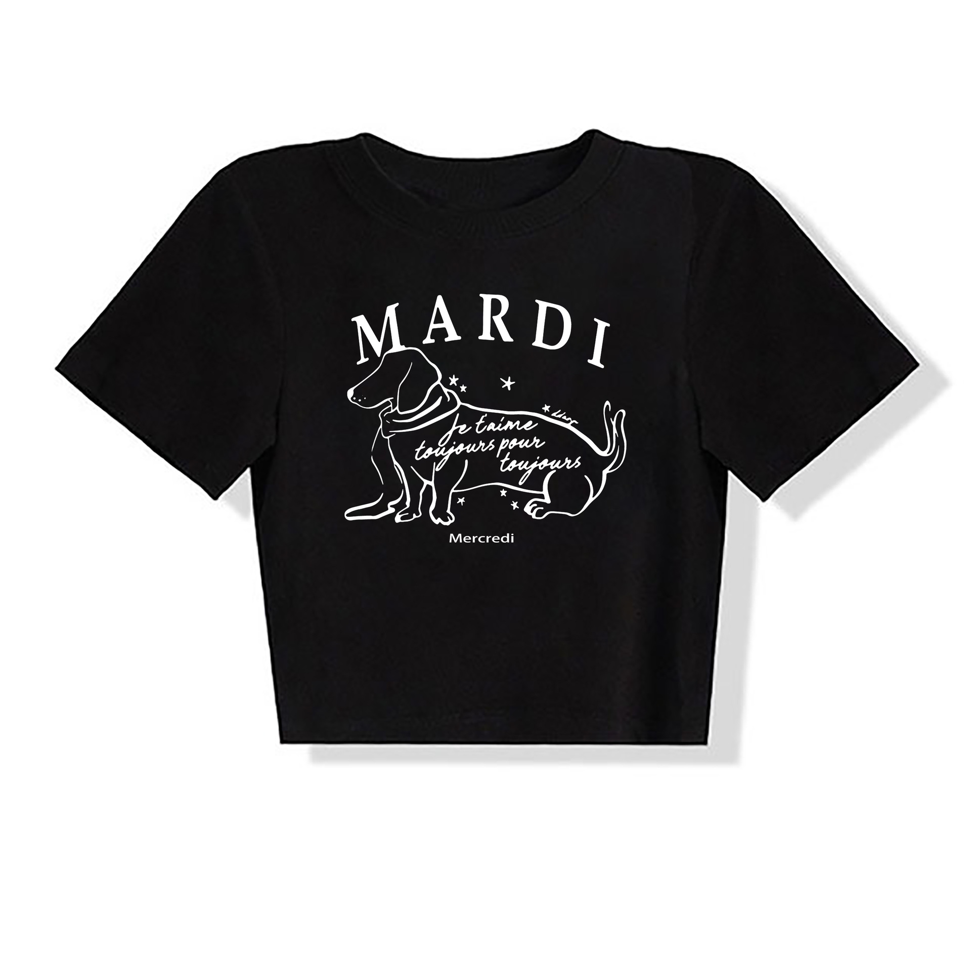 한국식 스파이스 걸 패션 브랜드 마디 반팔 티셔츠 여성용 리틀 데이지 닥스 훈트 개 타이트 쇼트 코트 티셔츠 여성용 탑스토어 가기