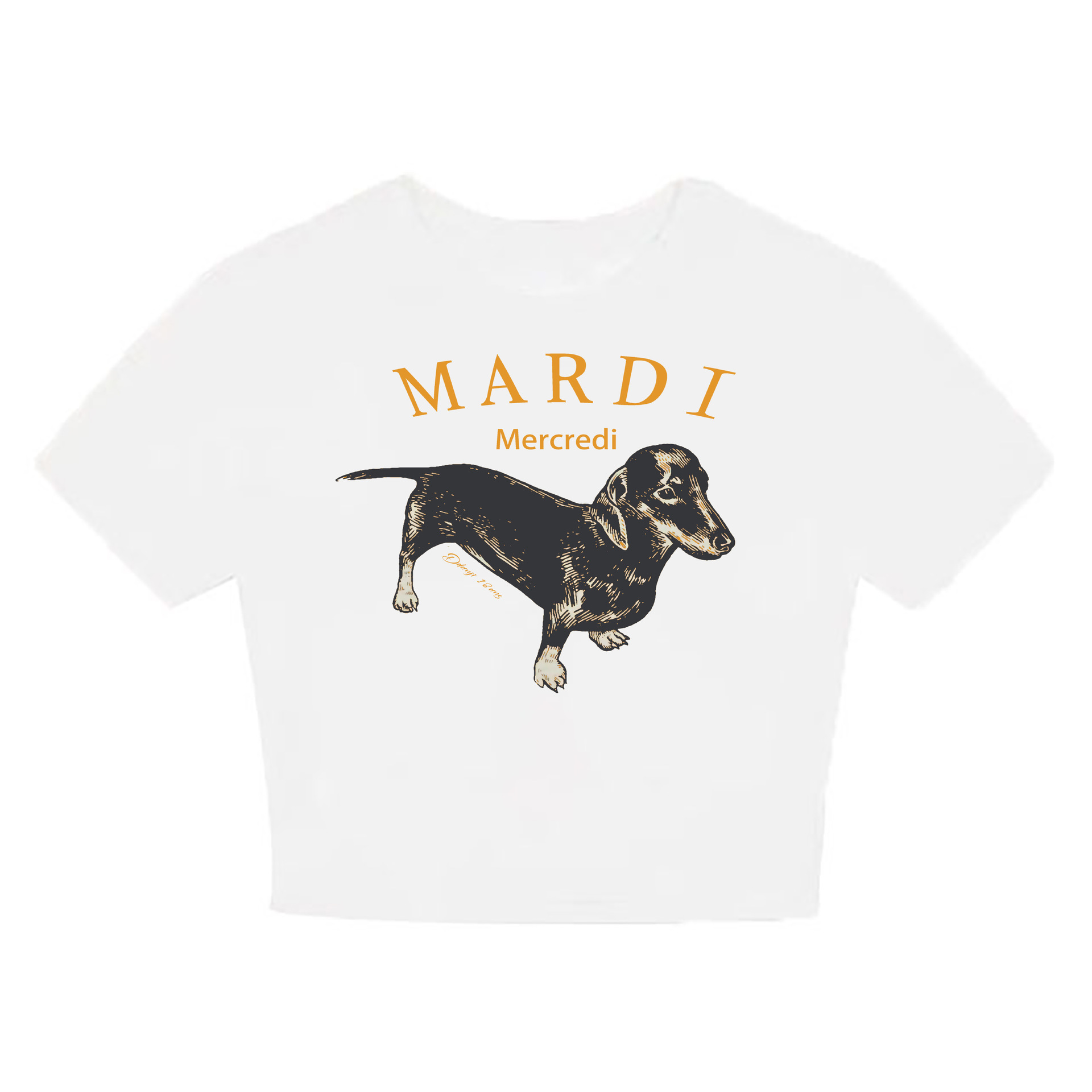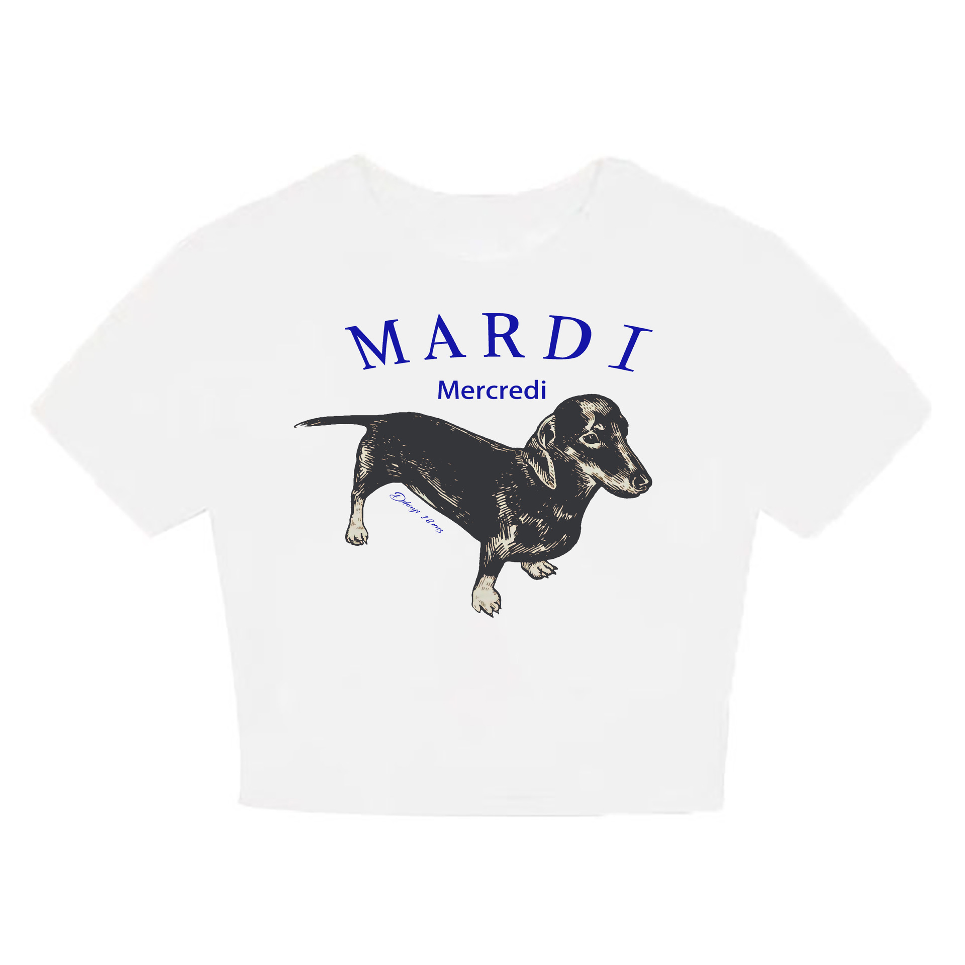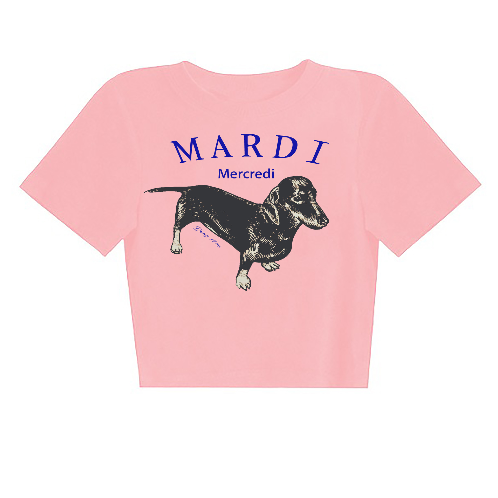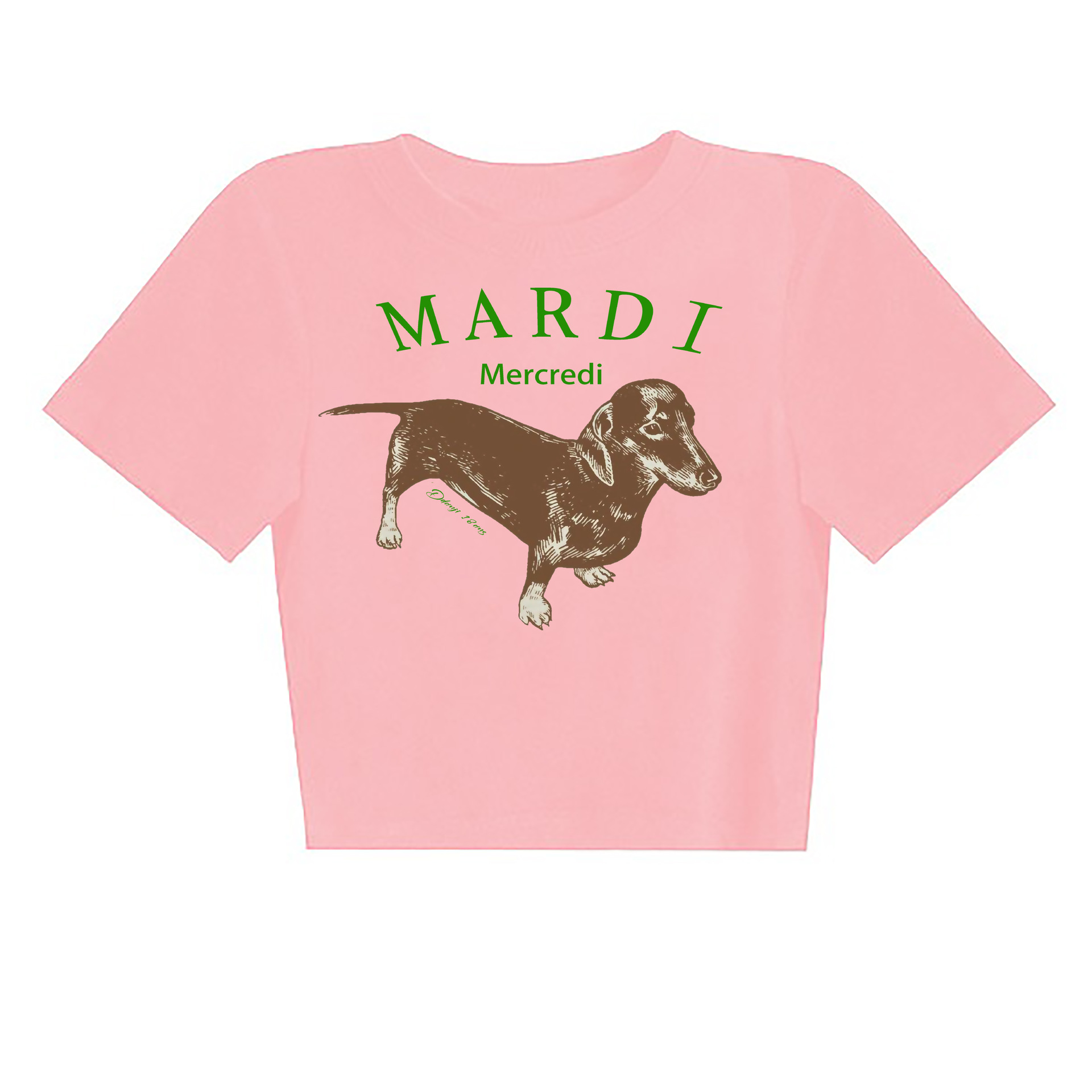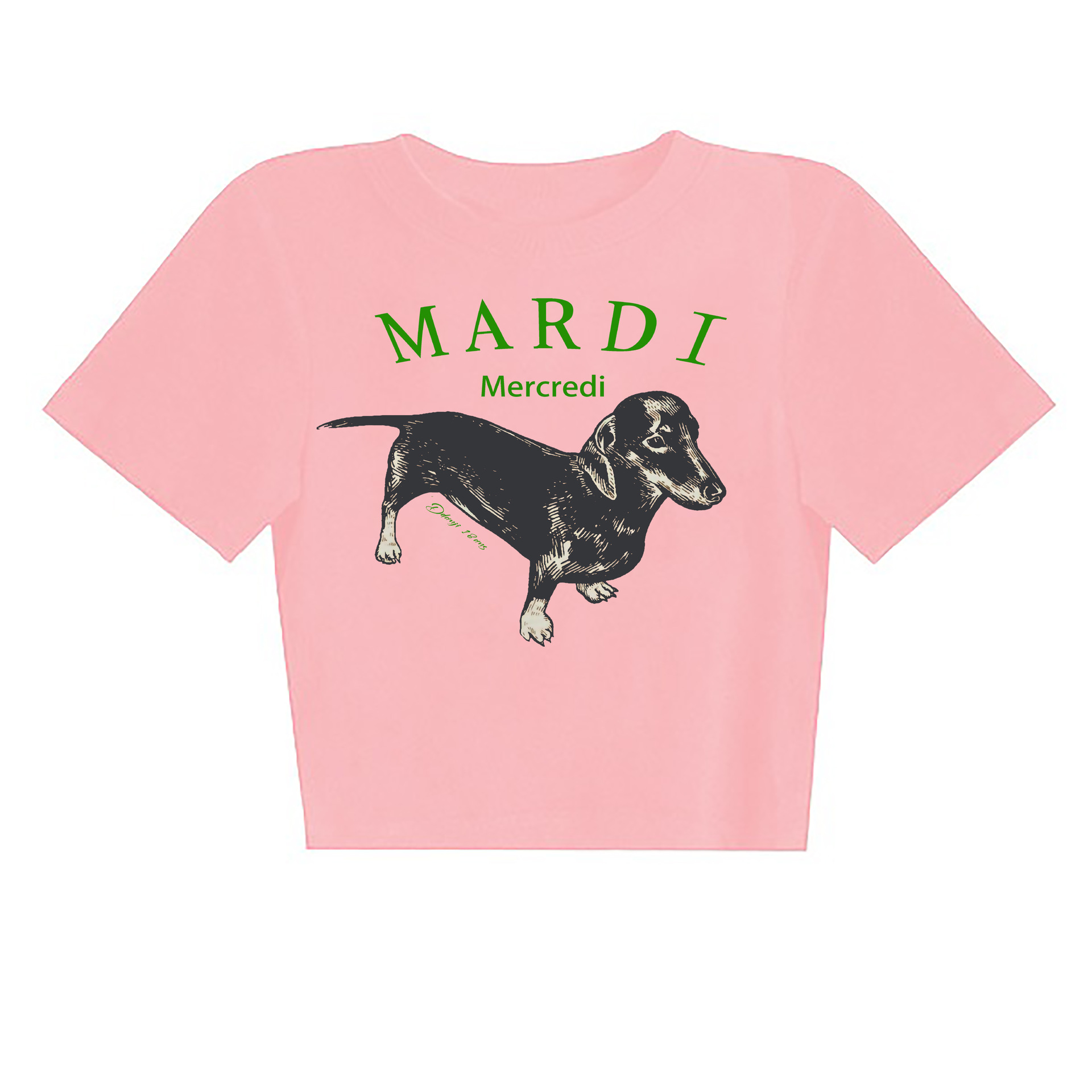 한국식 스파이스 걸 패션 브랜드 마디 반팔 티셔츠 여성용 리틀 데이지 닥스 훈트 개 타이트 쇼트 코트 티셔츠 여성용 탑스토어 가기