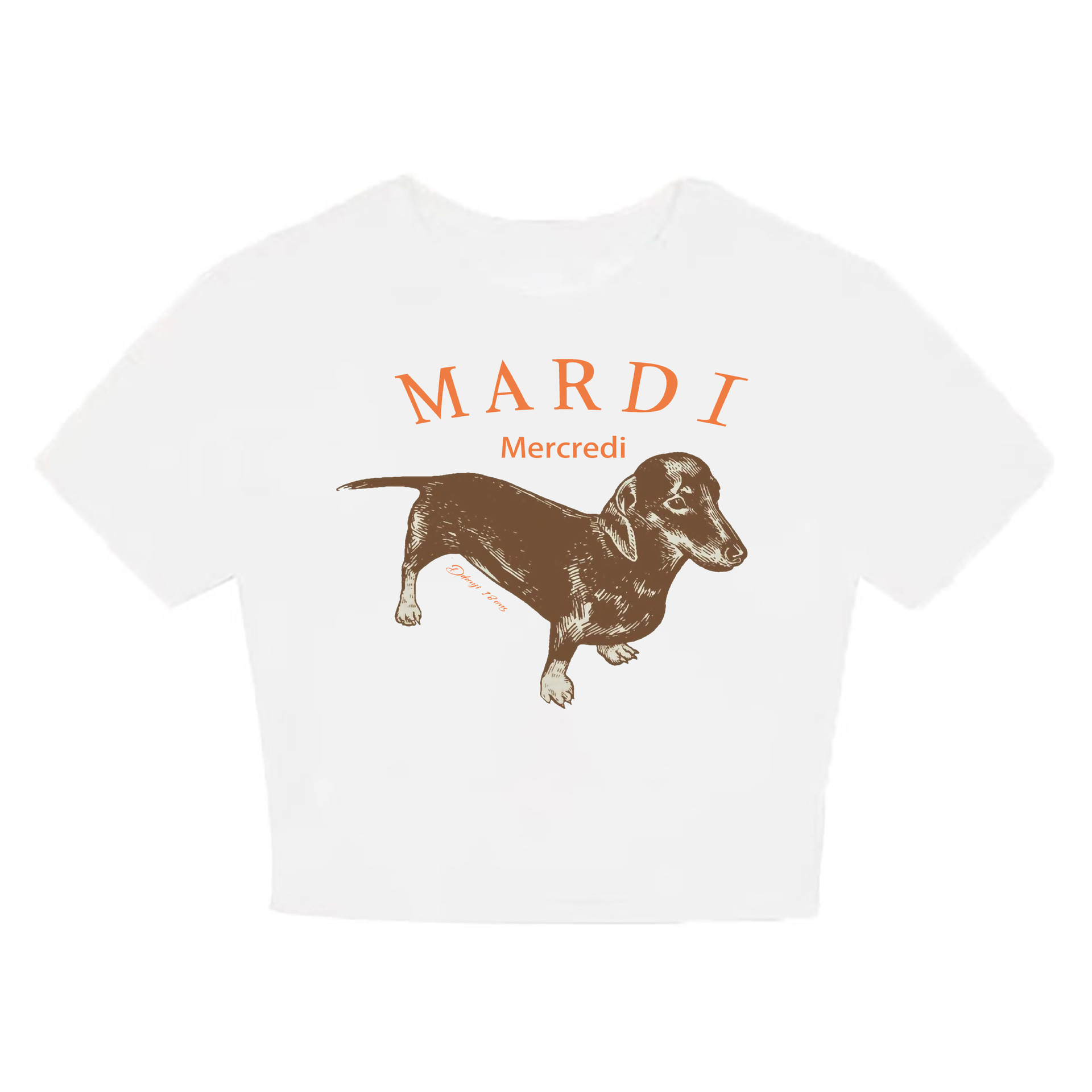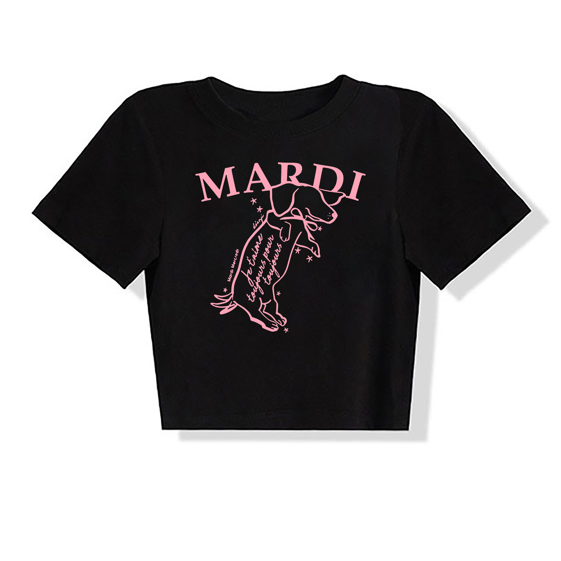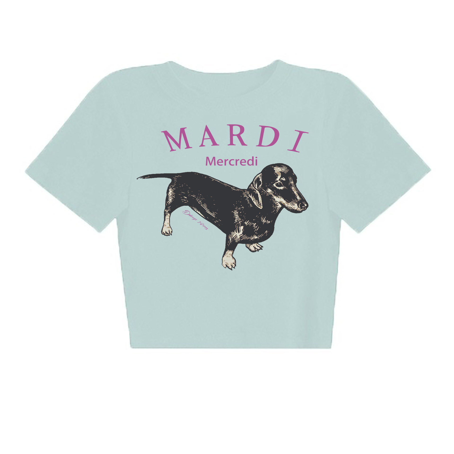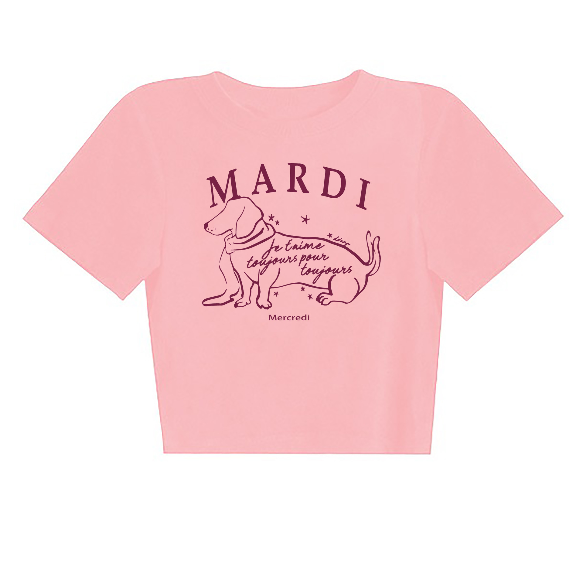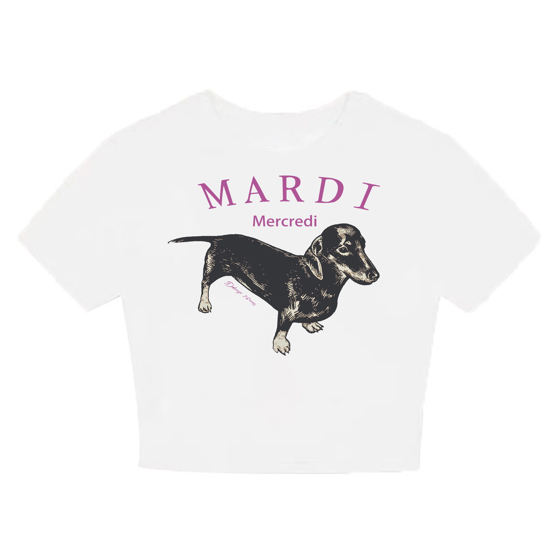 한국식 스파이스 걸 패션 브랜드 마디 반팔 티셔츠 여성용 리틀 데이지 닥스 훈트 개 타이트 쇼트 코트 티셔츠 여성용 탑스토어 가기