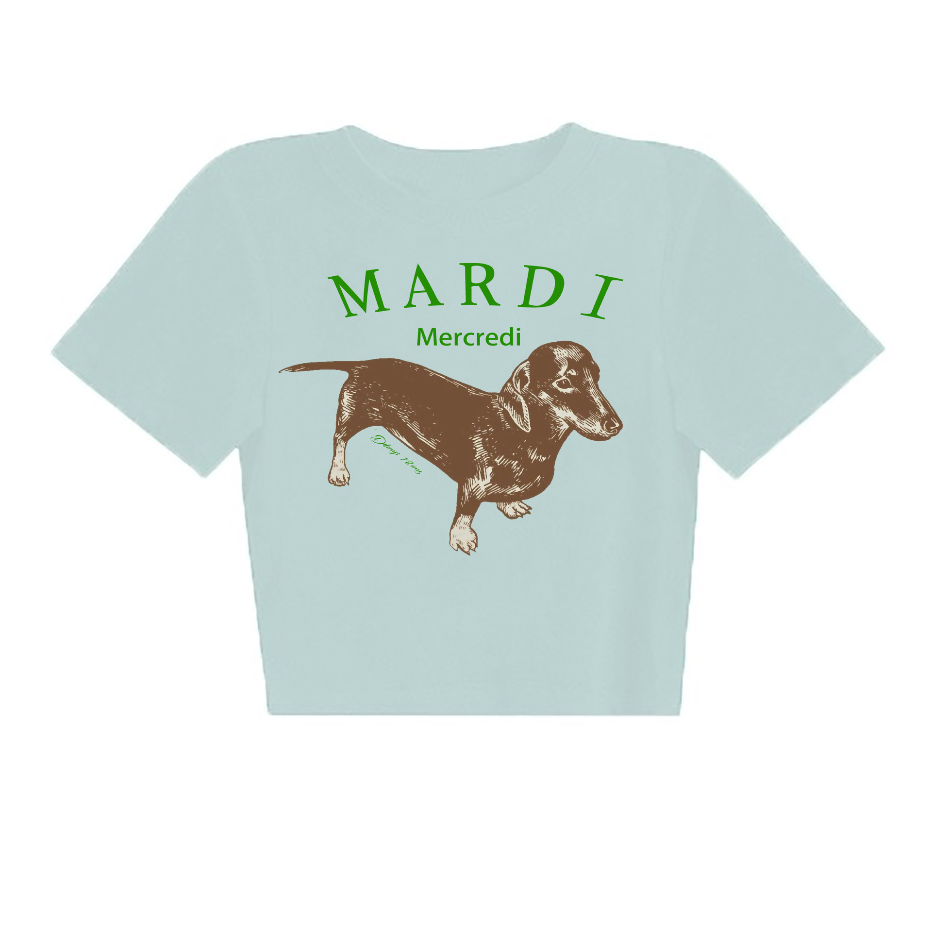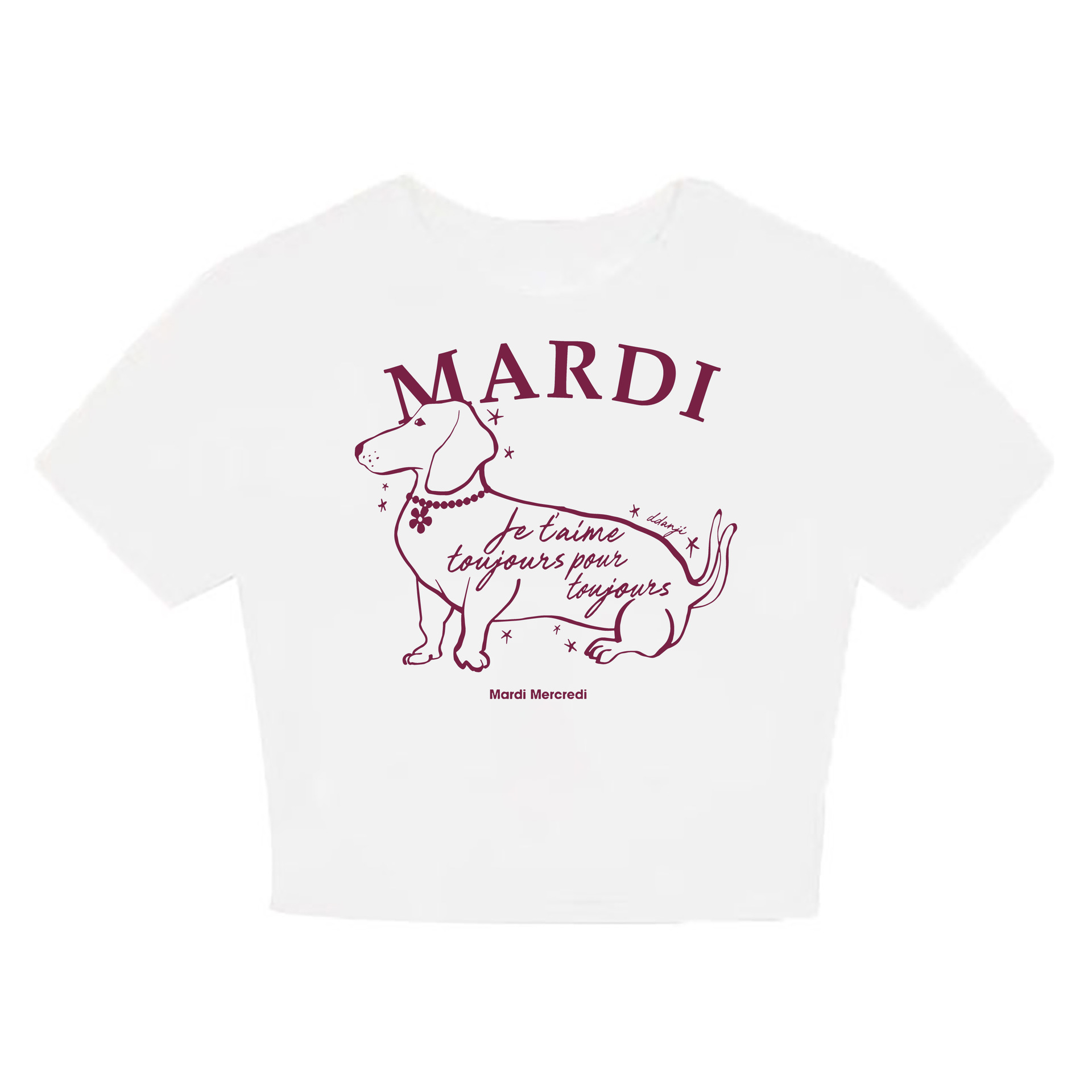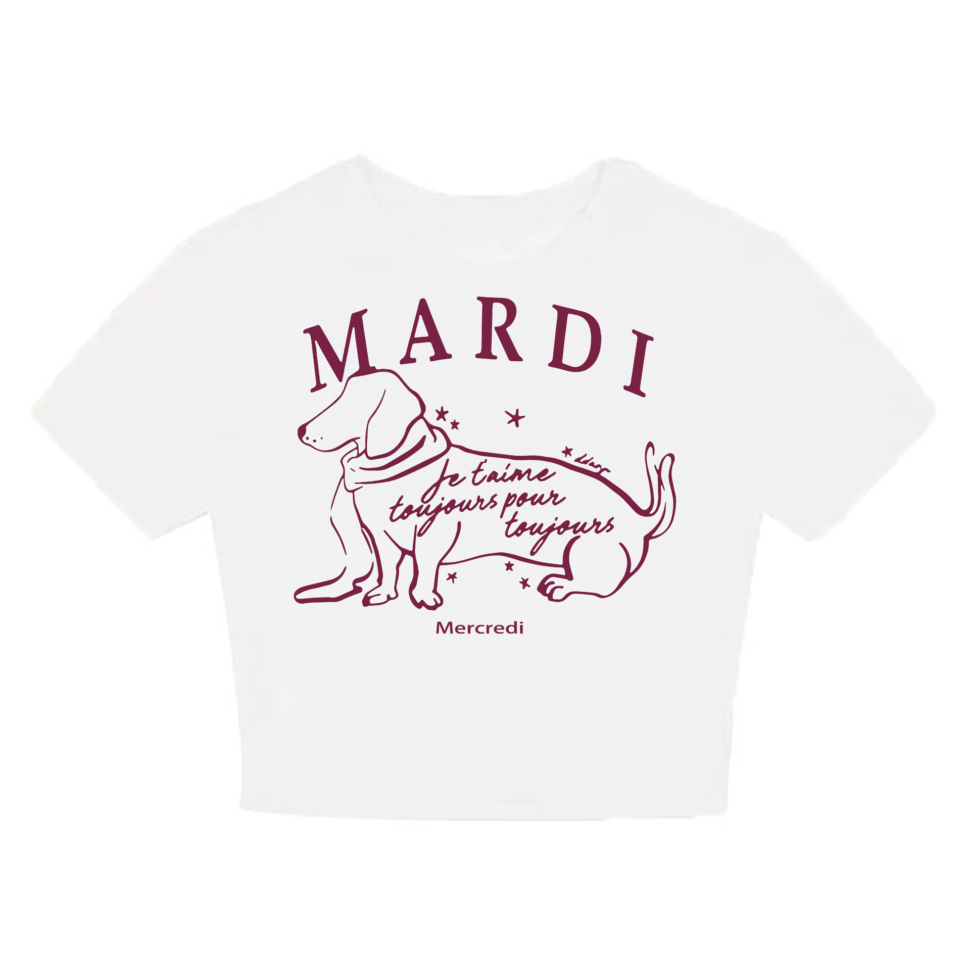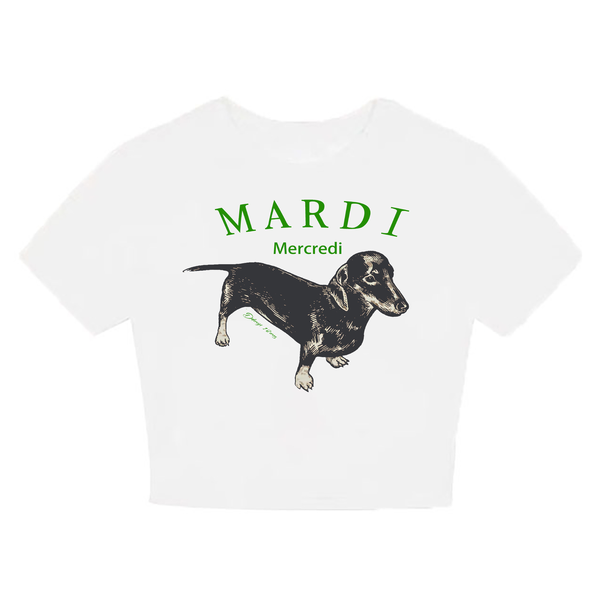 한국식 스파이스 걸 패션 브랜드 마디 반팔 티셔츠 여성용 리틀 데이지 닥스 훈트 개 타이트 쇼트 코트 티셔츠 여성용 탑스토어 가기