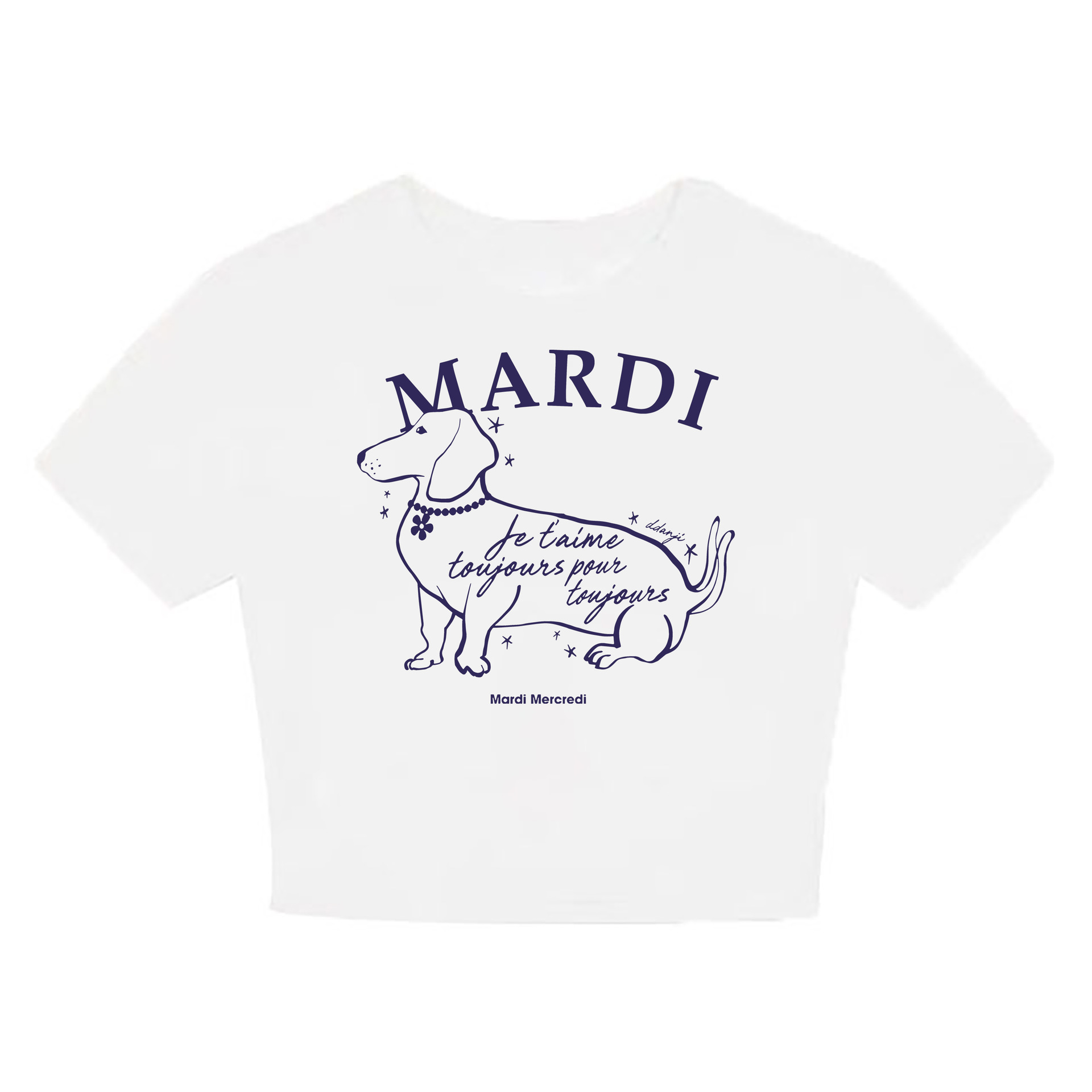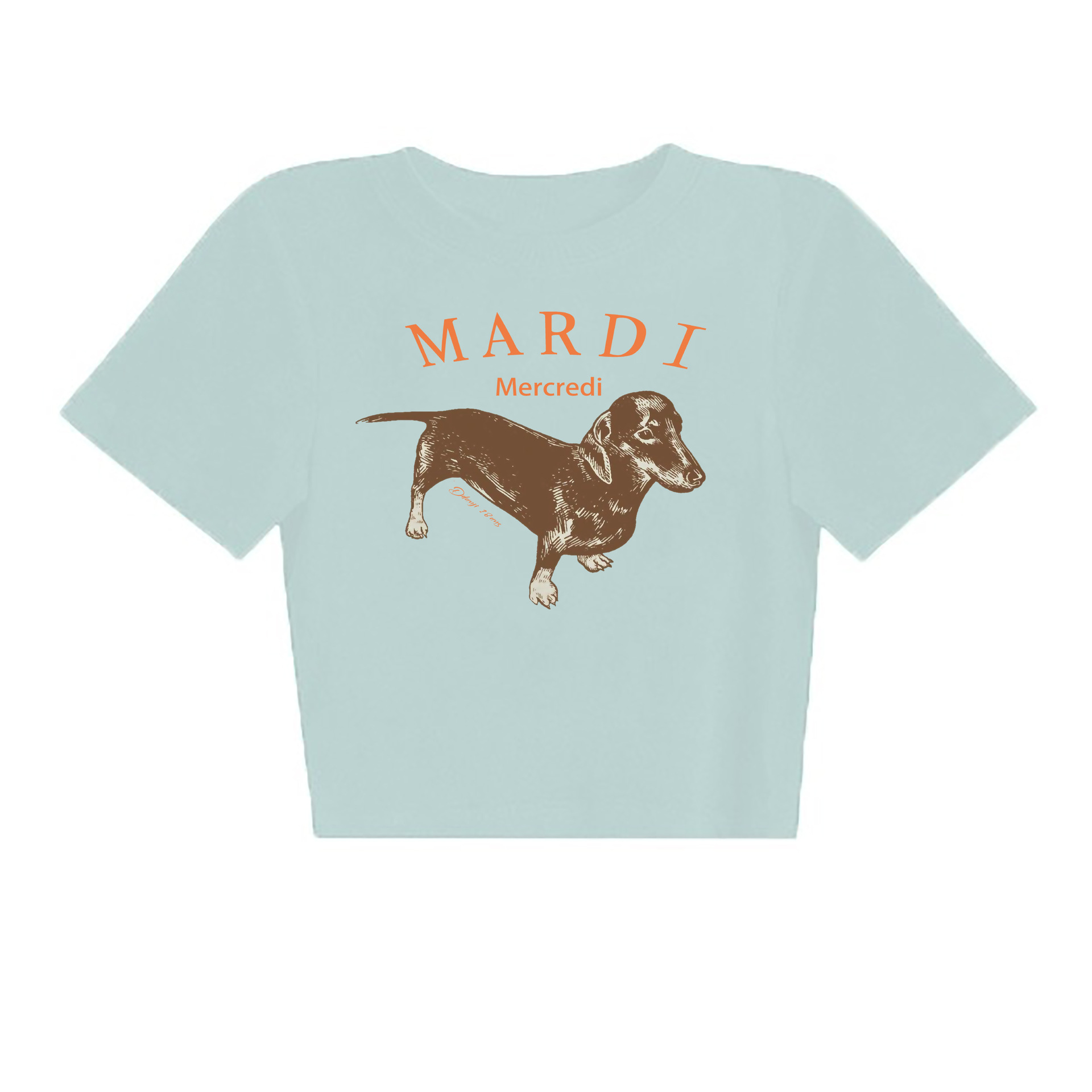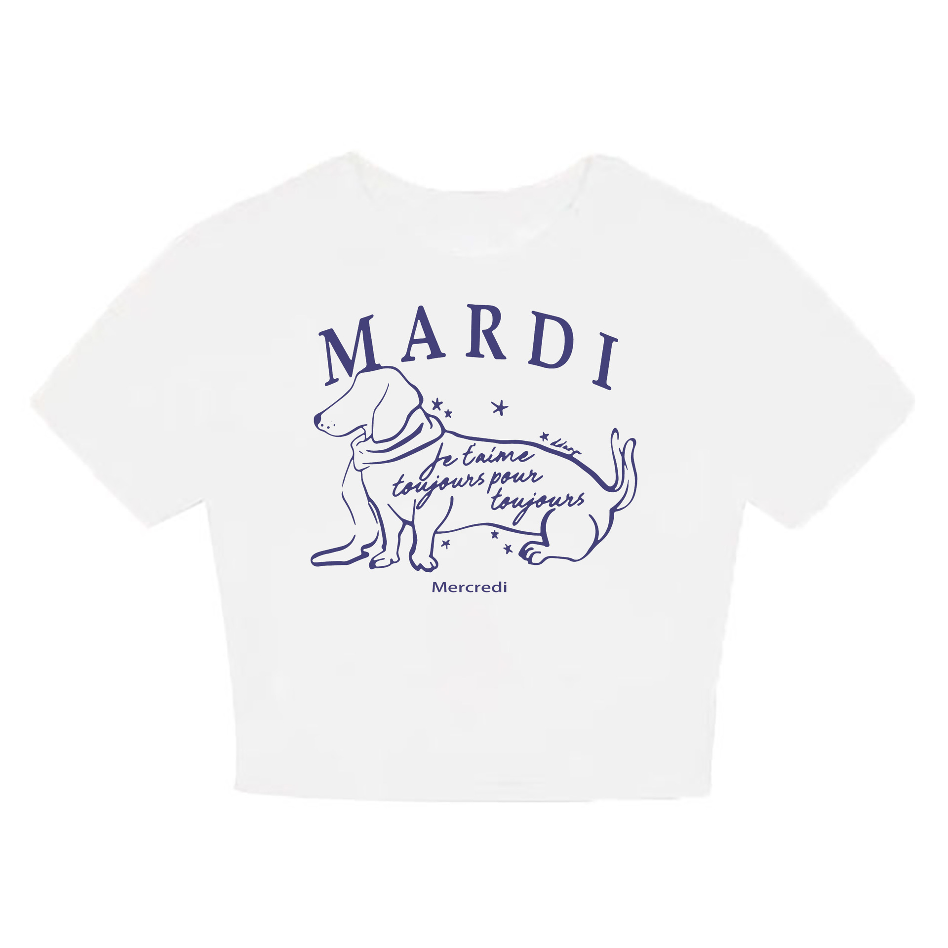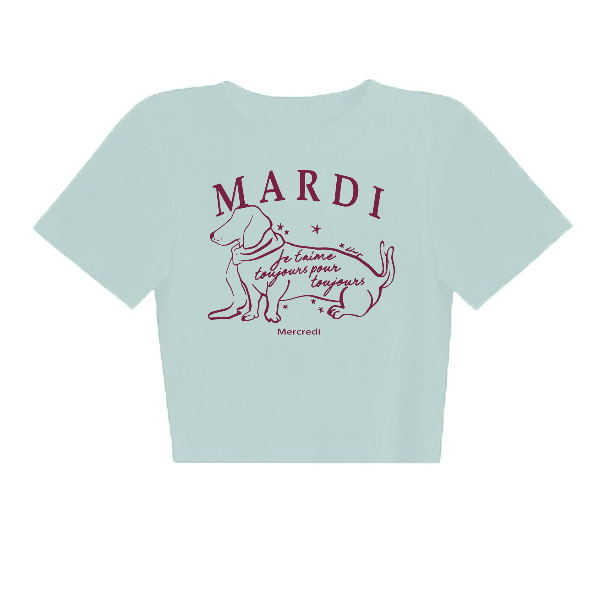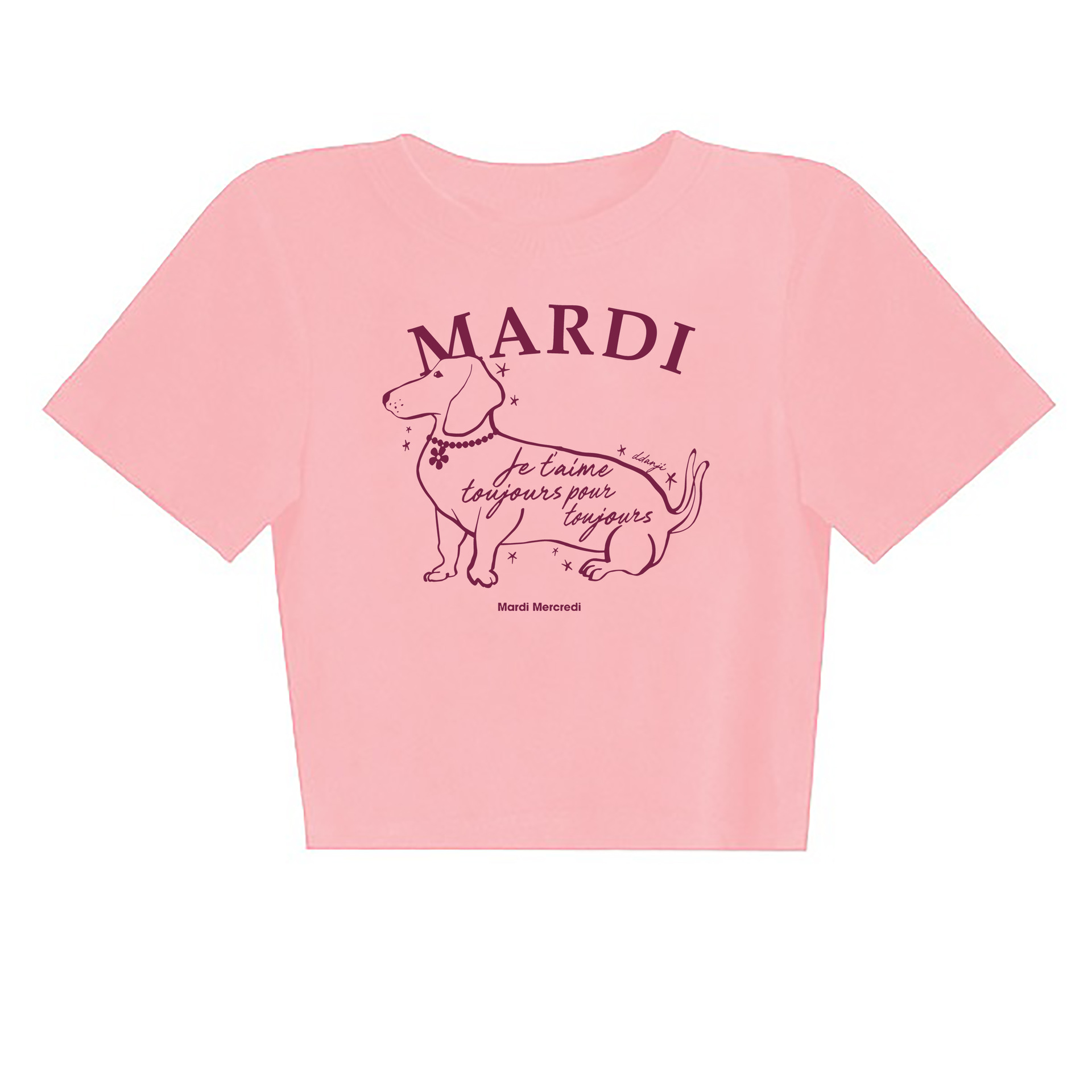 한국식 스파이스 걸 패션 브랜드 마디 반팔 티셔츠 여성용 리틀 데이지 닥스 훈트 개 타이트 쇼트 코트 티셔츠 여성용 탑스토어 가기