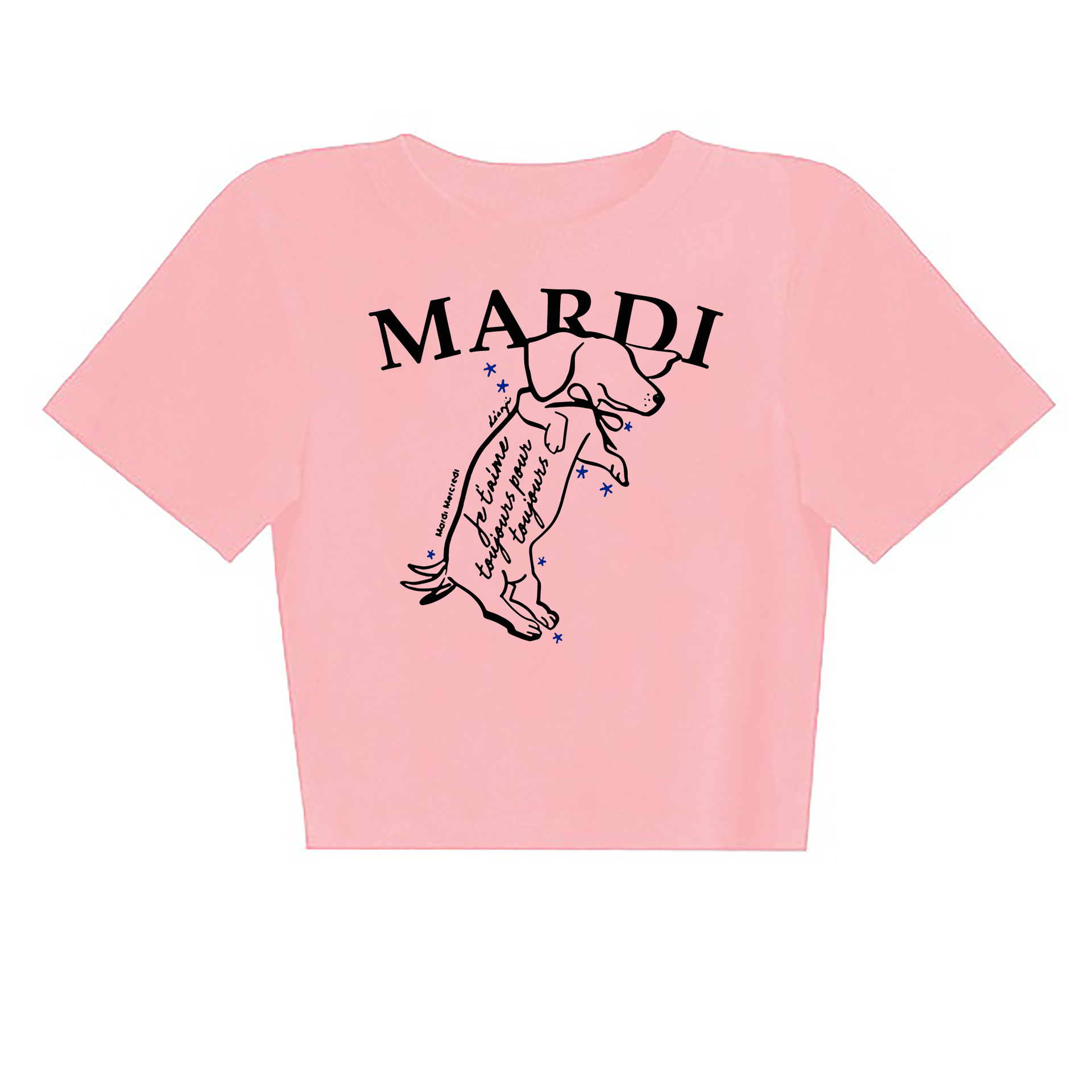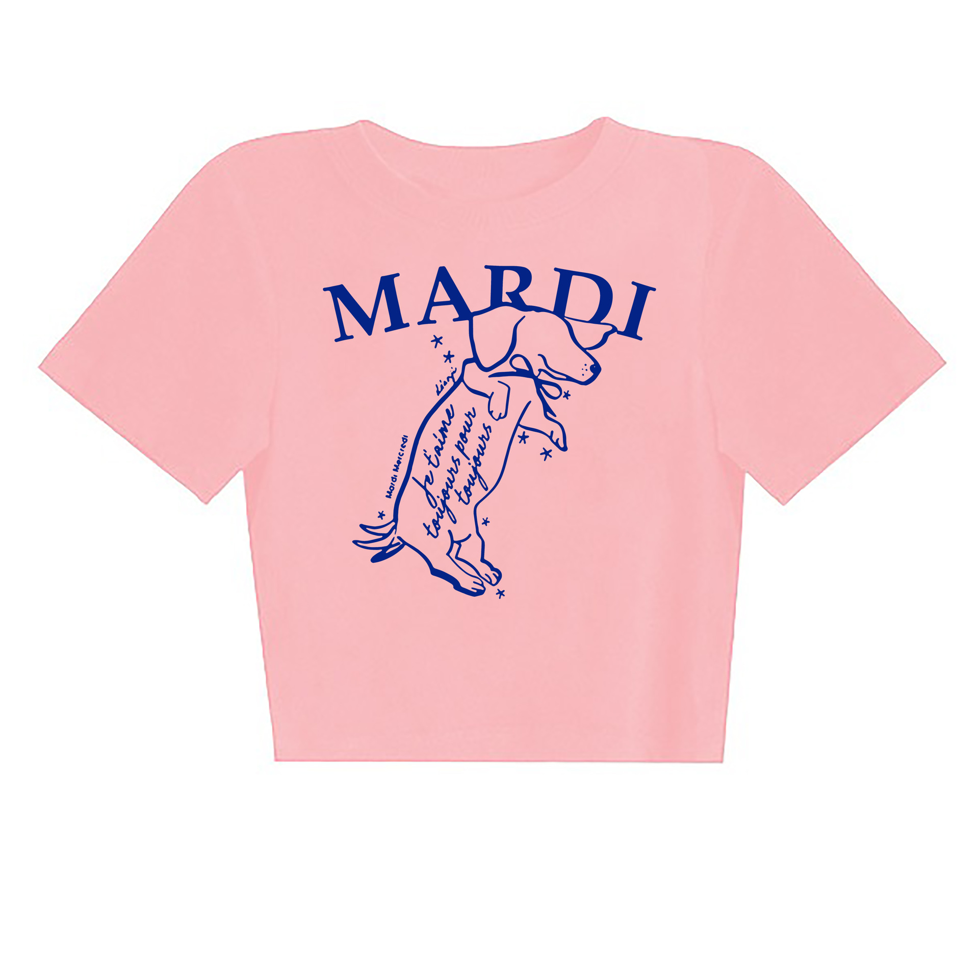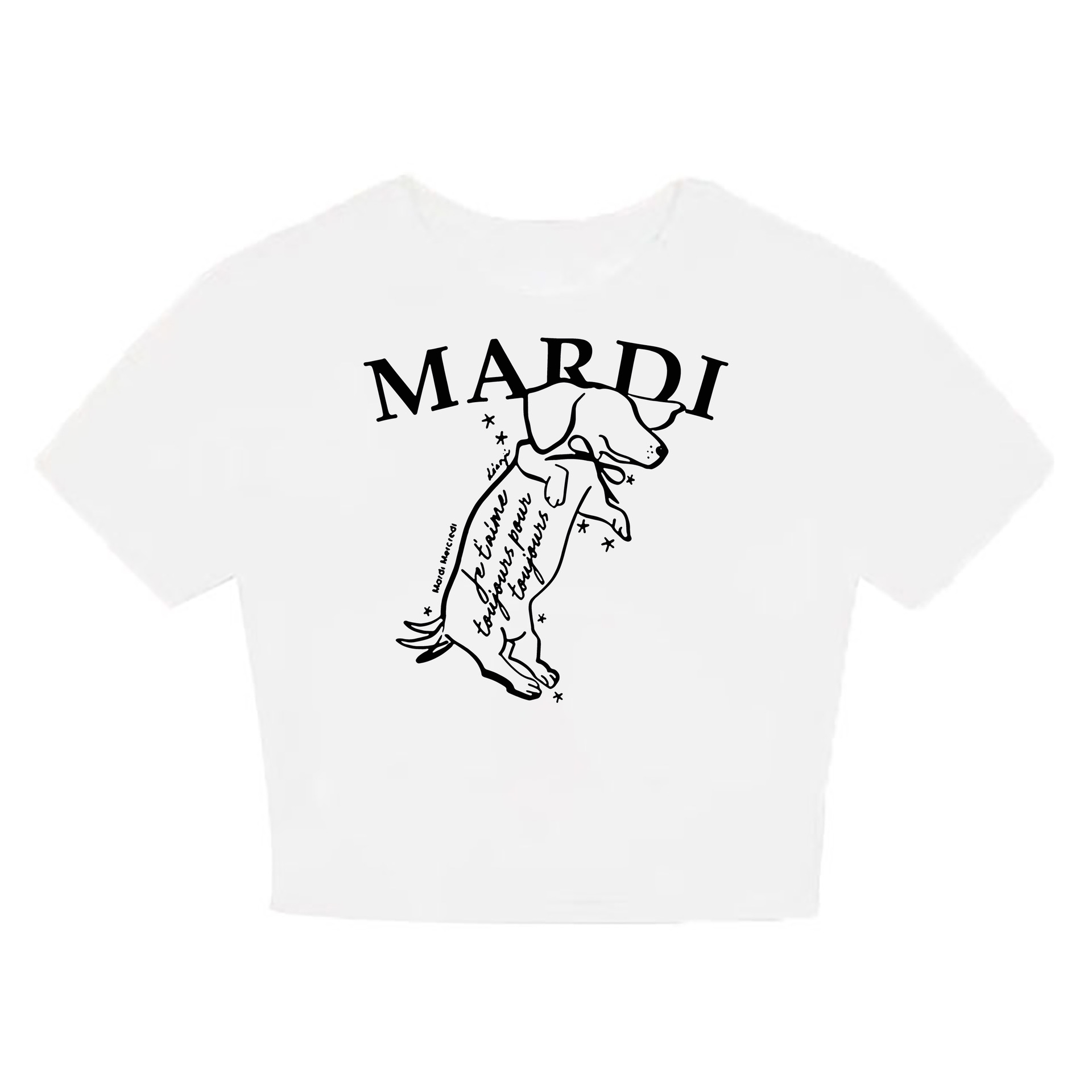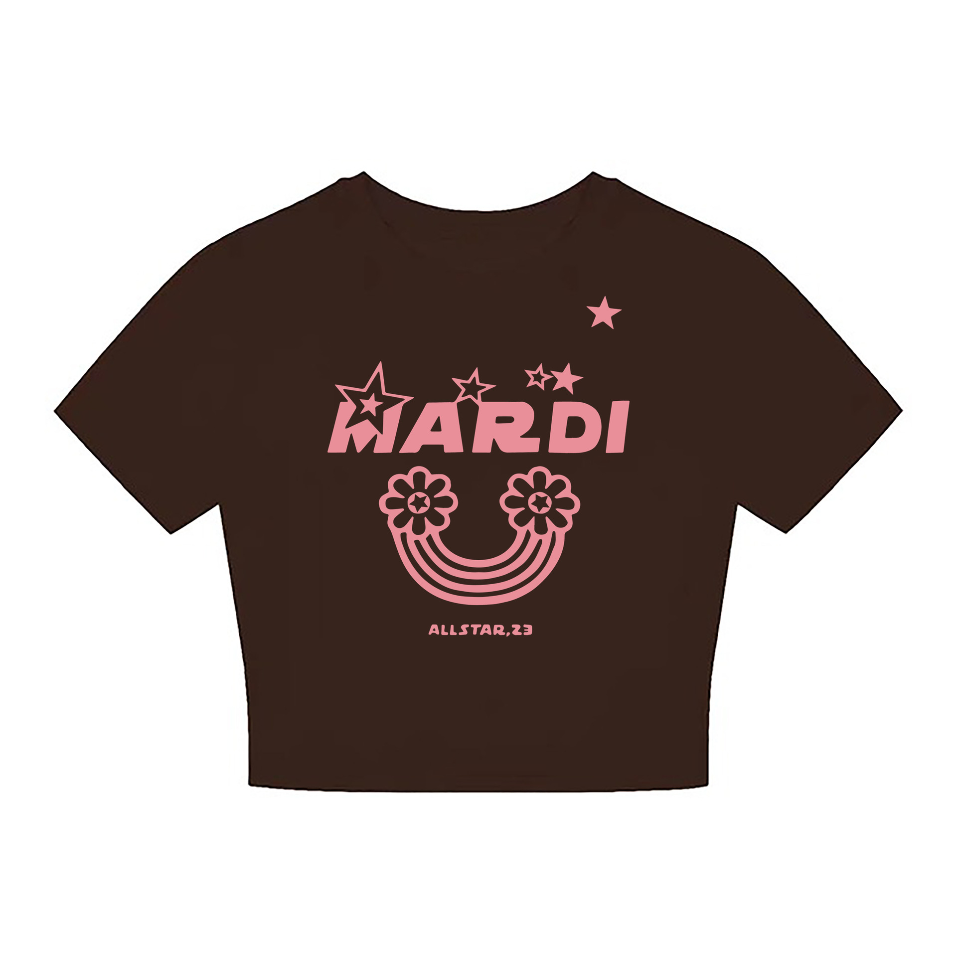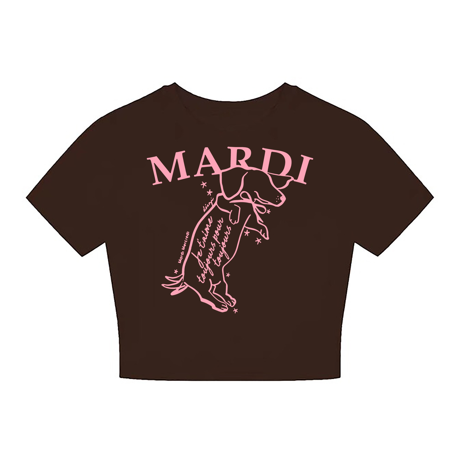 한국식 스파이스 걸 패션 브랜드 마디 반팔 티셔츠 여성용 리틀 데이지 닥스 훈트 개 타이트 쇼트 코트 티셔츠 여성용 탑스토어 가기