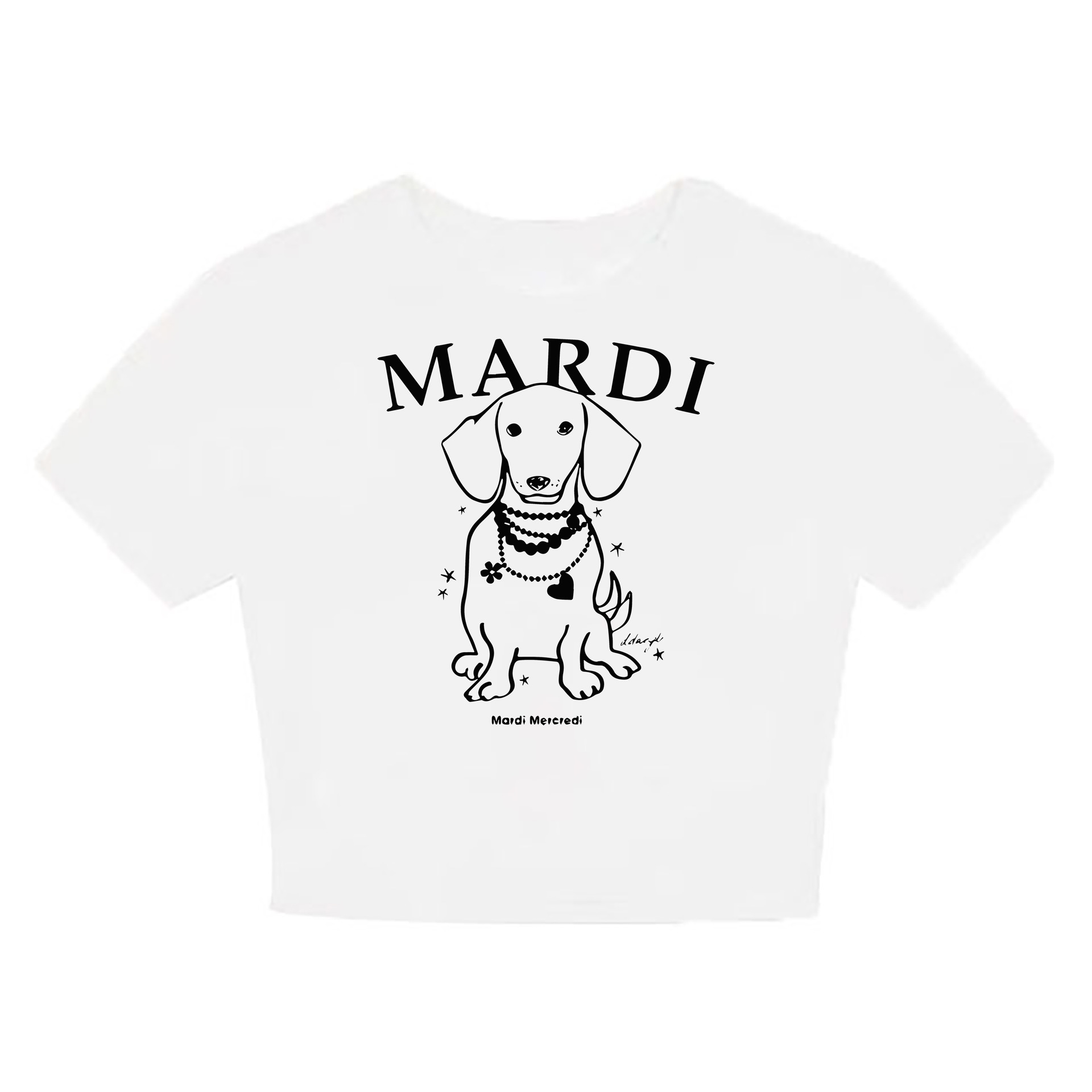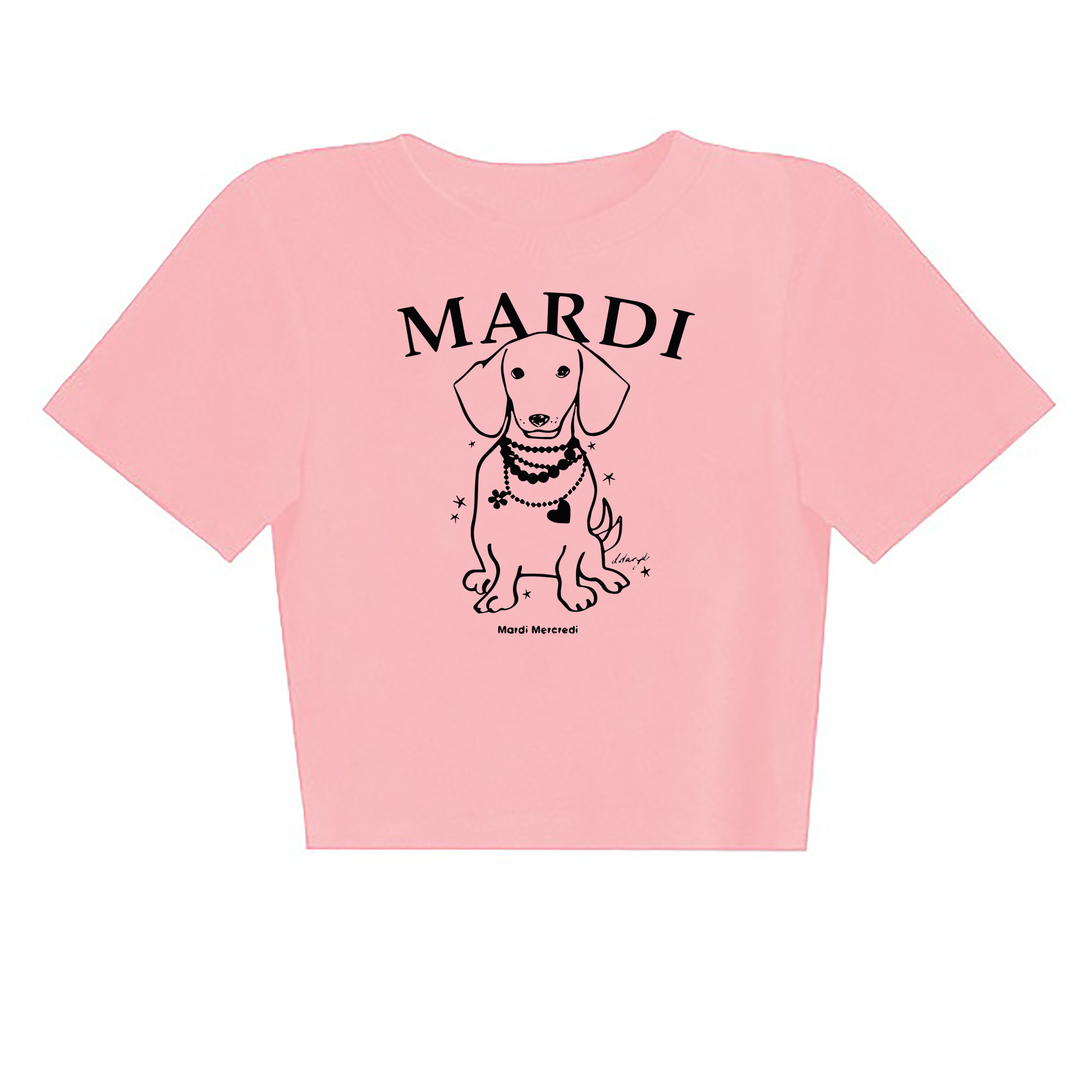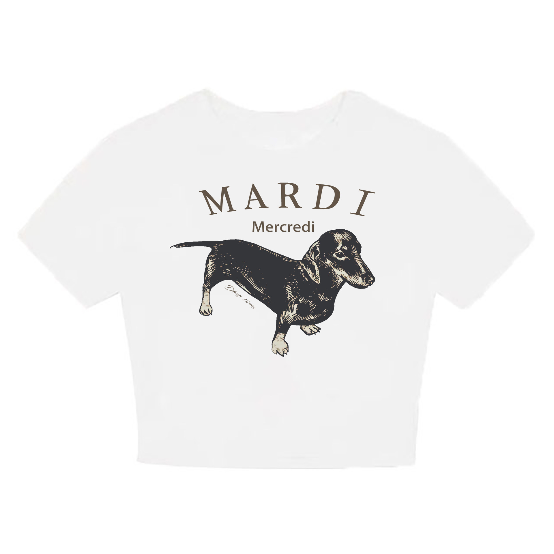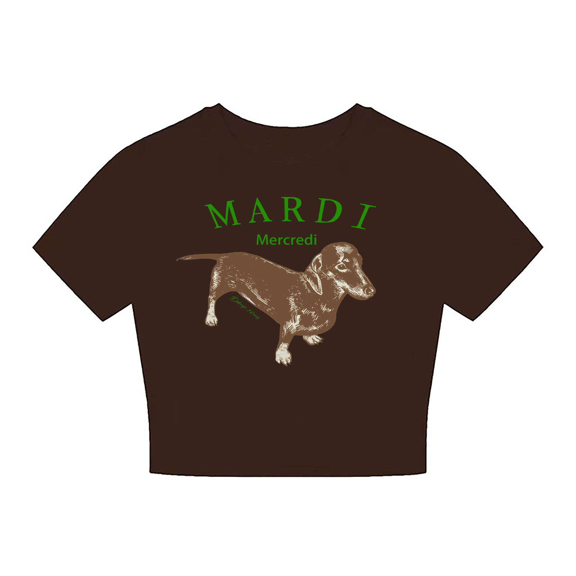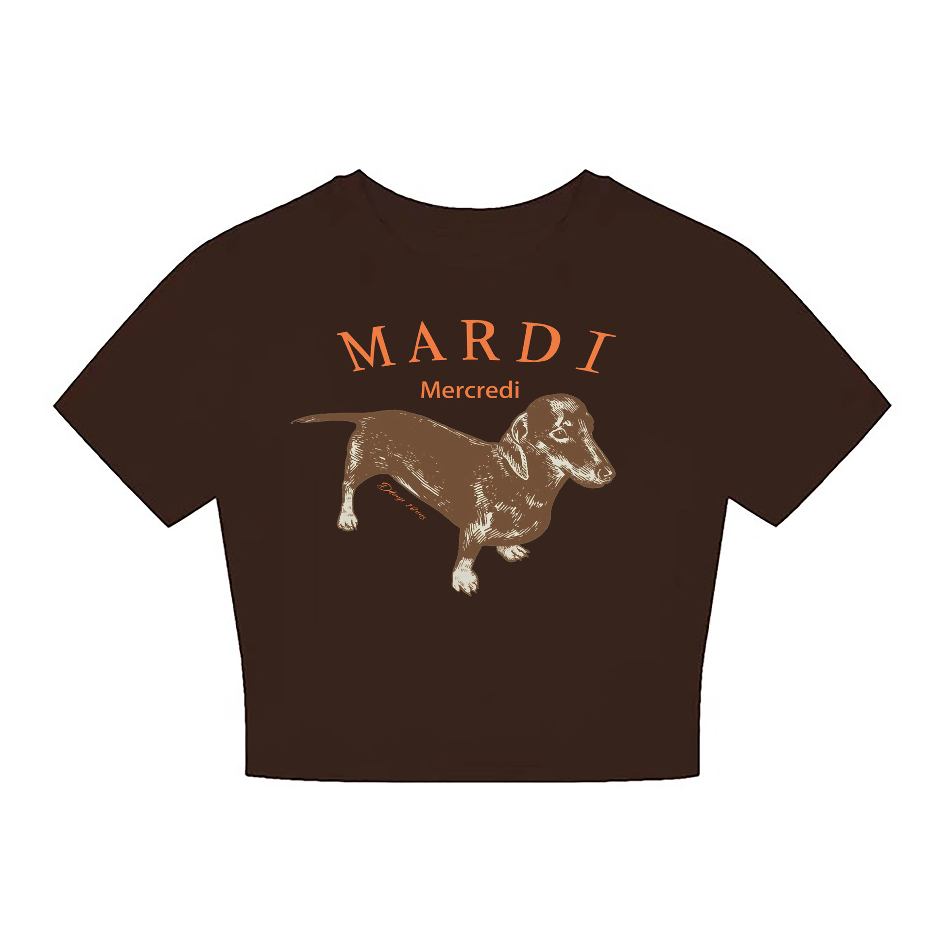 한국식 스파이스 걸 패션 브랜드 마디 반팔 티셔츠 여성용 리틀 데이지 닥스 훈트 개 타이트 쇼트 코트 티셔츠 여성용 탑