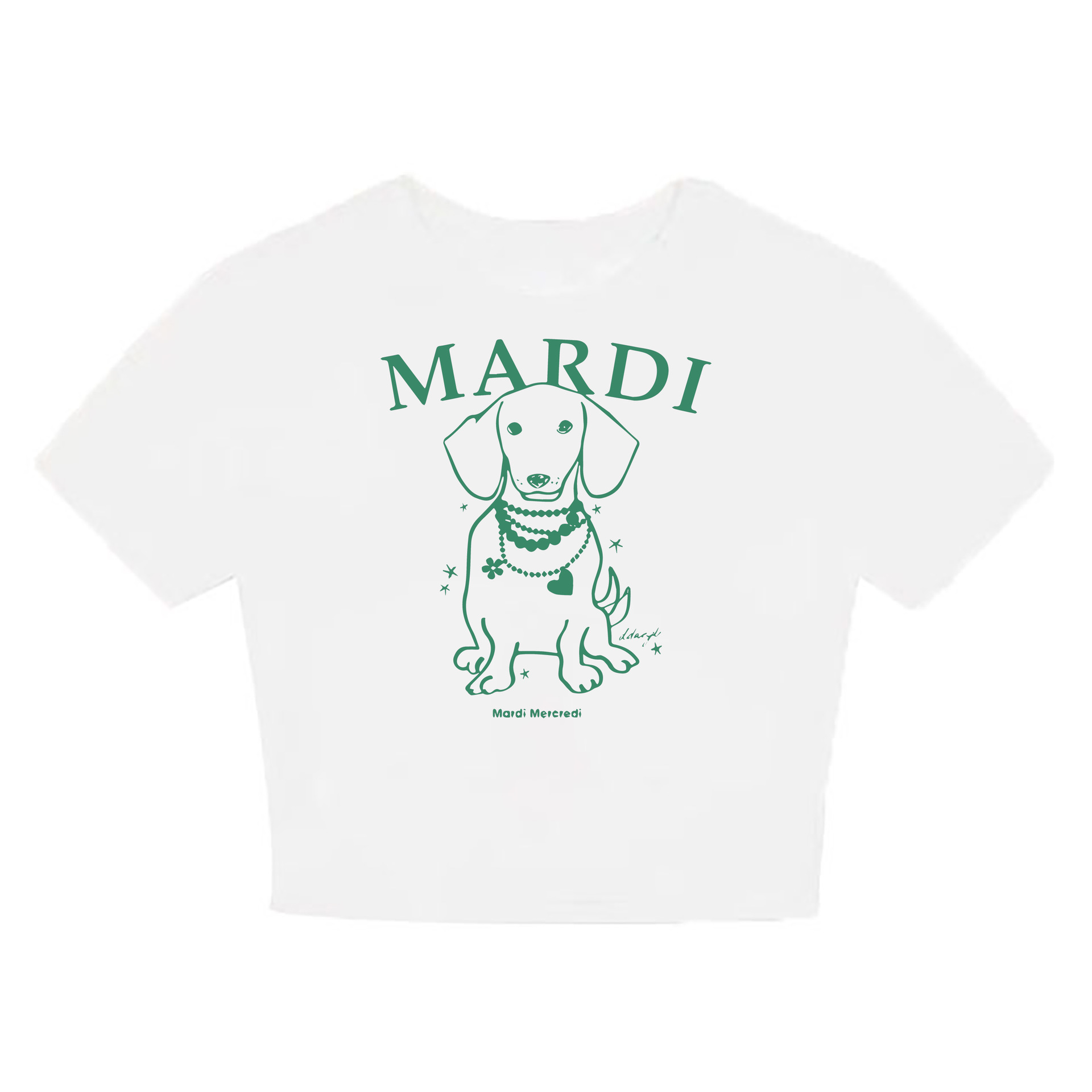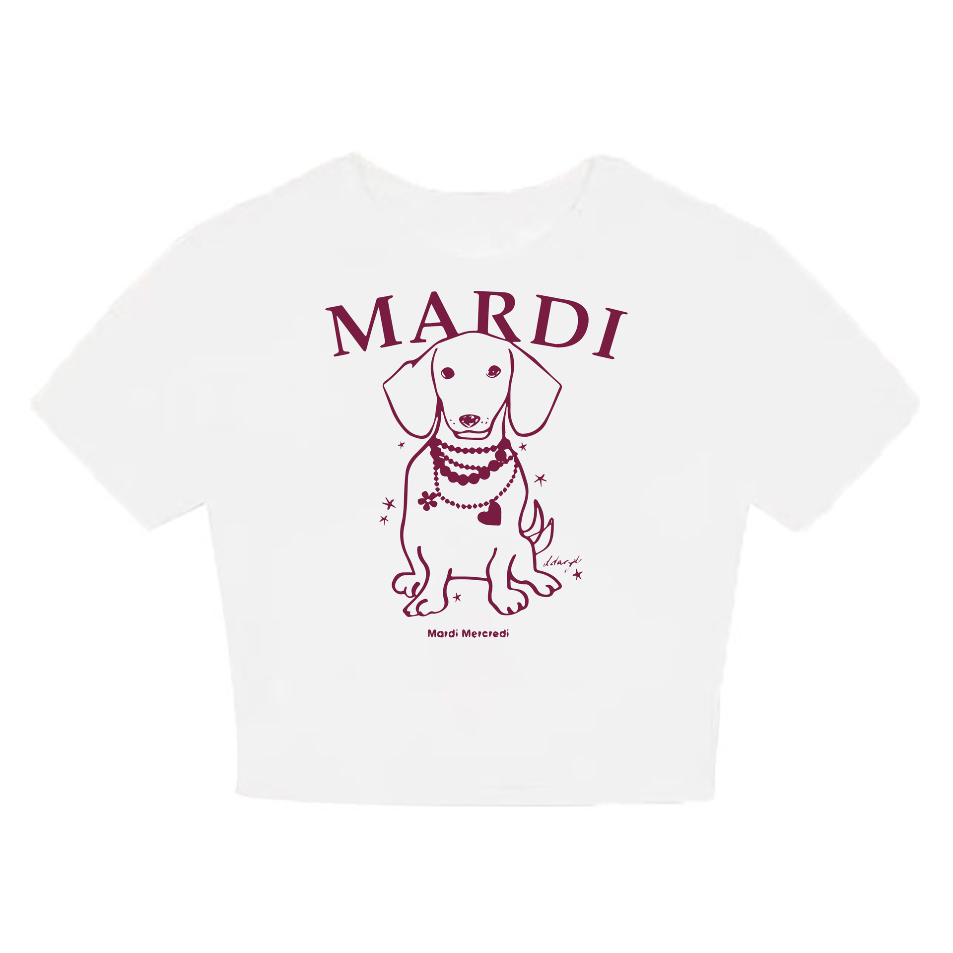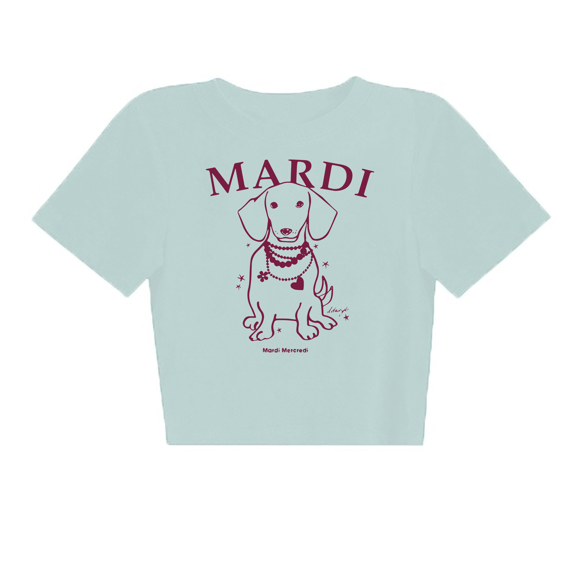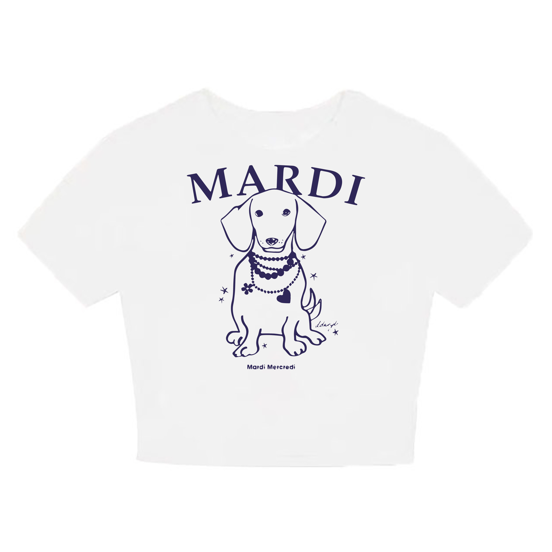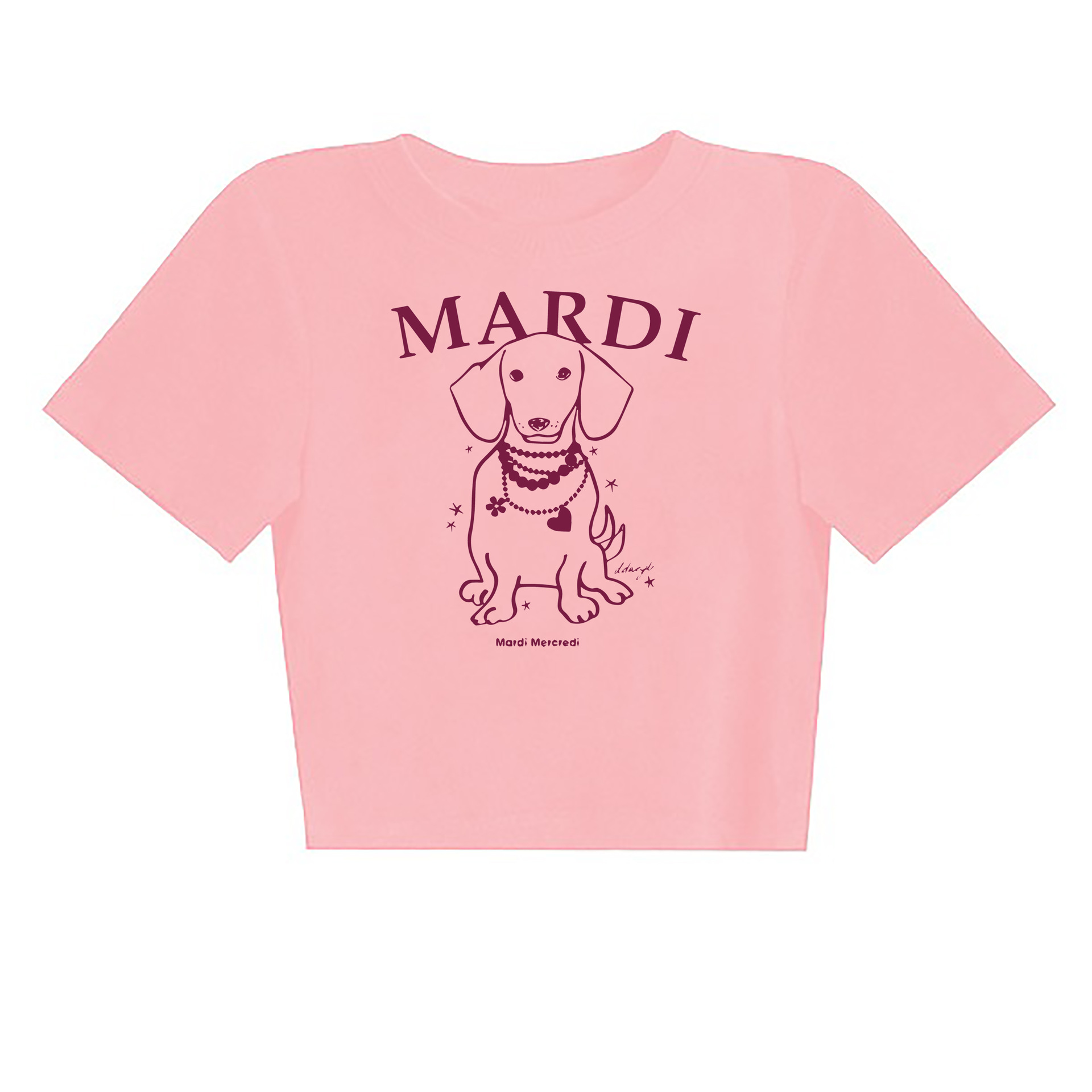 한국식 스파이스 걸 패션 브랜드 마디 반팔 티셔츠 여성용 리틀 데이지 닥스 훈트 개 타이트 쇼트 코트 티셔츠 여성용 탑