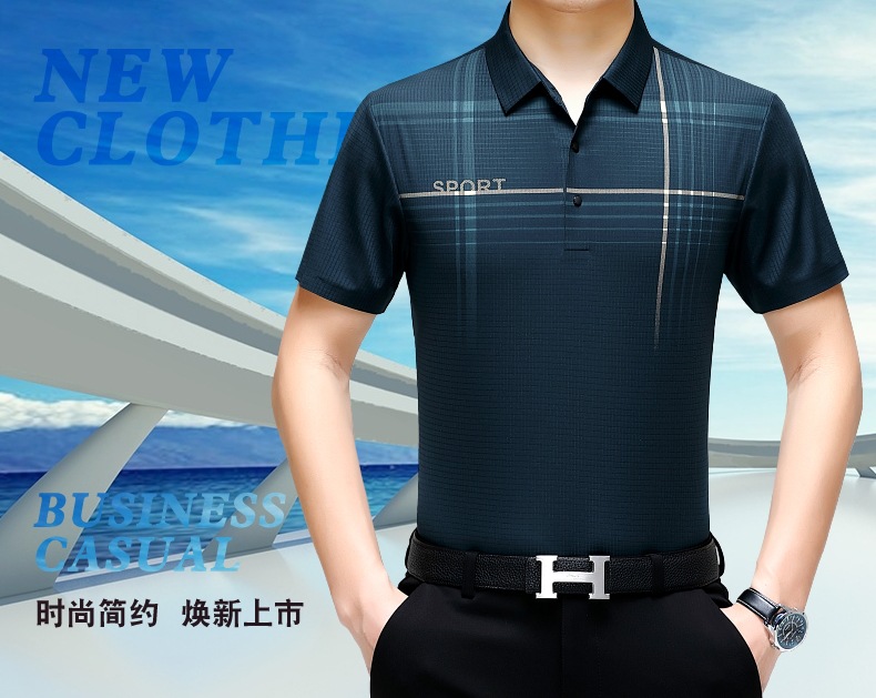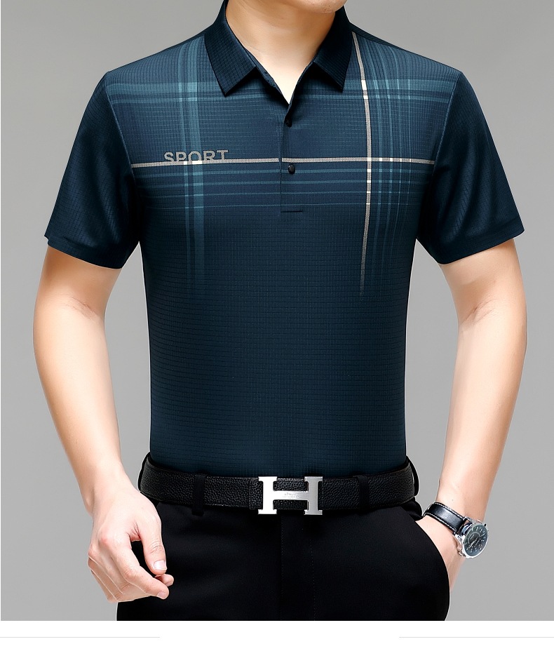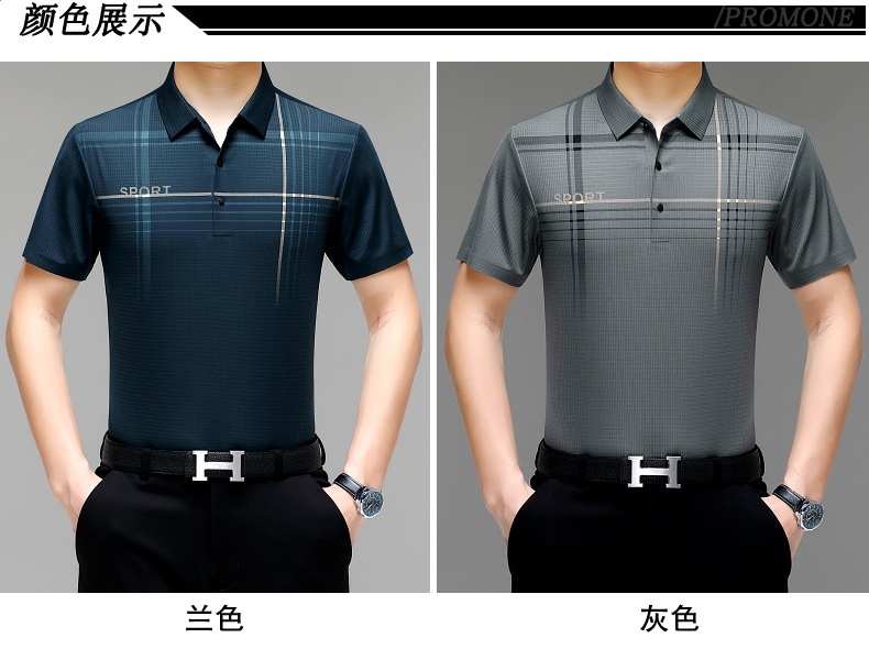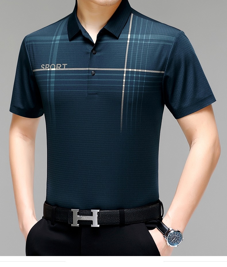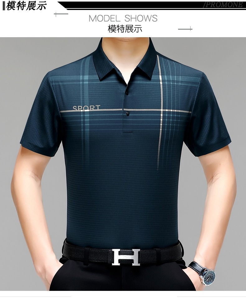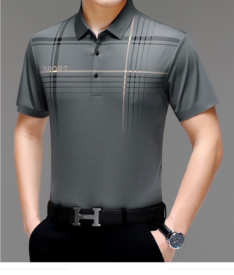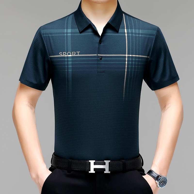 카운터 고급 중년 및 노인 뽕나무 실크 여름 남성 티셔츠 반팔 최고 비즈니스 캐주얼 비철 폴로 셔츠스토어 가기