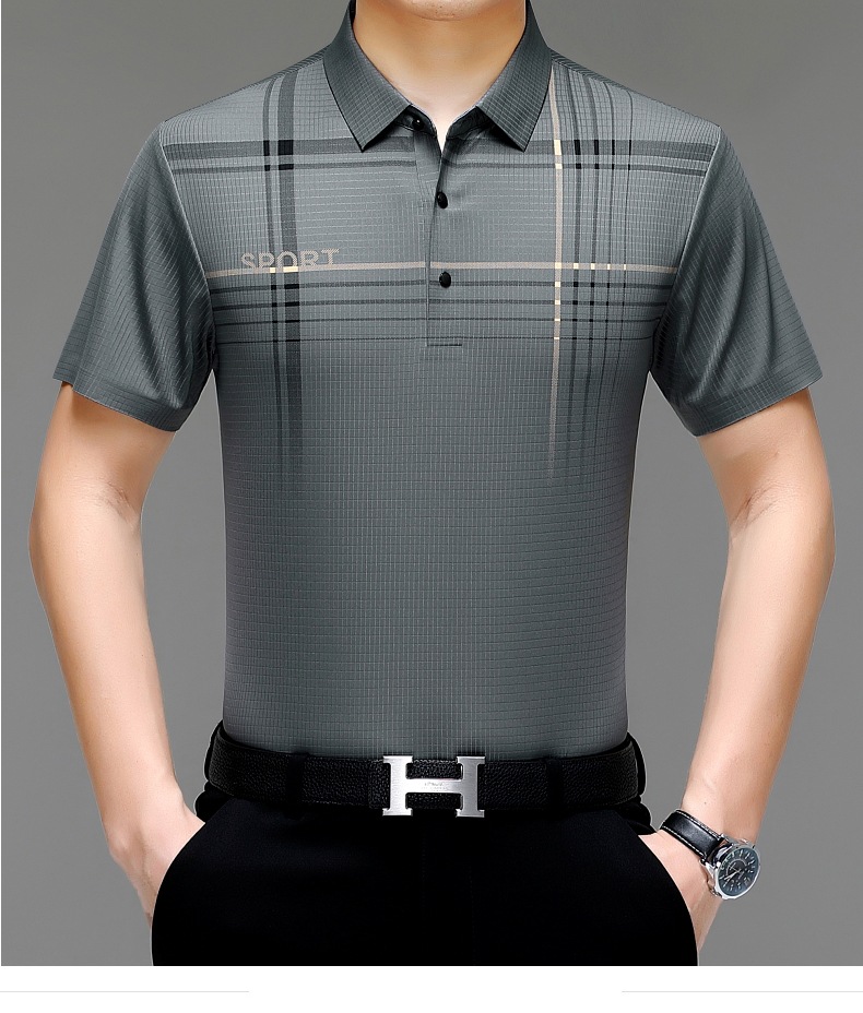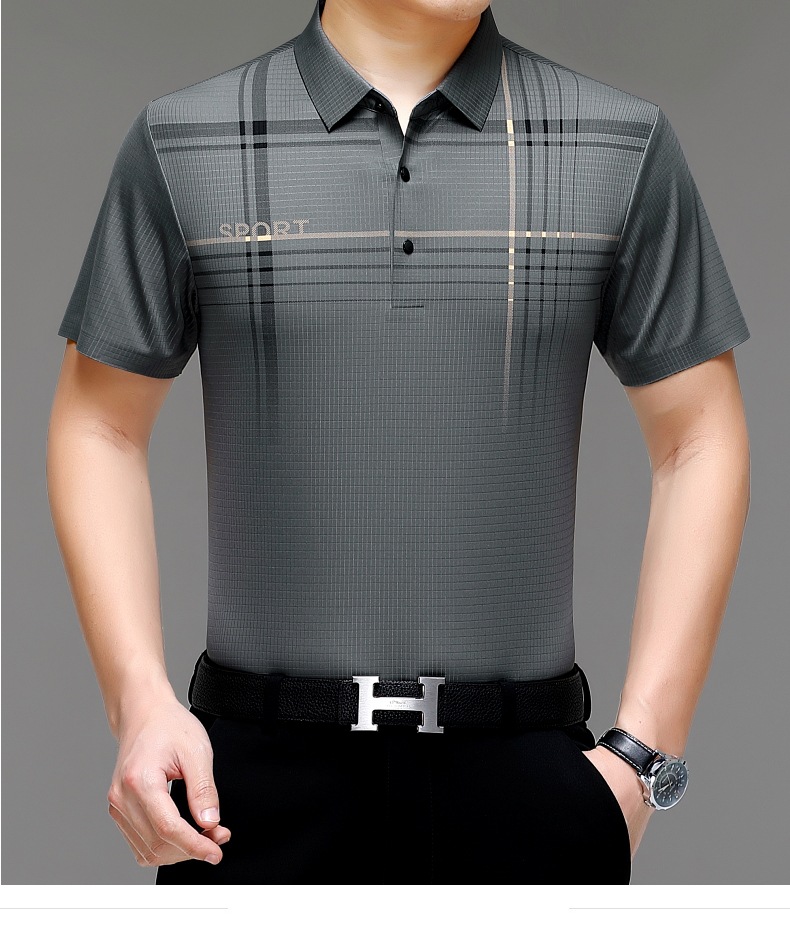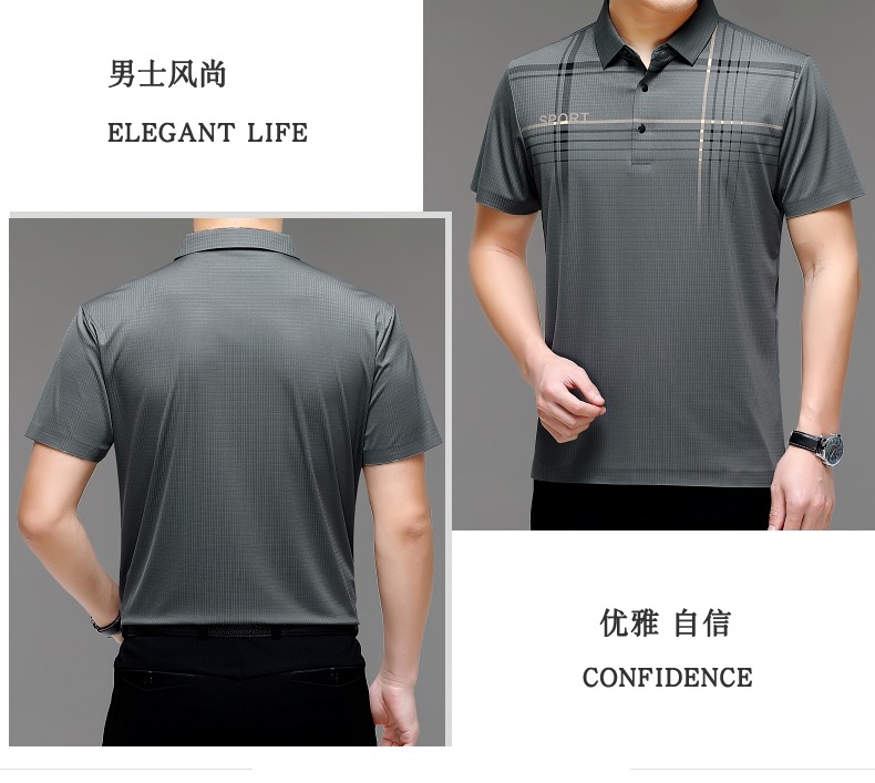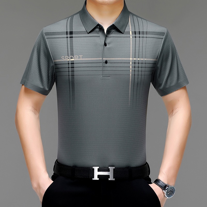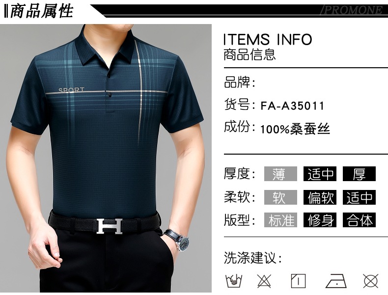카운터 고급 중년 및 노인 뽕나무 실크 여름 남성 티셔츠 반팔 최고 비즈니스 캐주얼 비철 폴로 셔츠
