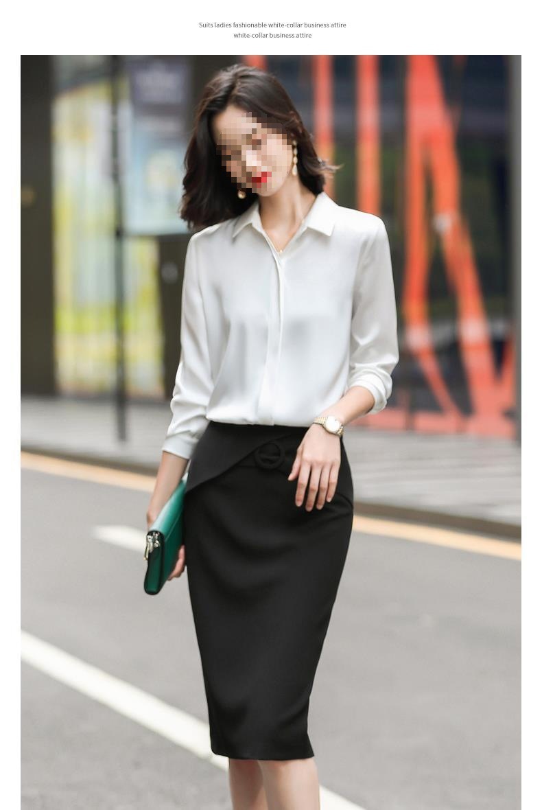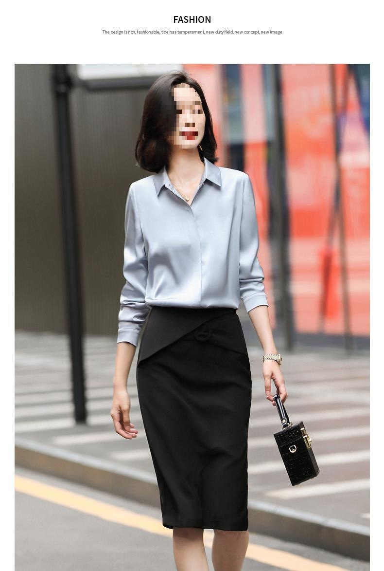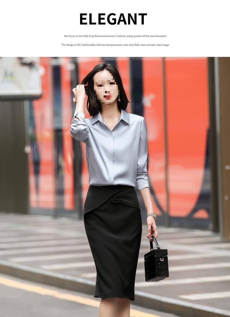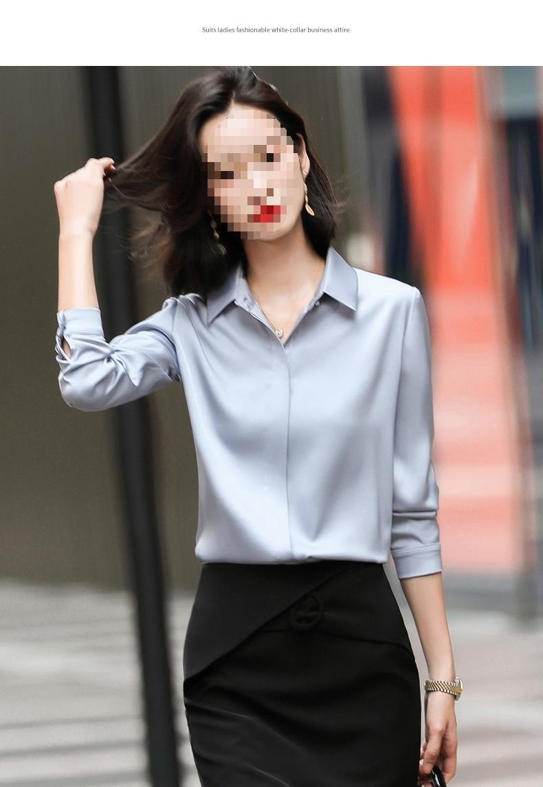 회색 긴 소매 쉬폰 셔츠 여성 전문 작업복 디자인 틈새 흰색 셔츠 여성용 새틴 가을 탑스토어 가기
