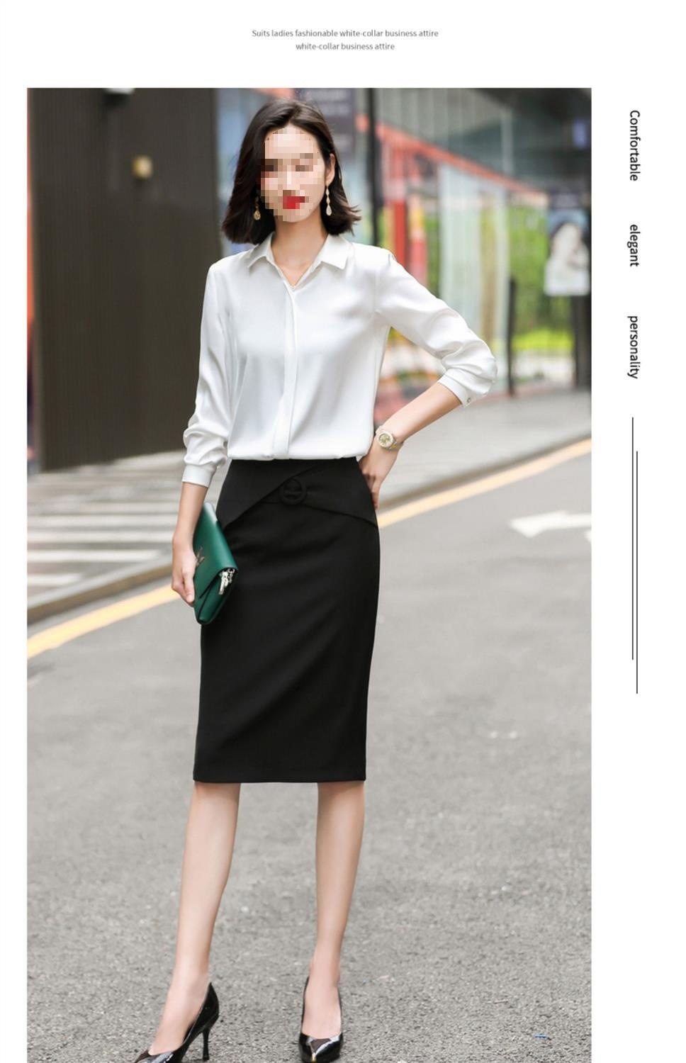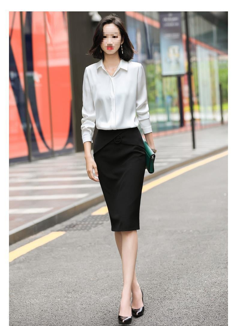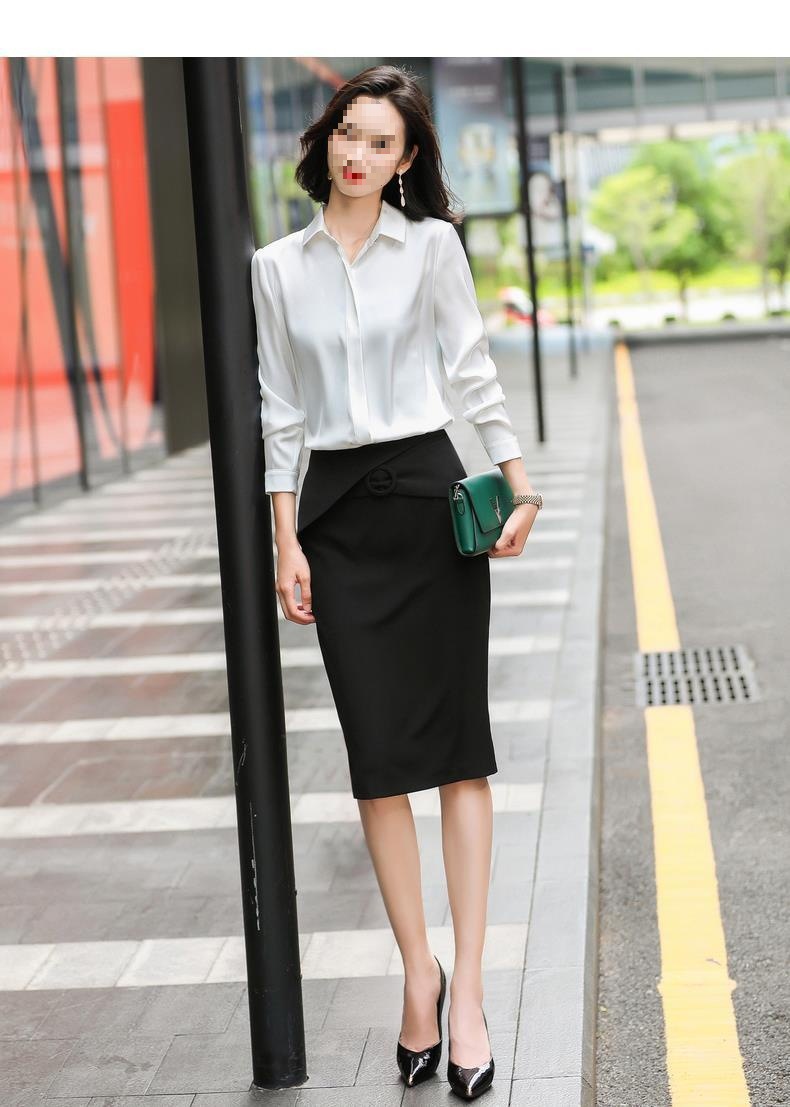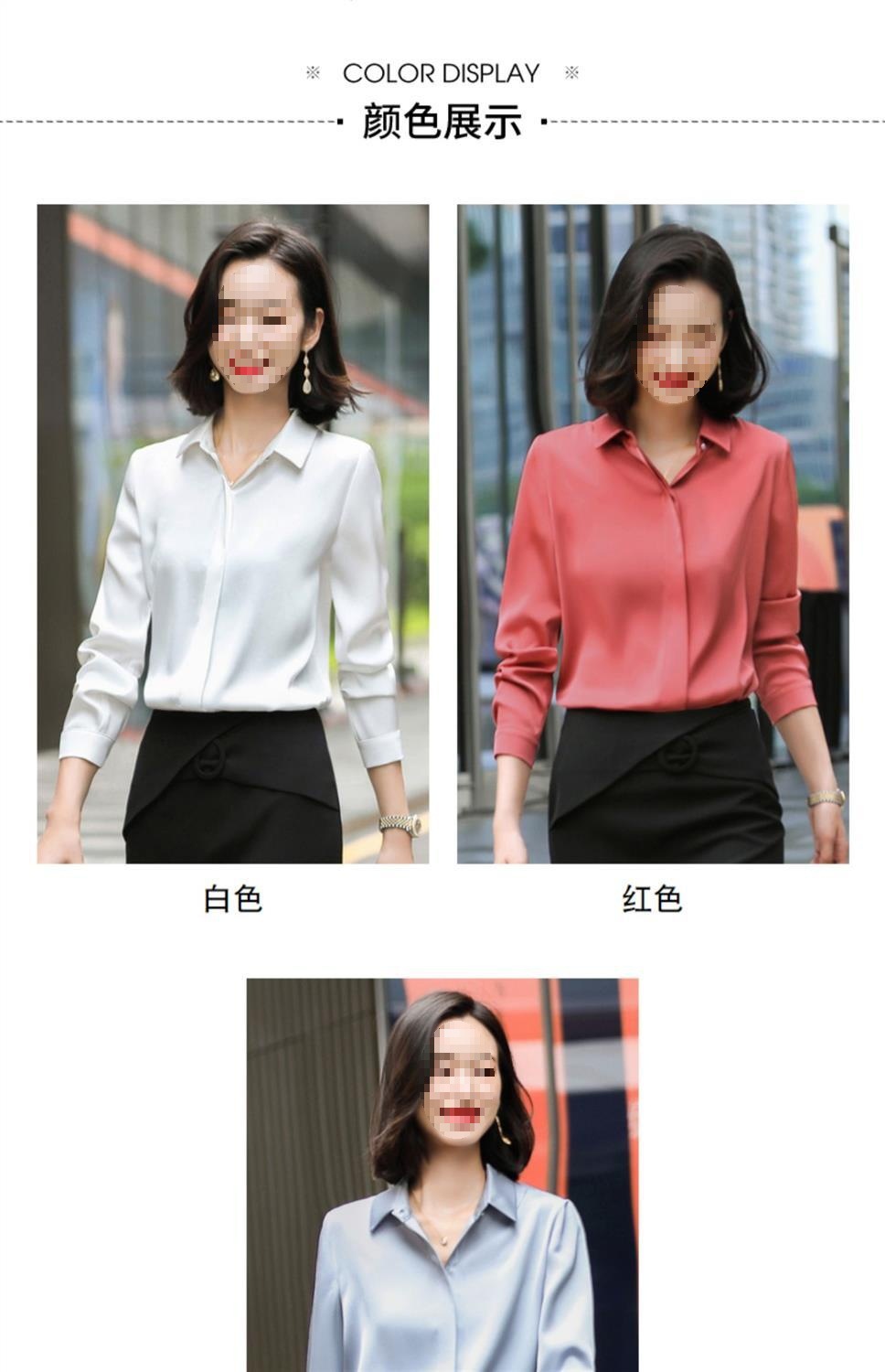 회색 긴 소매 쉬폰 셔츠 여성 전문 작업복 디자인 틈새 흰색 셔츠 여성용 새틴 가을 탑스토어 가기