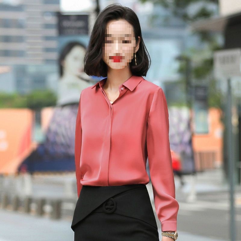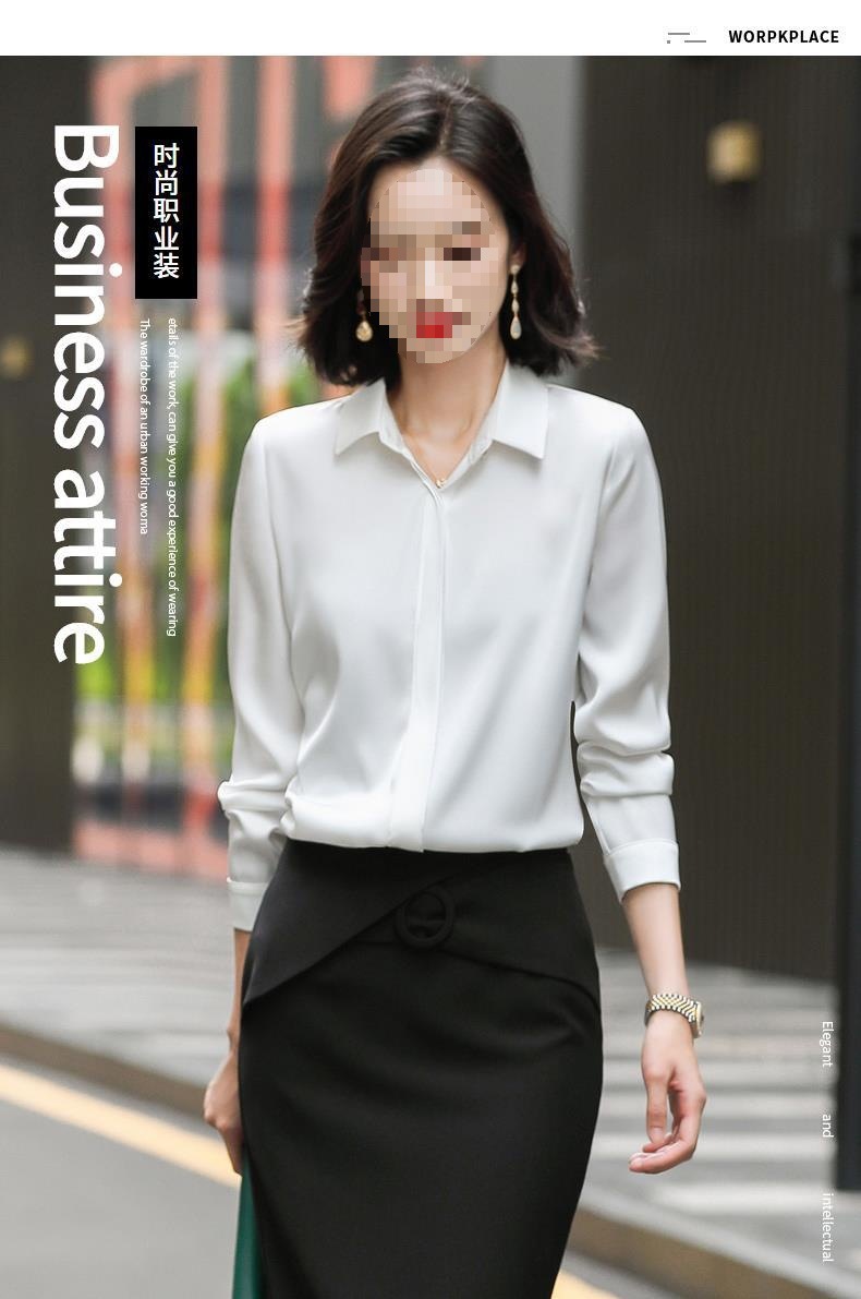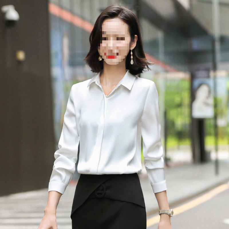 회색 긴 소매 쉬폰 셔츠 여성 전문 작업복 디자인 틈새 흰색 셔츠 여성용 새틴 가을 탑