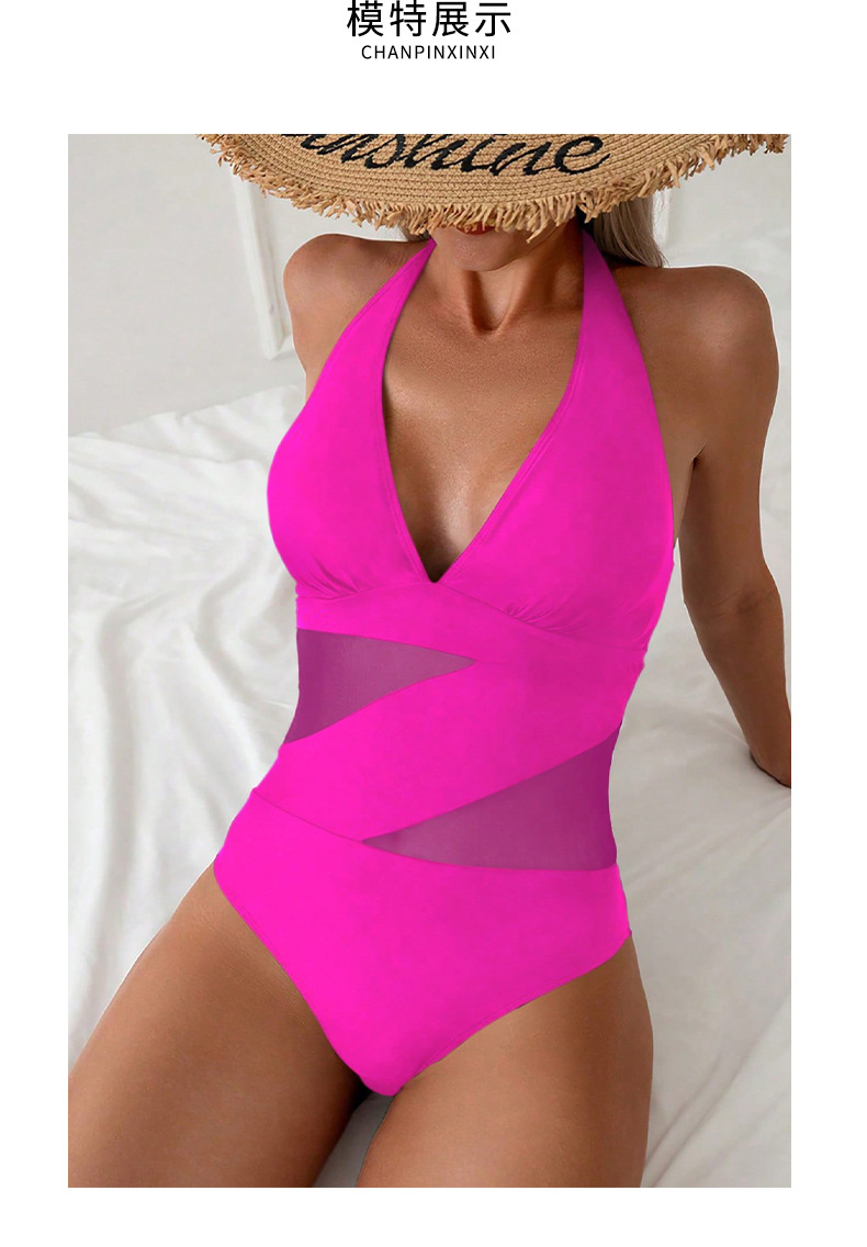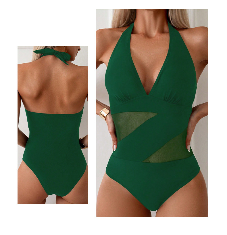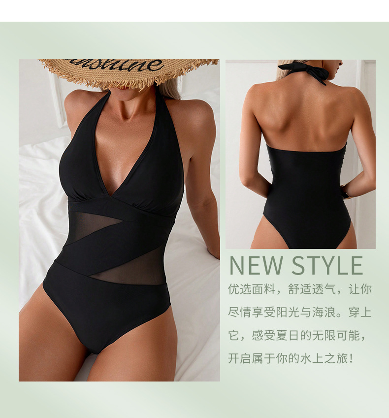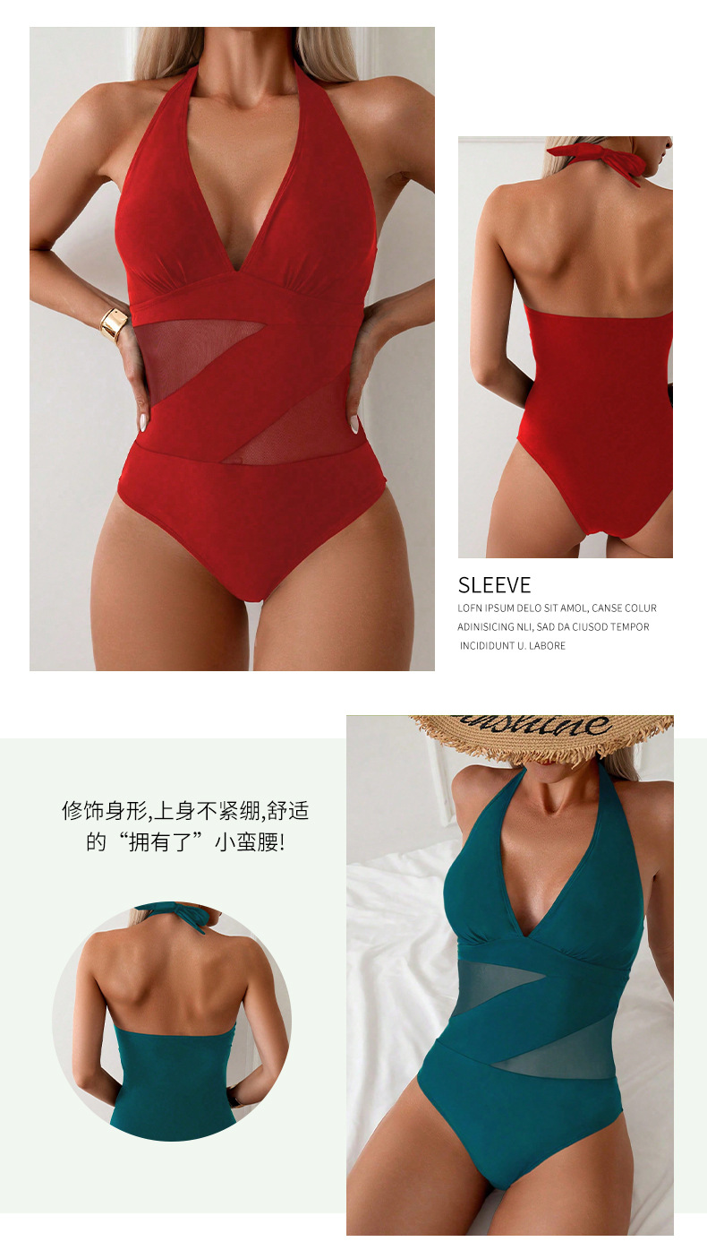 유럽과 미국의 새로운 스타일 메쉬 스티치 삼각형 원피스 수영복 여성용 작은 가슴용 끈이 있는 배를 가려주는 슬림하고 섹시한 수영복스토어 가기